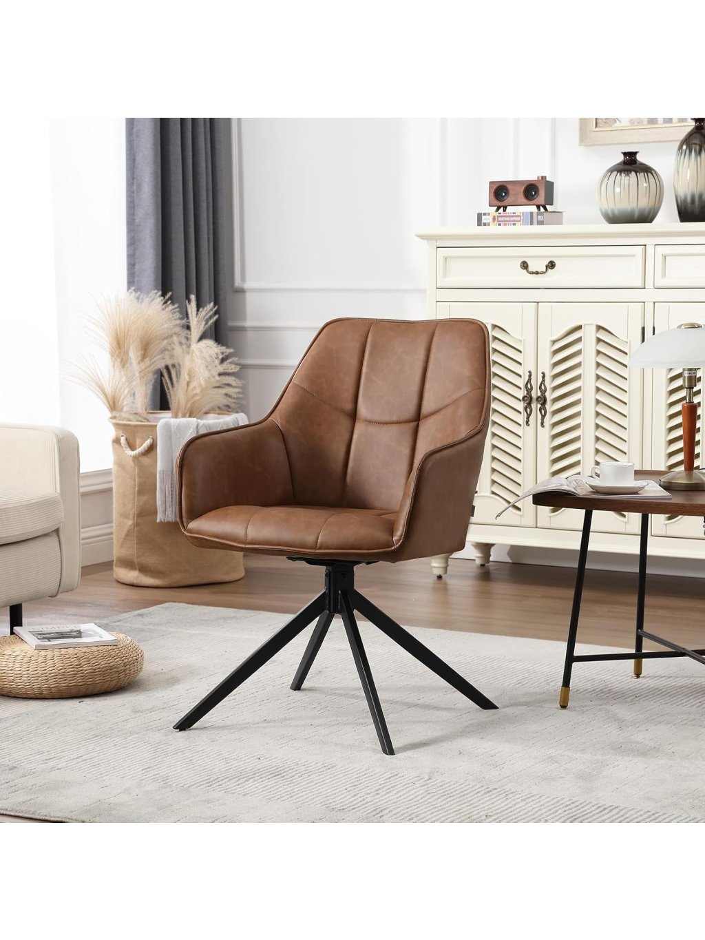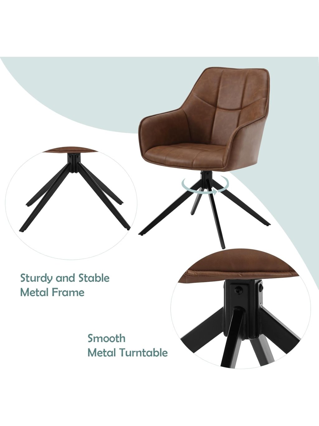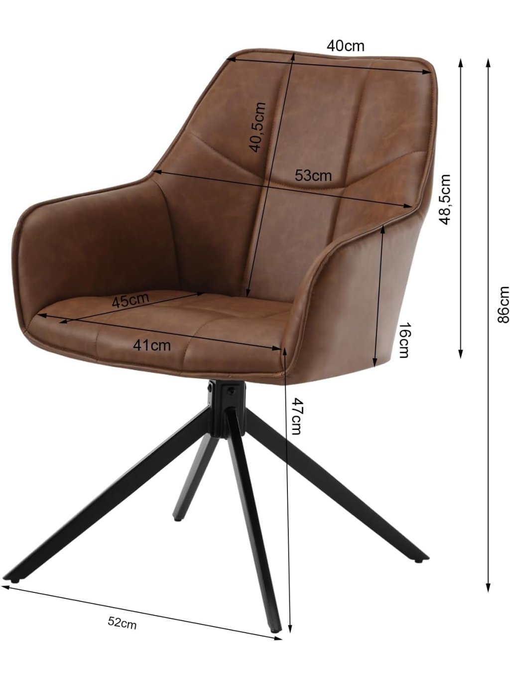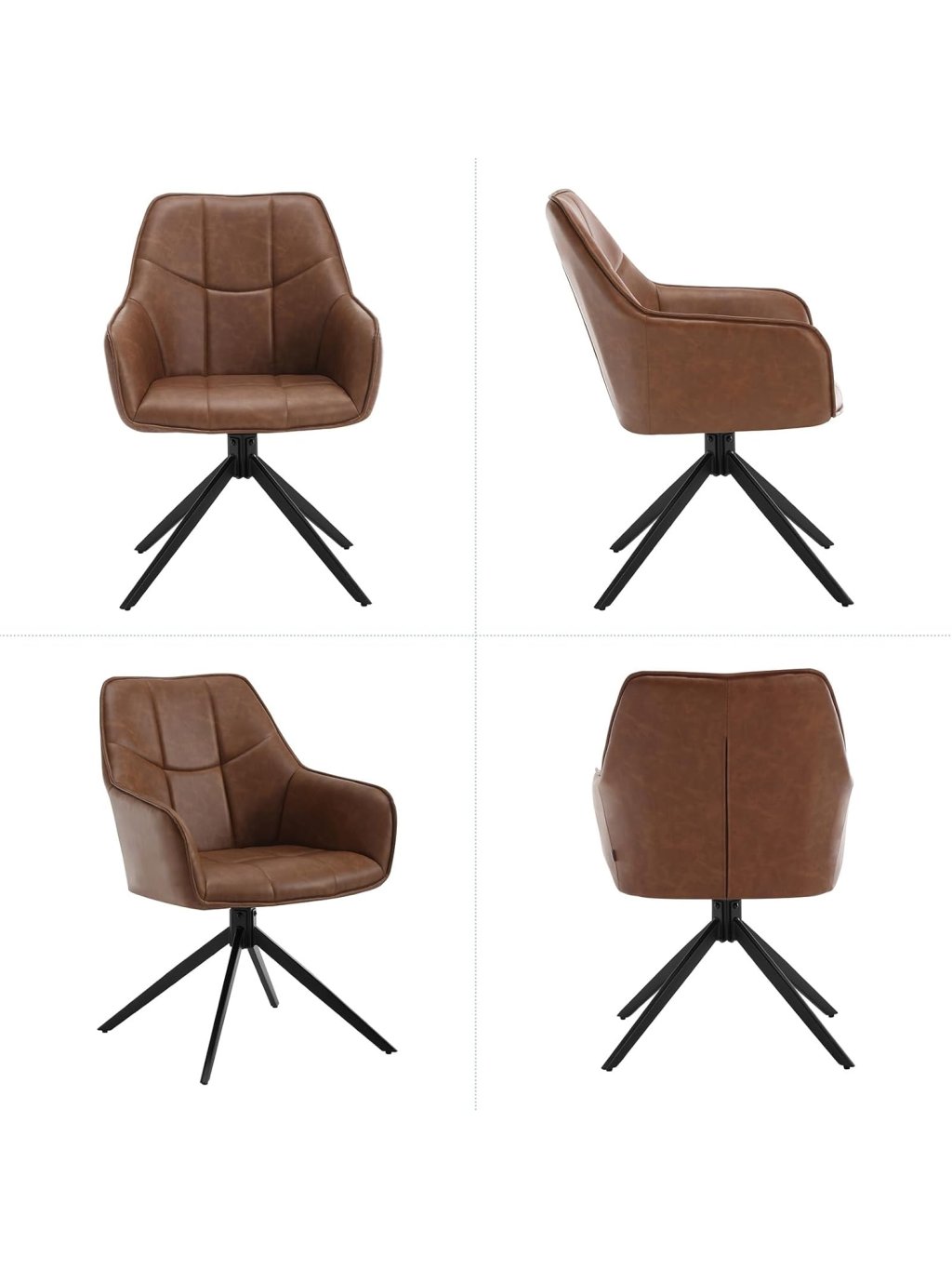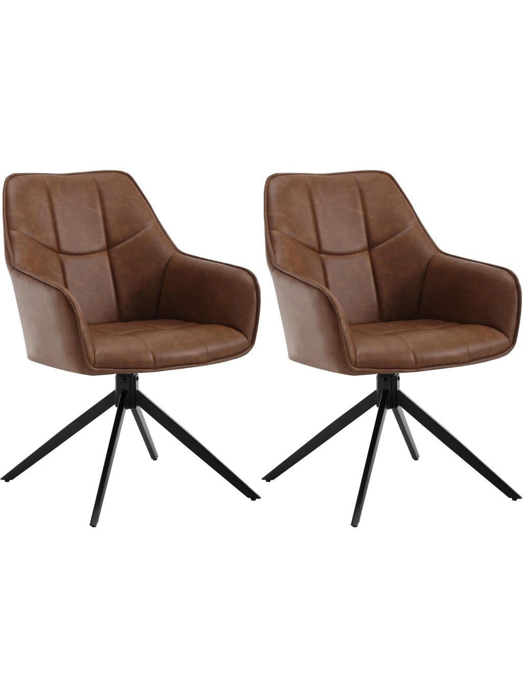 2x otočné jídelní židle s područkami – světle hnědá koženka