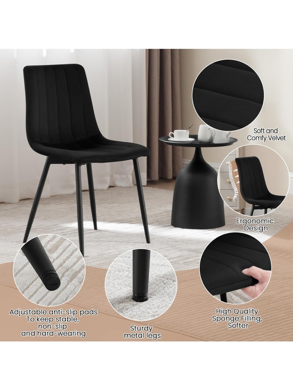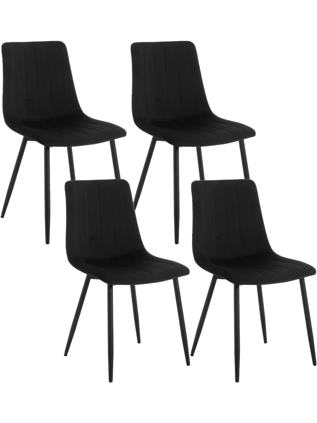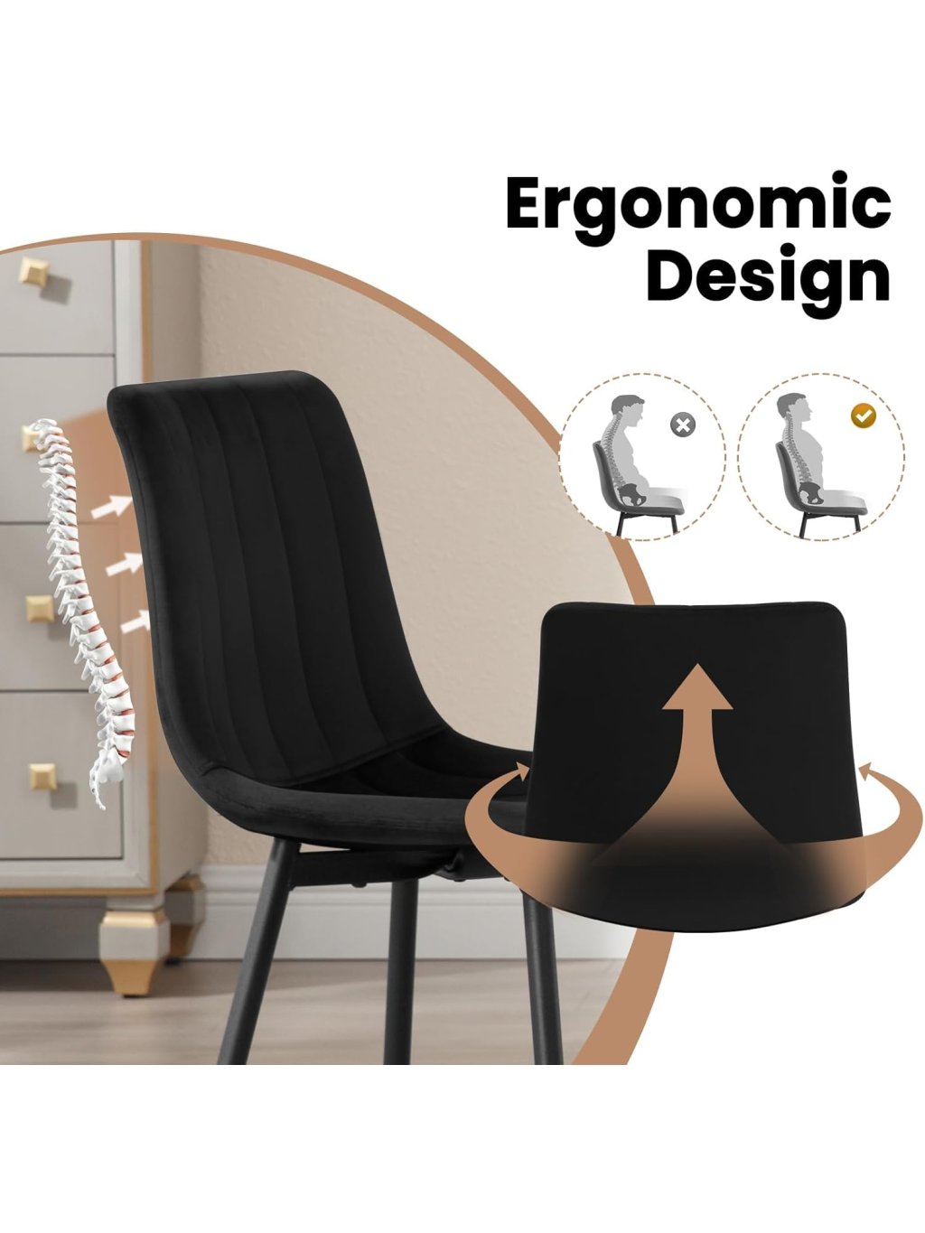 4x jídelní židle Klihome – samet, černé, kovové nohy, ergonomický design
