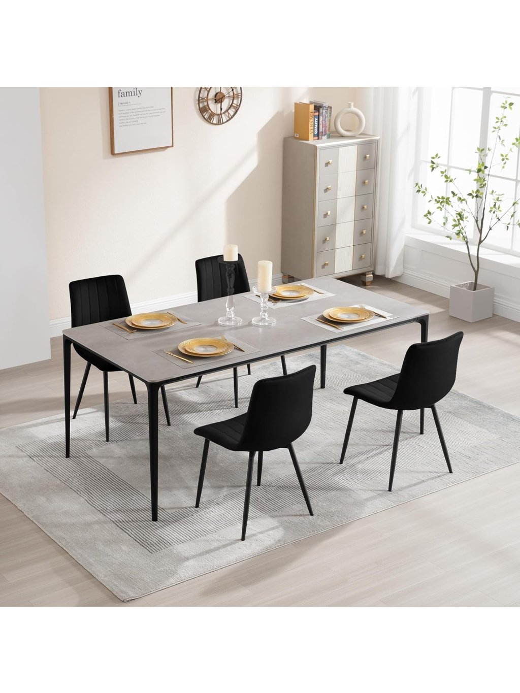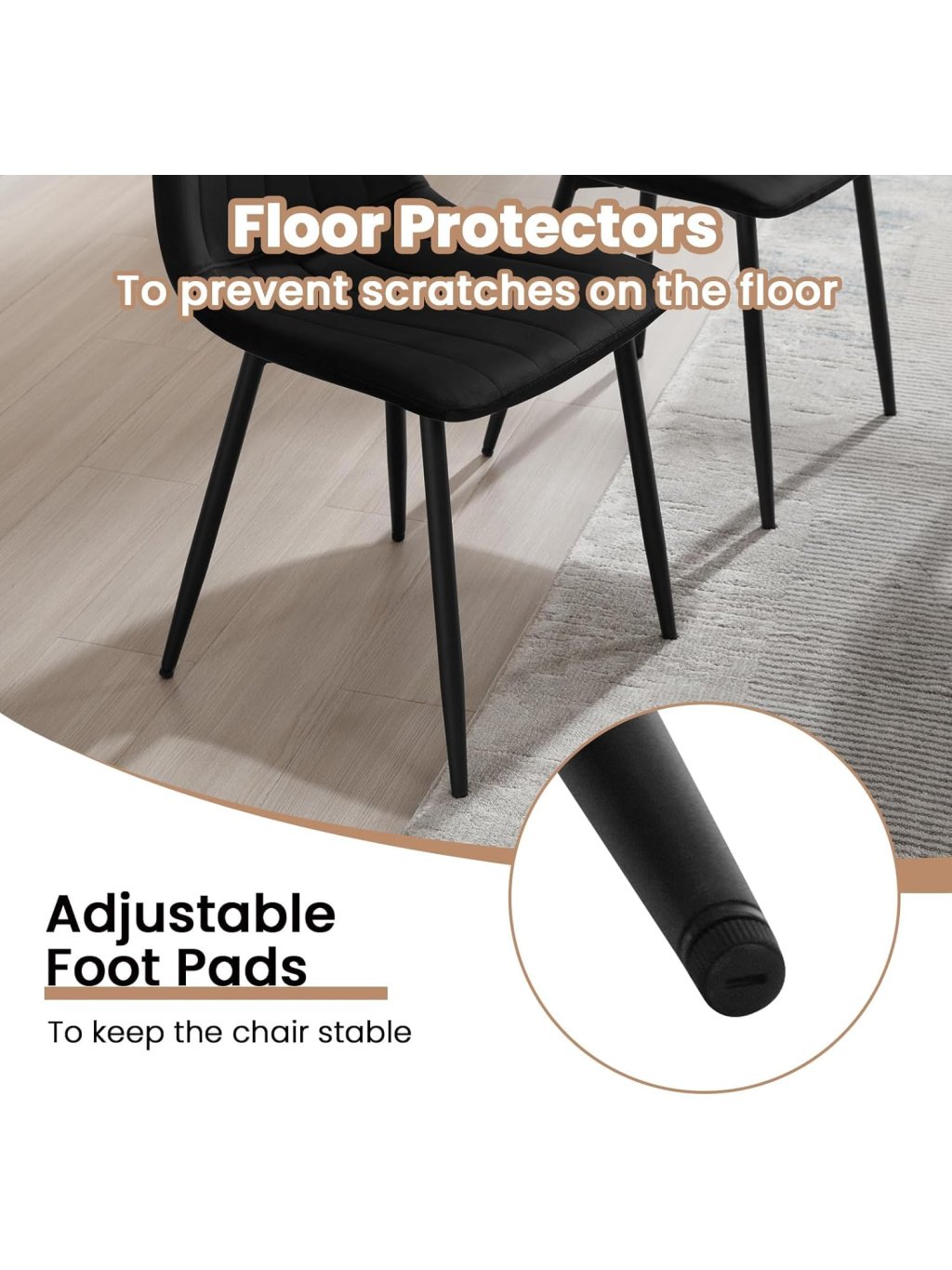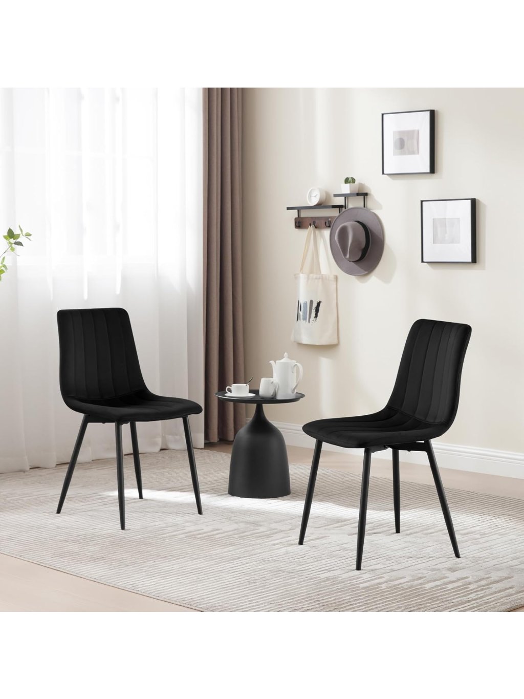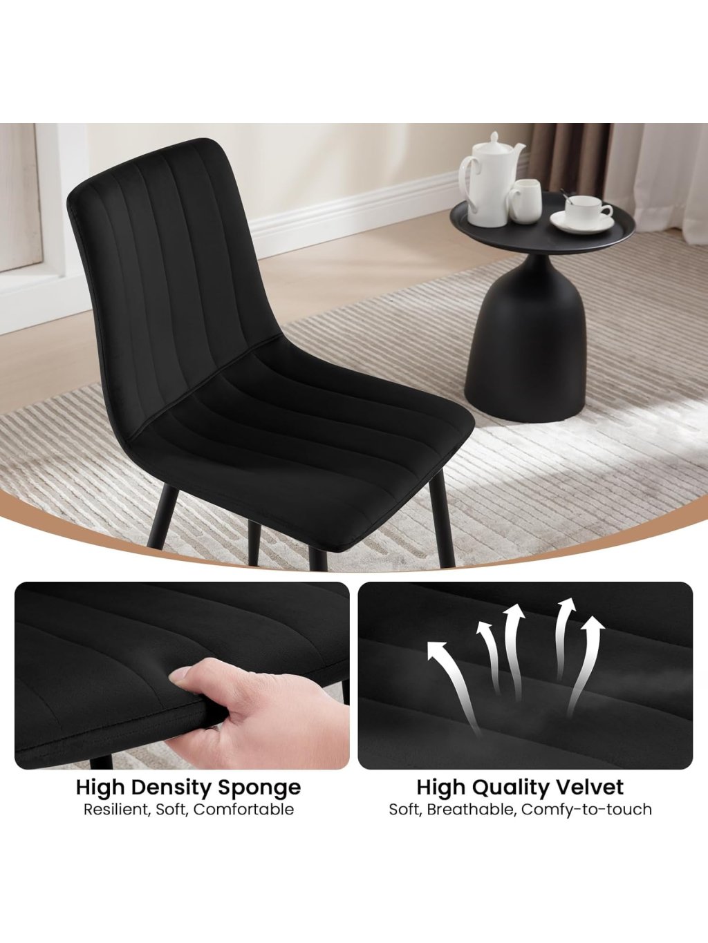 4x jídelní židle Klihome – samet, černé, kovové nohy, ergonomický design