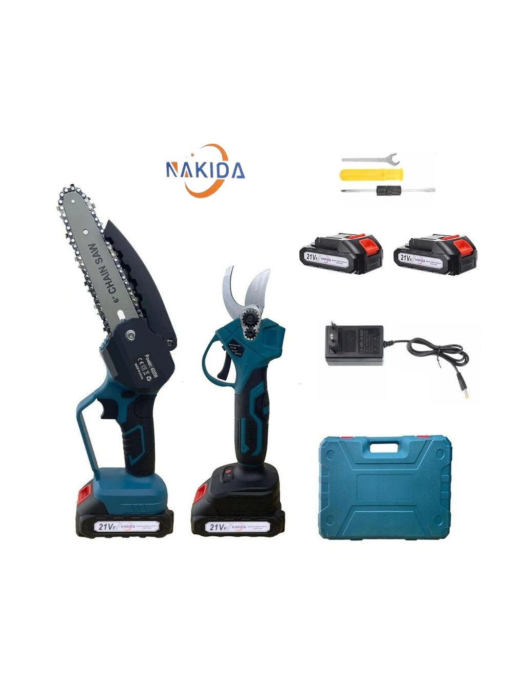 Sada Aku 2v1 řetězová pila 240 mm / 8'' + Výkonné aku nůžky 32 mm.