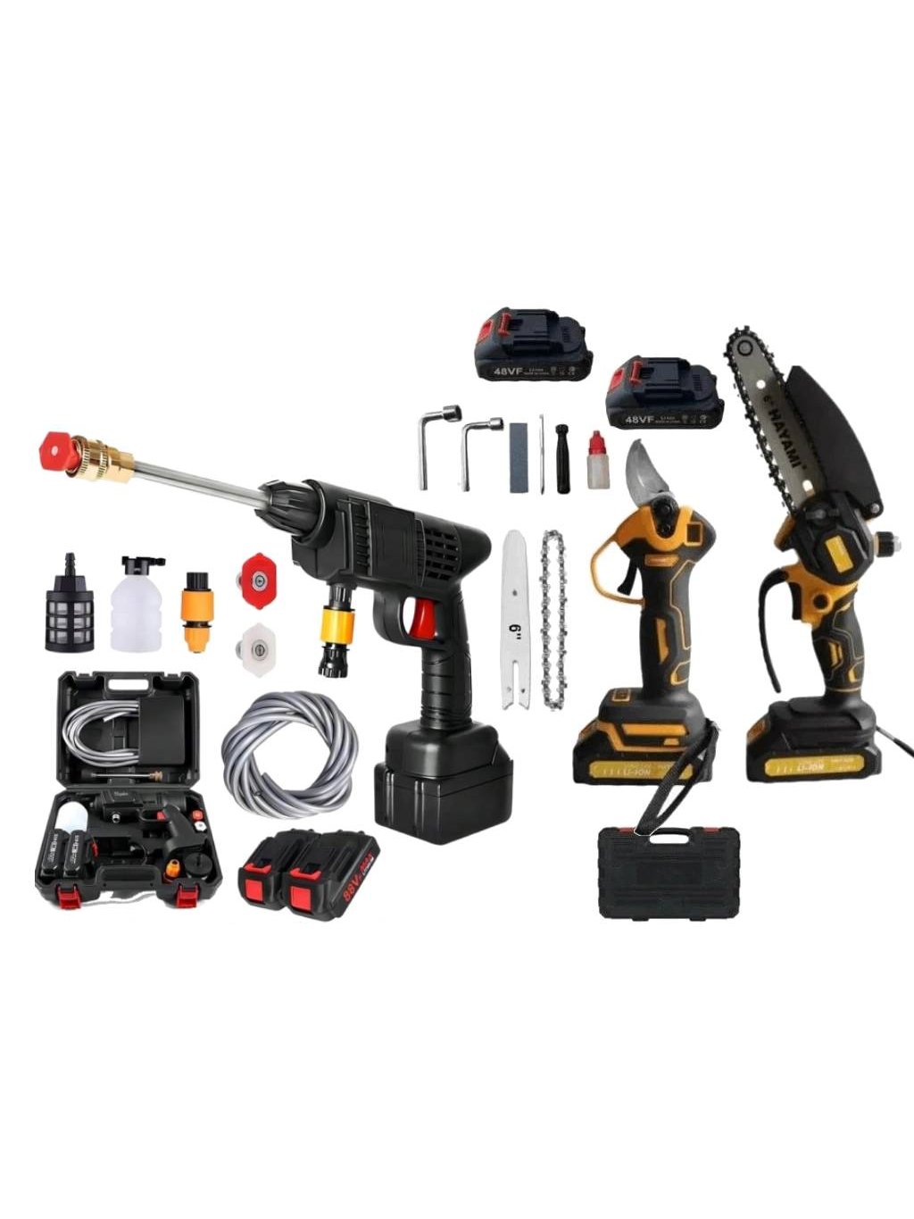 AKU Multifunkční Sada 3v1 – Tlaková myčka + Mini pila + Zahradní nůžky 4× baterie