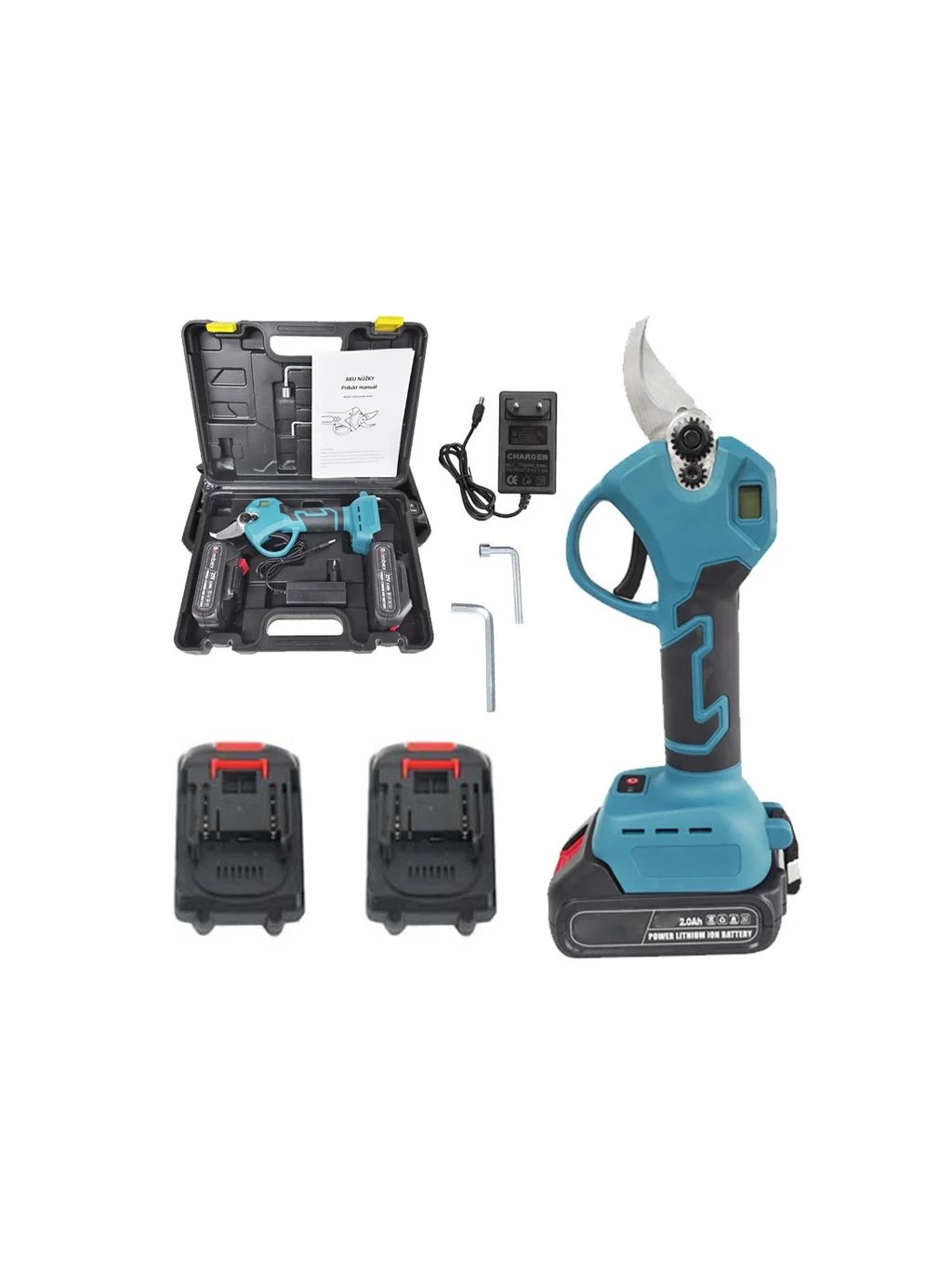 Součástí sady jsou dvě výkonné 21V baterie s kapacitou 2.0 Ah, které umožňují pracovat delší dobu bez přerušení. Zatímco jednu používáte, druhou můžete nabíjet, což zajistí plynulý chod bez zdržení. V balení nechybí ani nabíječka, sada imbusových klíčů pro údržbu a praktický přenosný kufřík, který chrání nůžky při přepravě i skladování. Vše tak máte vždy přehledně uspořádané a připravené k okamžitému použití.