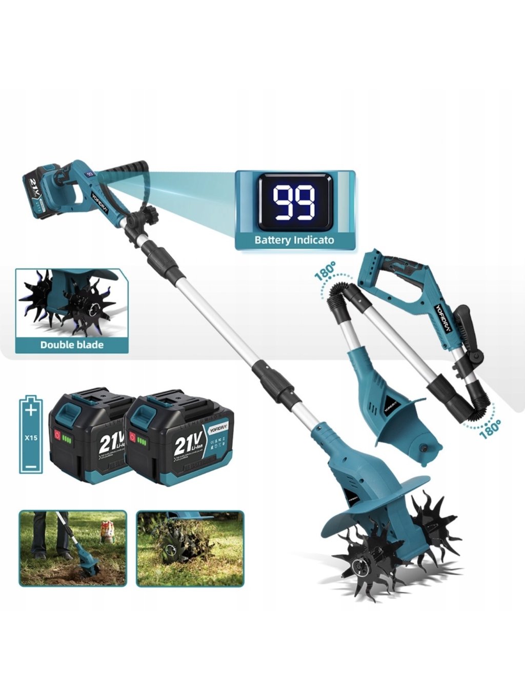 Lehký, výkonný a plně bezdrátový kultivátor je ideálním pomocníkem pro každou zahradu. Umožní vám snadno připravit záhony, provzdušnit půdu nebo odstranit plevel – rychle a bez zbytečné námahy.