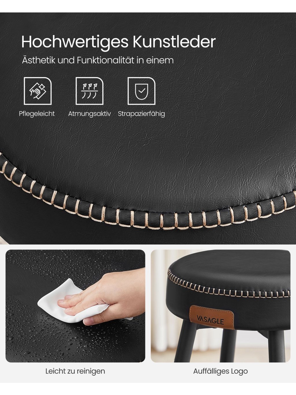 Kombinace syntetické kůže, precizního prošívání a elegantních zužujících se nohou propůjčuje těmto barovým židlím ze série VASAGLE EKHO nádech řemeslné dokonalosti. Pozvedněte vzhled své kuchyně či jídelního koutu na novou úroveň.