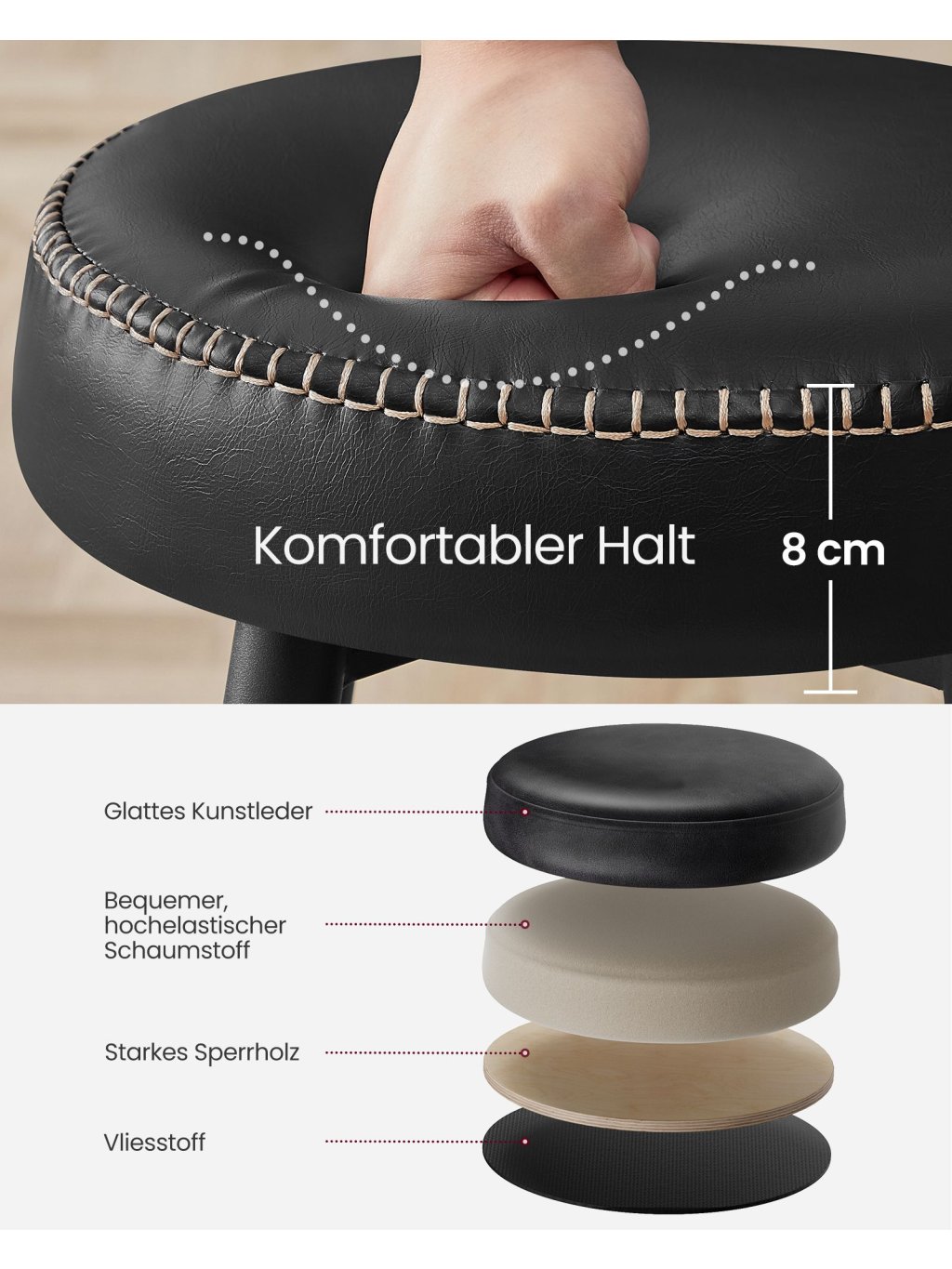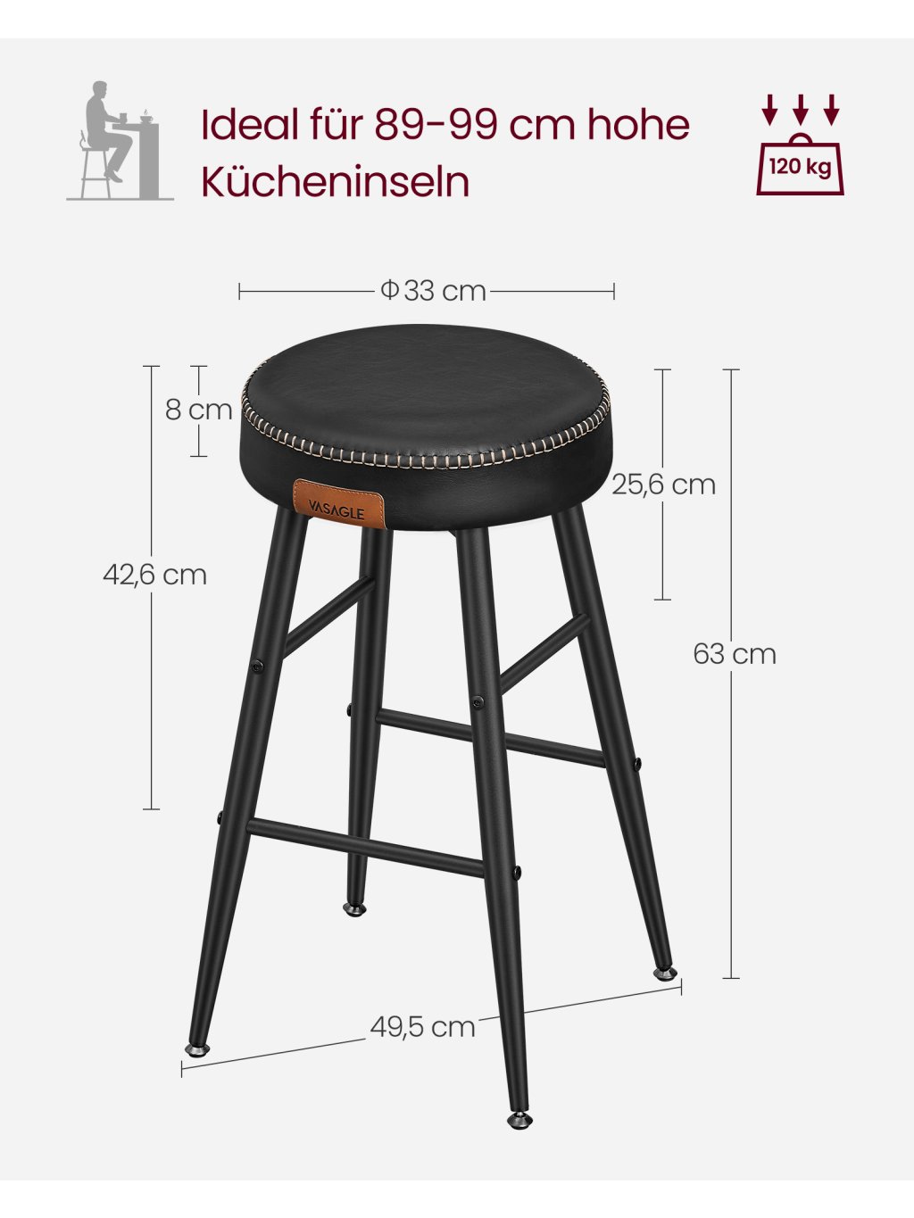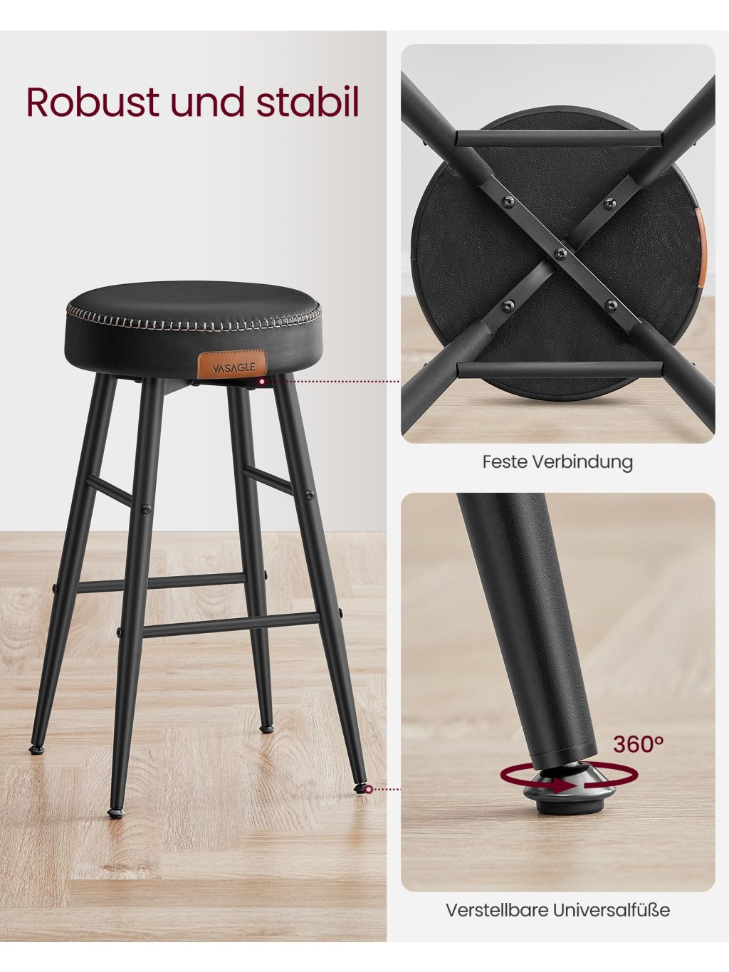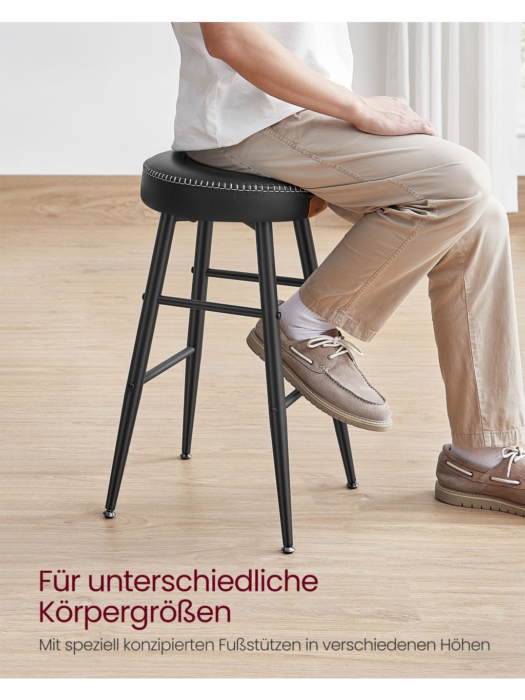 Sada 2 barových židlí VASAGLE EKHO – černá syntetická kůže, výška sedu 63 cm