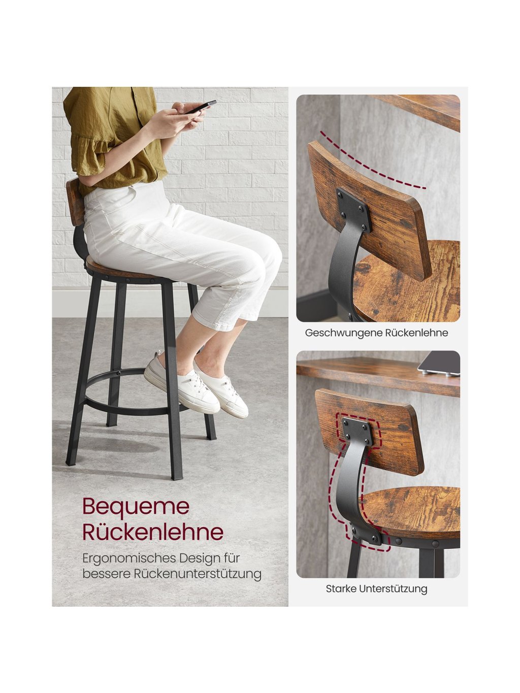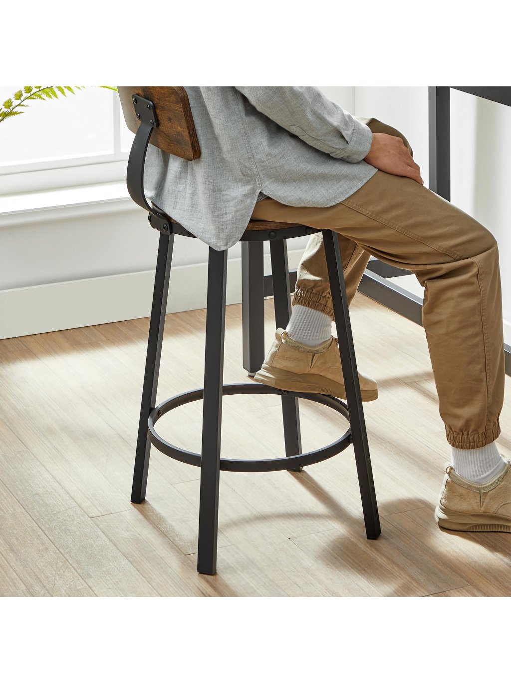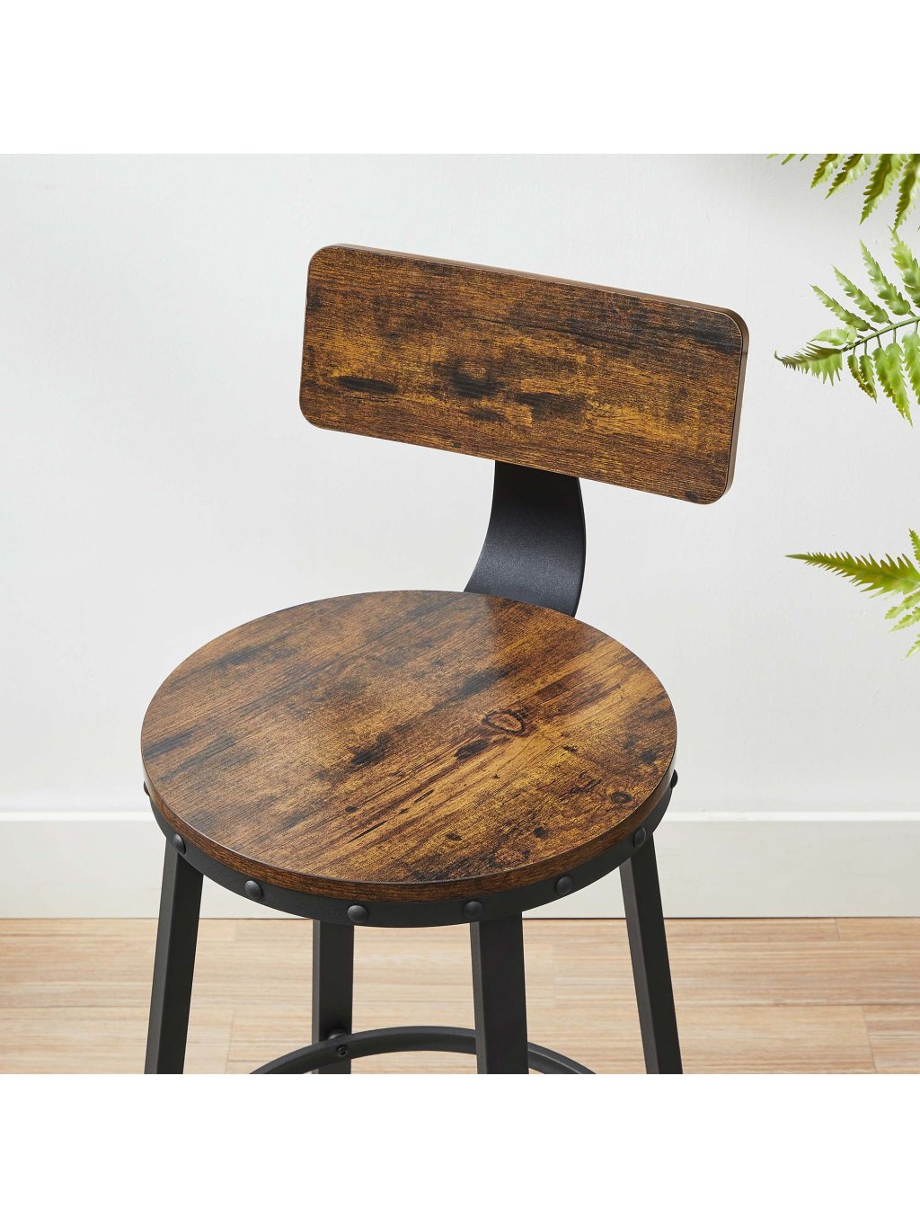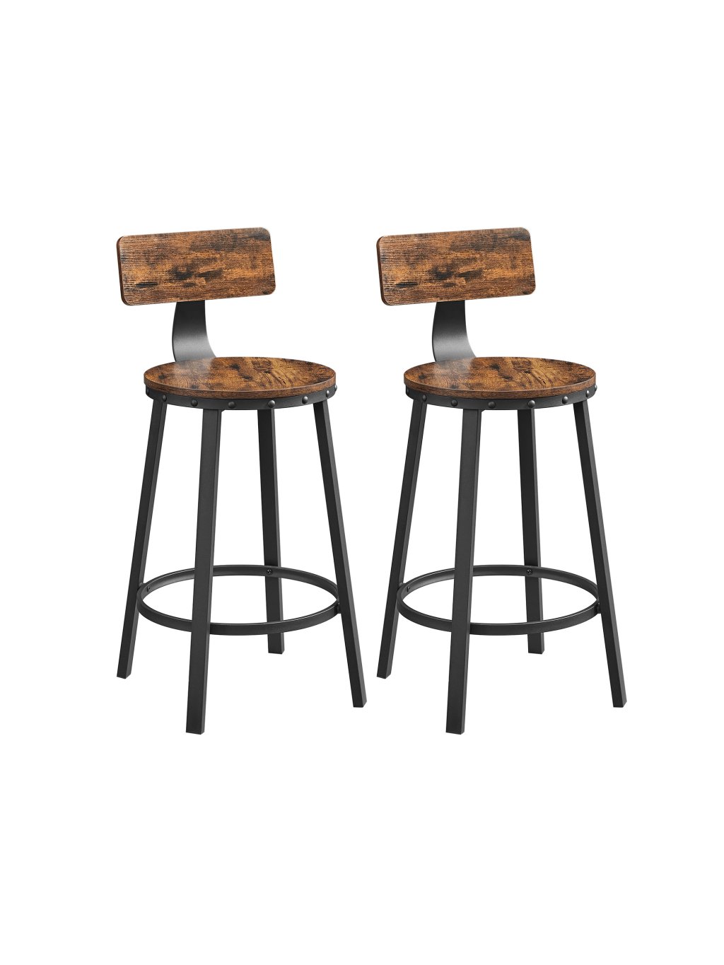 Sada 2 barových židlí v industriálním stylu – rustikální hnědá/černá, výška sedu 62,5 cm