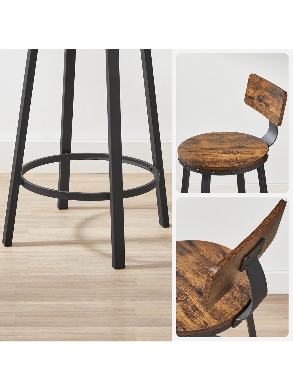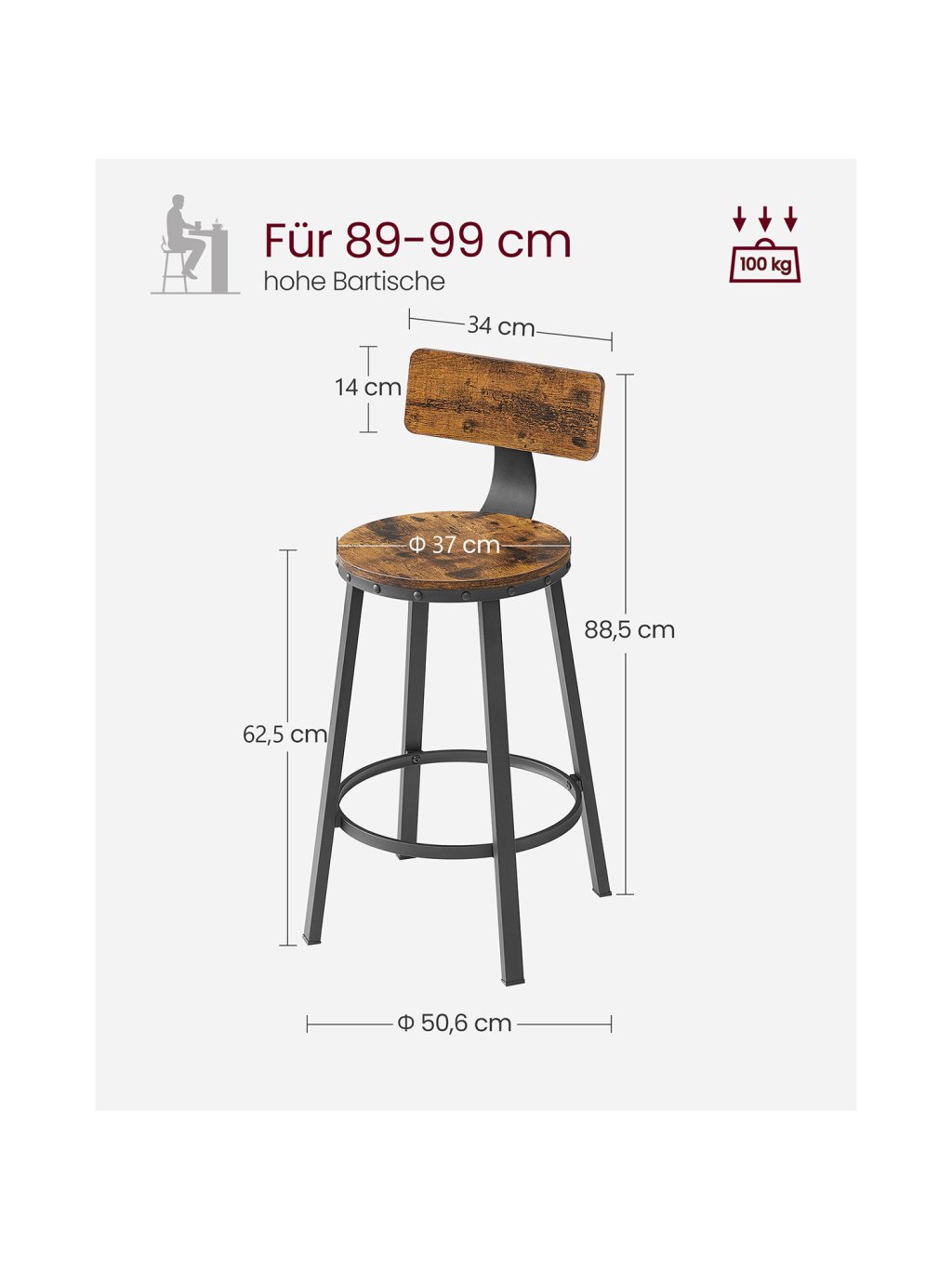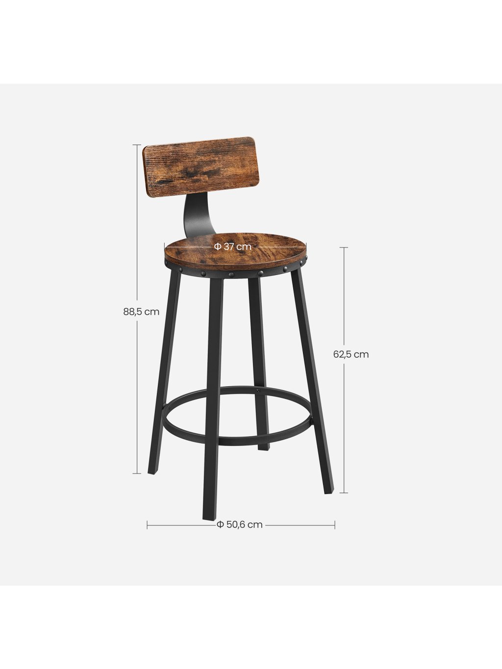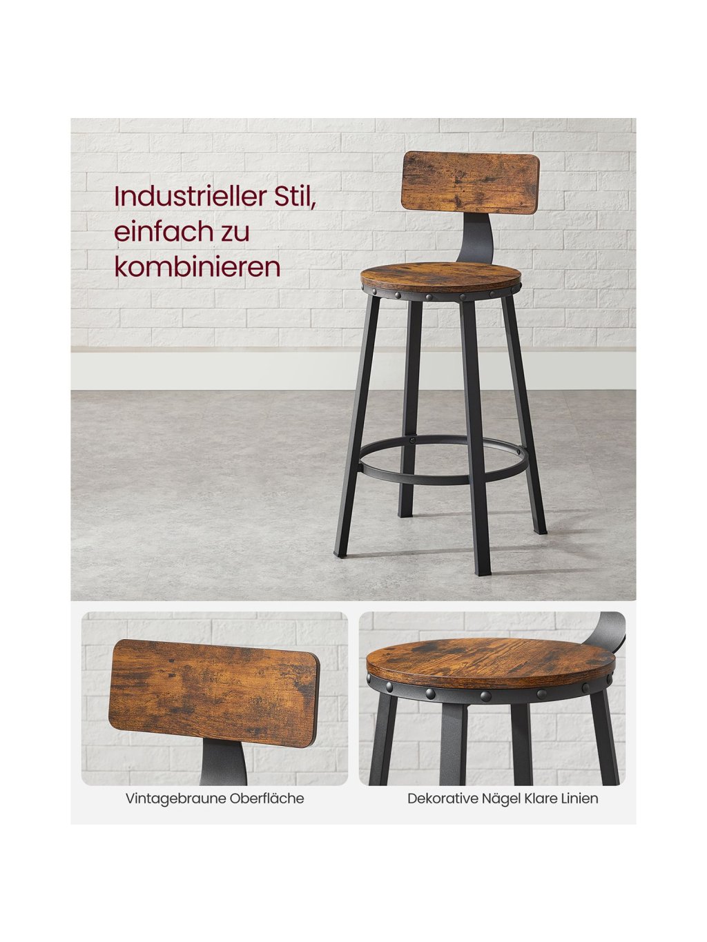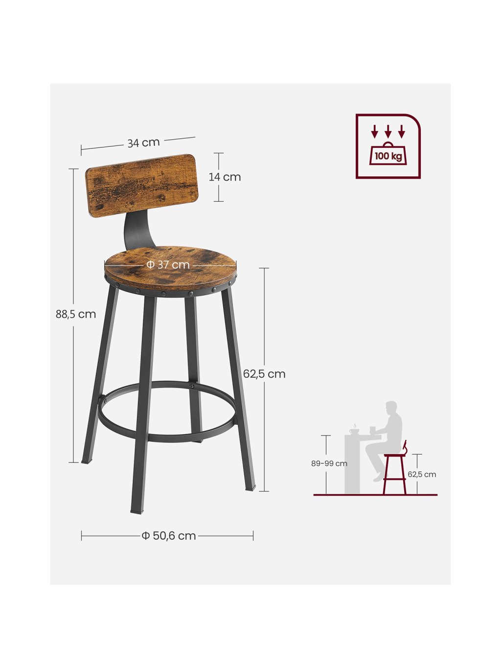 Sada 2 barových židlí v industriálním stylu – rustikální hnědá/černá, výška sedu 62,5 cm