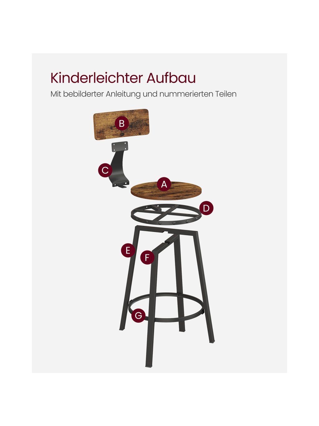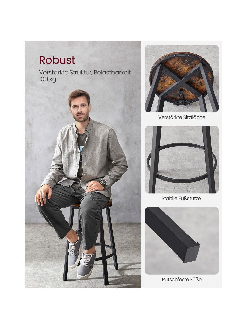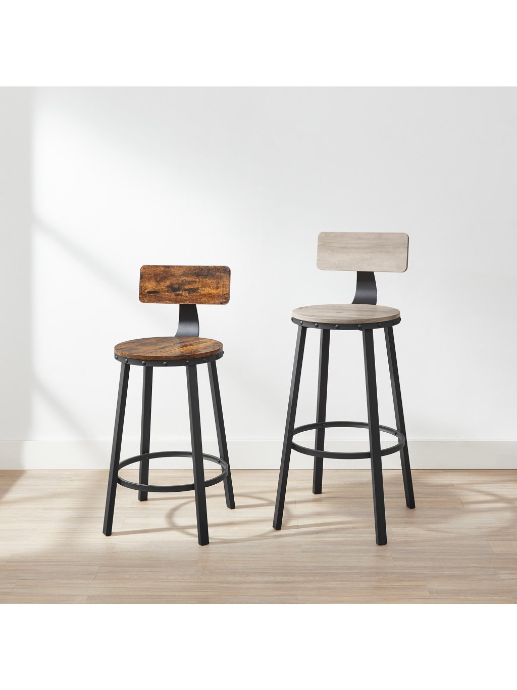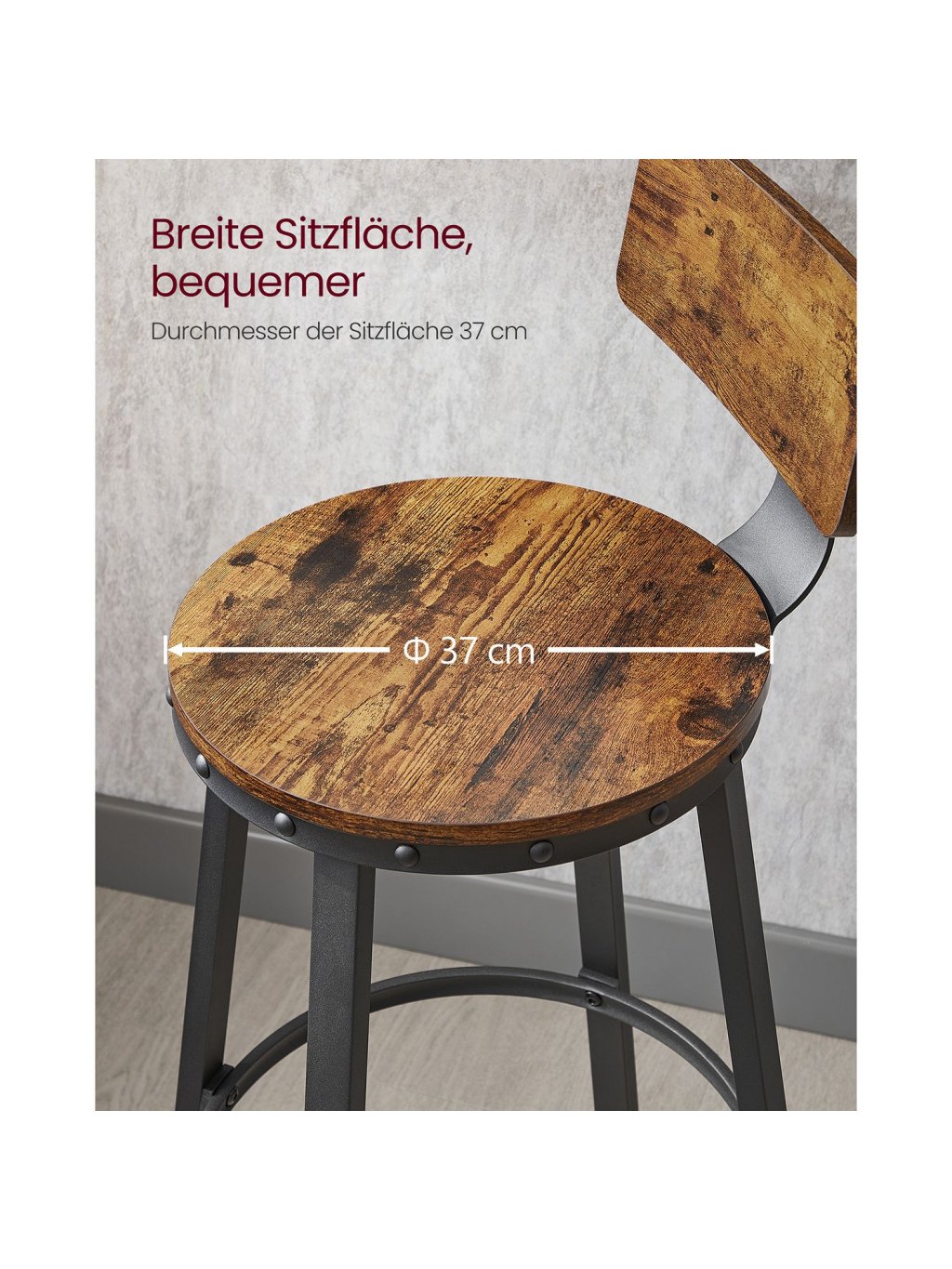 Sada 2 barových židlí v industriálním stylu – rustikální hnědá/černá, výška sedu 62,5 cm