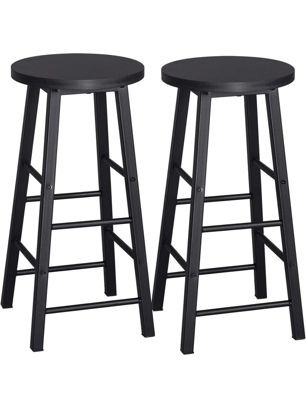 Barové stoličky v industriálním stylu, MDF sedák a kovová konstrukce – sada 2 ks, černé