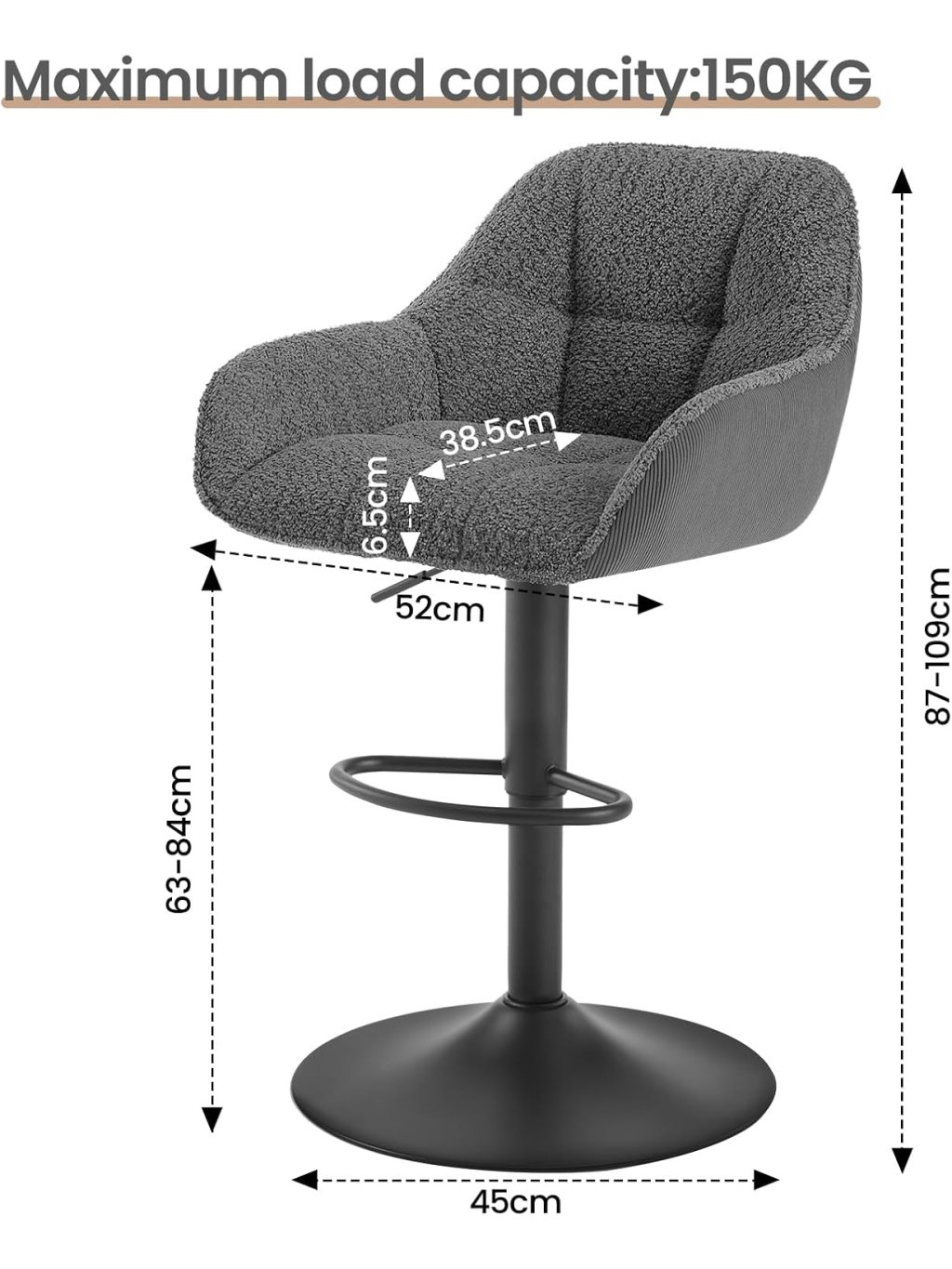 Barové židle WOLTU BH400dgr-2 v sadě 1 kus kombinují moderní design, vysoký komfort a pevnou konstrukci. Díky elegantnímu vzhledu a kvalitním materiálům jsou ideální volbou pro kuchyňský ostrůvek, bar, bistro, jídelnu nebo toaletní stolek.