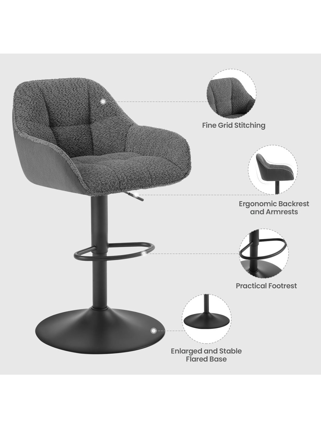 Barové židle – sada 1 ks, výškově nastavitelné, otočné, s opěradlem, tmavě šedé