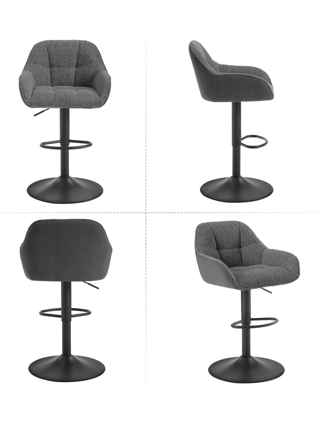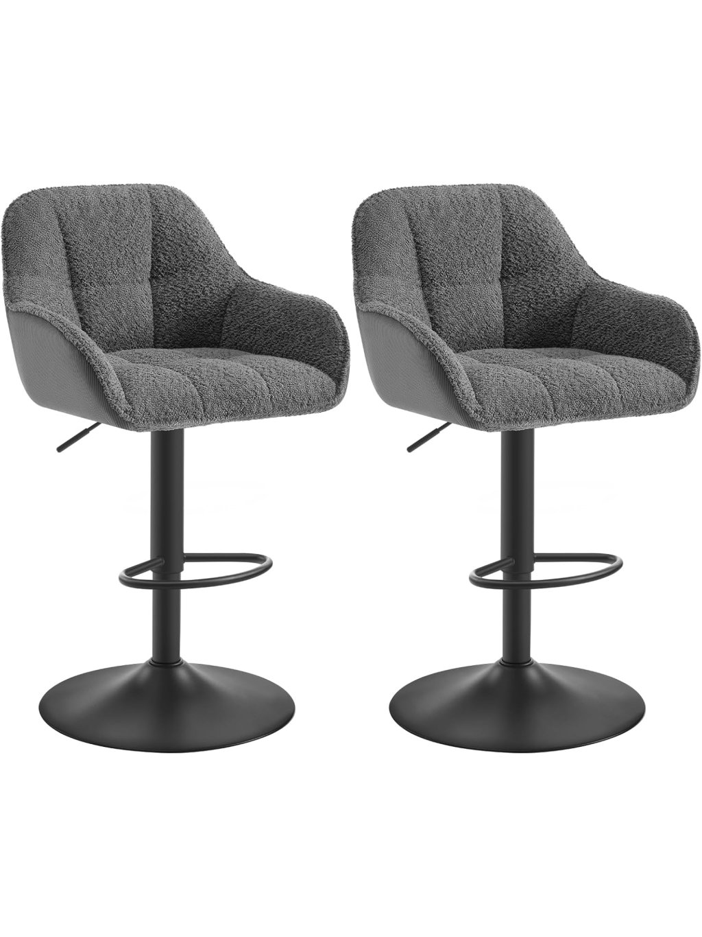 Barové židle – sada 2 ks, výškově nastavitelné, otočné, s opěradlem, tmavě šedé