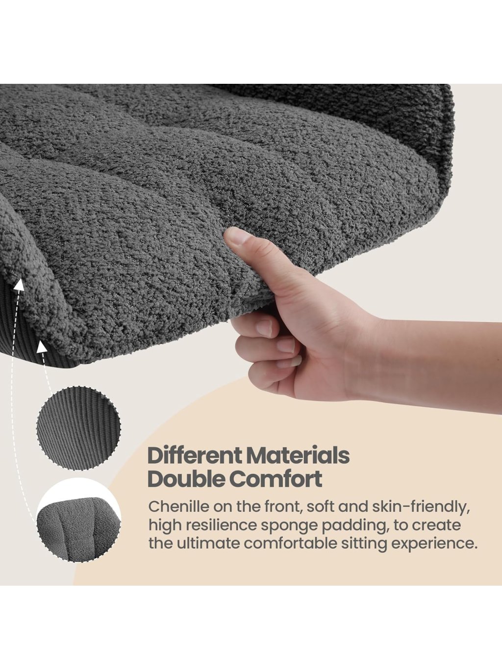 Sedák je čalouněn odolnou chenille tkaninou na přední straně a měkkým manšestrem na zadní straně, což vytváří zajímavý kontrast a zároveň zvyšuje komfort při sezení. Výplň z vysokohustotní pěny si dlouhodobě zachovává tvar a poskytuje pohodlí i při delším používání bez pocitu únavy. Ergonomicky tvarované opěradlo zajišťuje správnou oporu zad.
