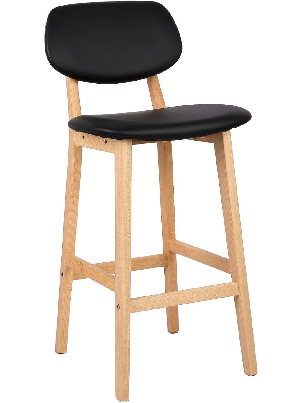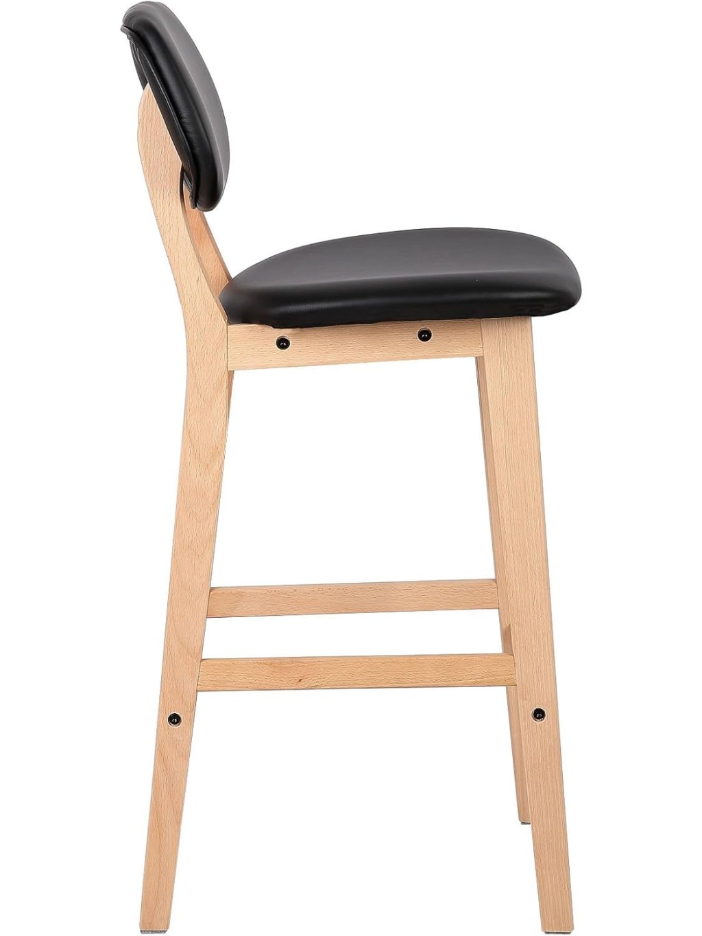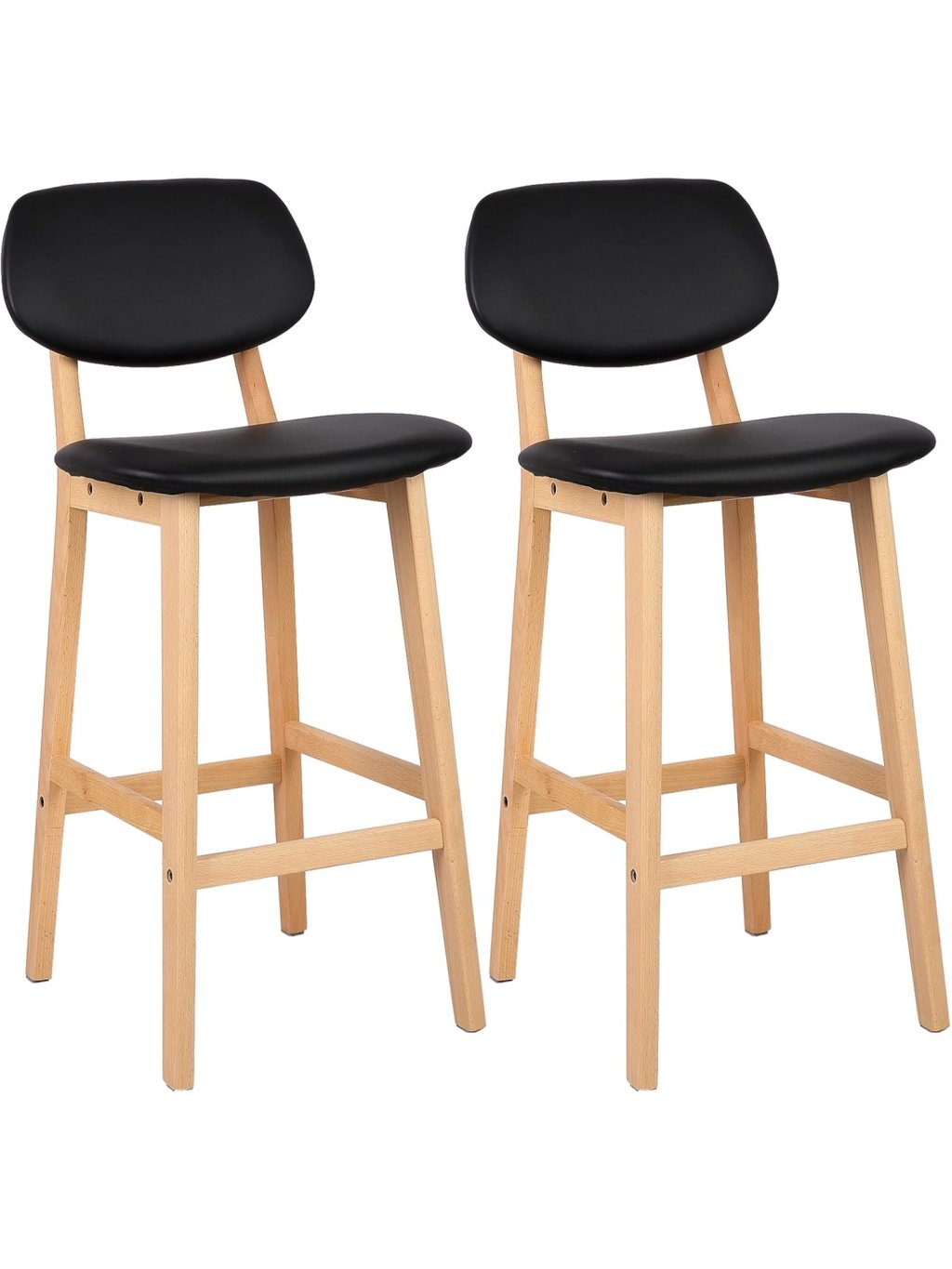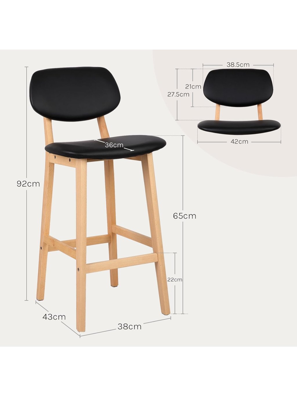 Moderní barové židle v sadě 2 kusů v elegantním skandinávském stylu kombinují černé PU čalounění s přírodními bukovými nohami. Minimalistický design s čistými liniemi se snadno začlení do kuchyně, jídelny, obývacího pokoje, baru, kavárny nebo recepce.