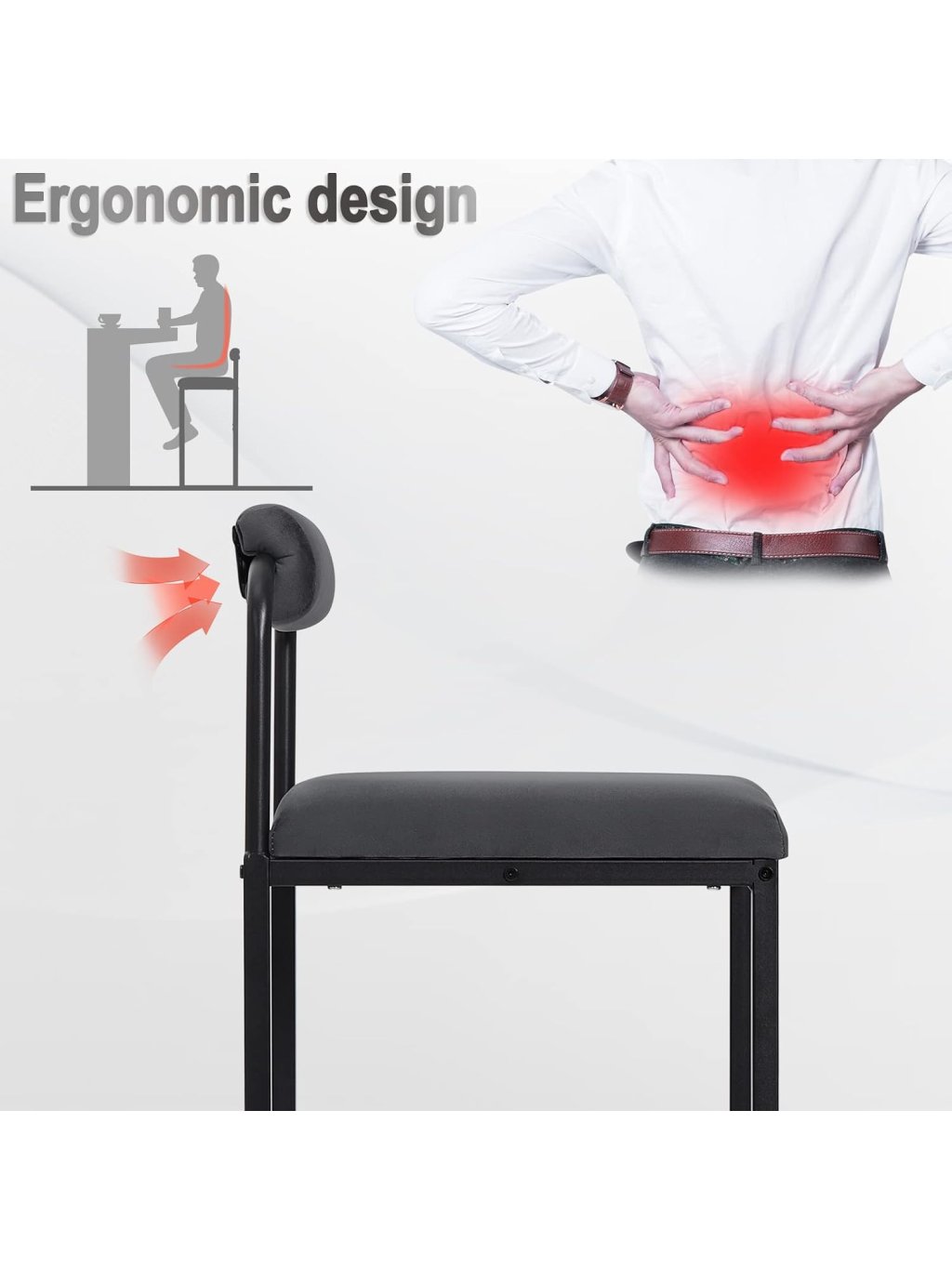 Pohodlné sezení: Velký čalouněný sedák (39 × 38,5 cm) s výplní z vysoce husté pěny a jemnou bederní opěrkou poskytuje komfort i při delším sezení.