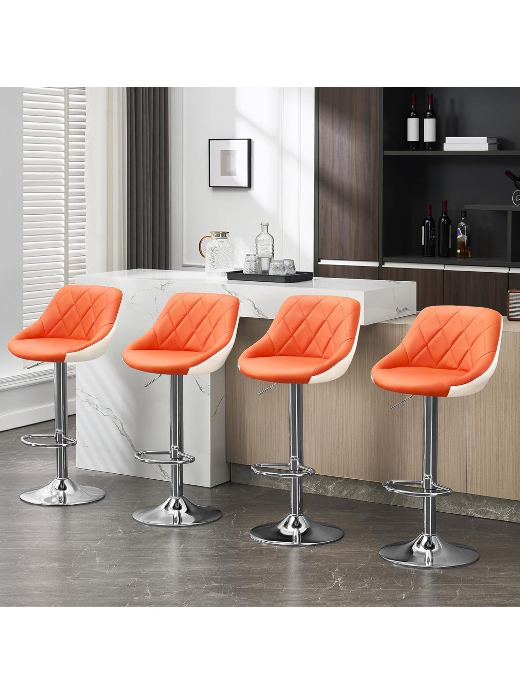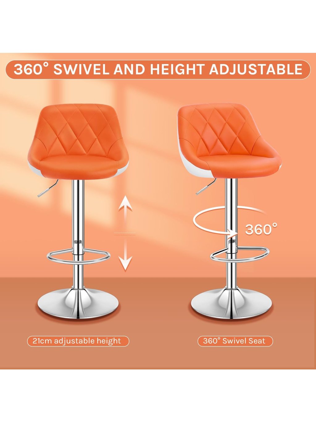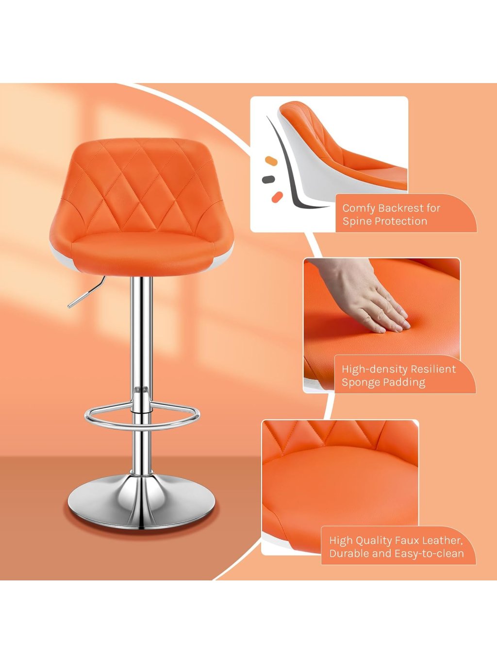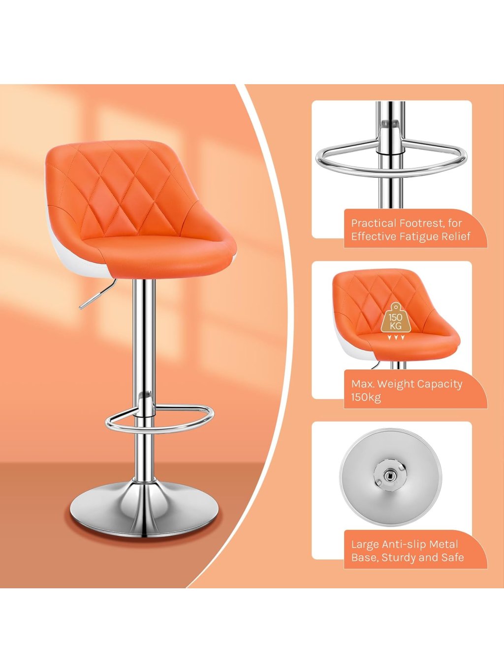 Moderní barové židle v výrazné oranžové barvě jsou ideální volbou pro kuchyňský ostrůvek, domácí bar, bistro nebo kavárnu. Spojují ergonomický design, pohodlí při sezení a praktické funkce pro každodenní používání.