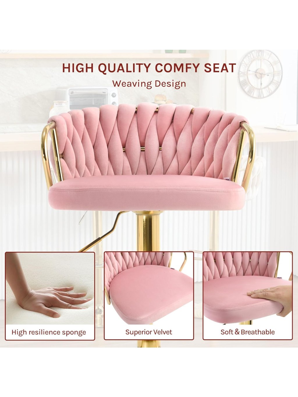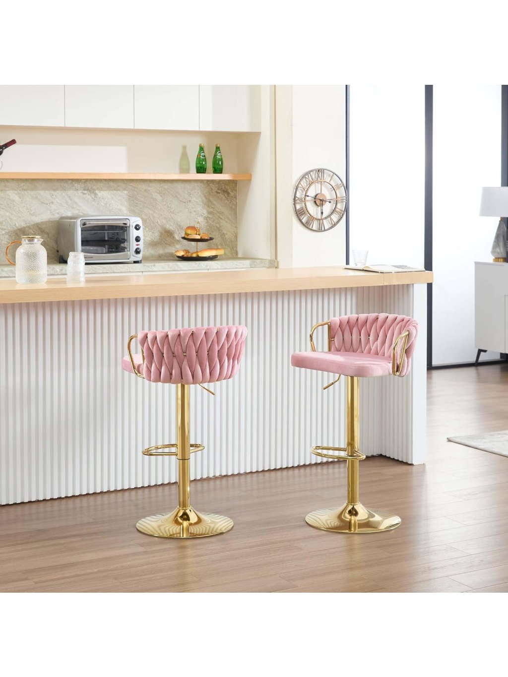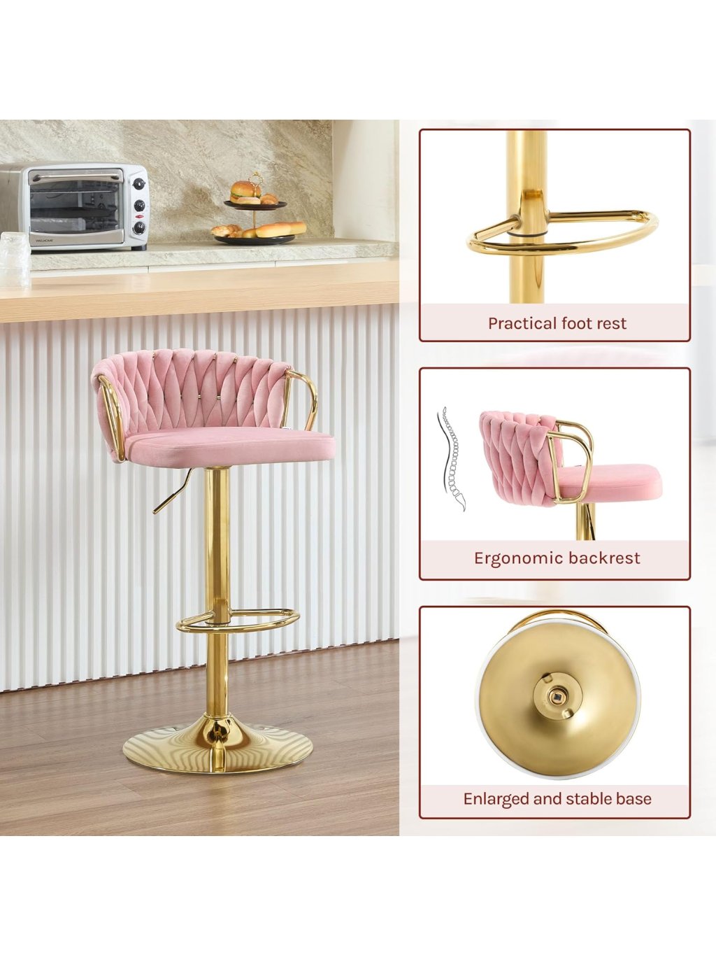 Barové židle s opěrkou zad a područkami, sametové, výškově nastavitelné, růžové – sada 2 ks
