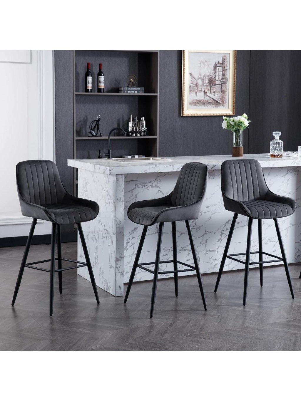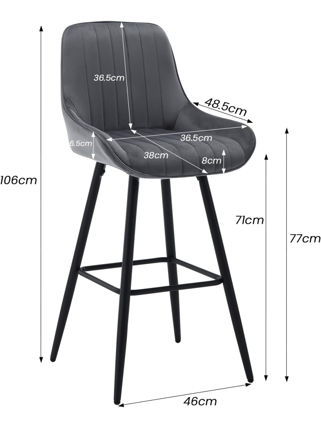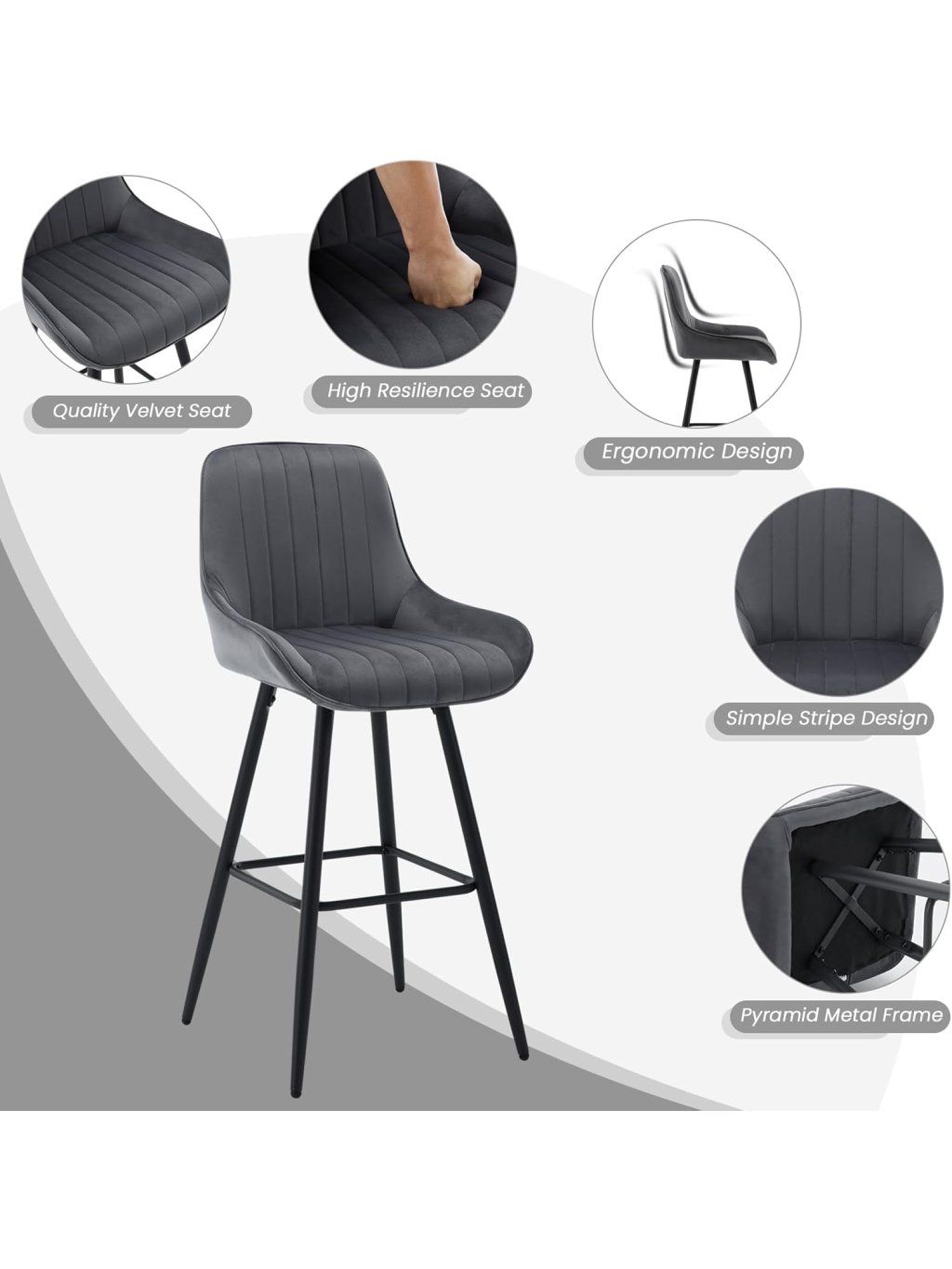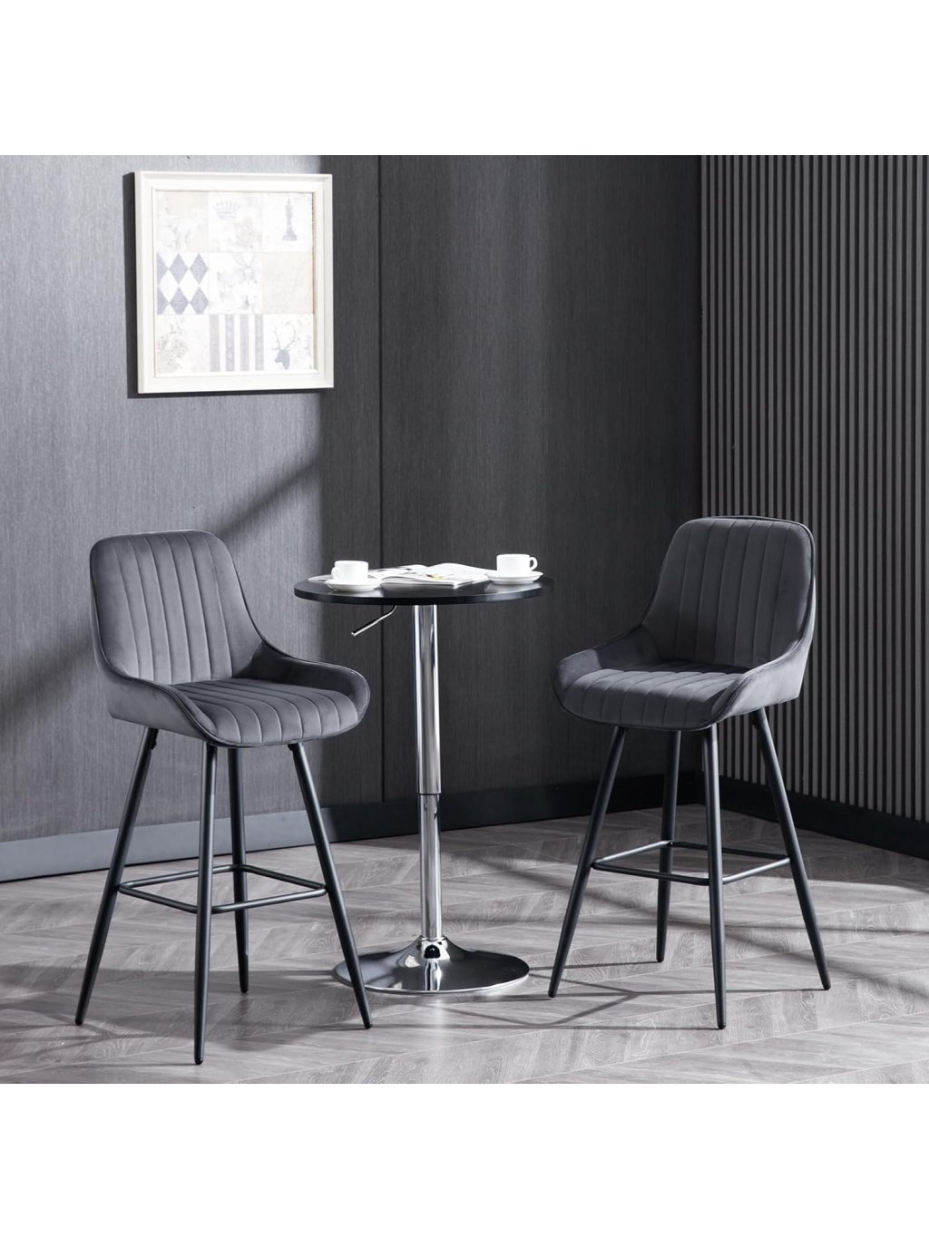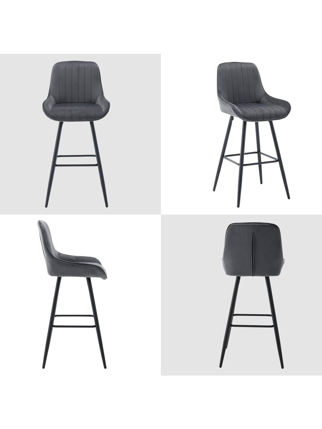 Barové židle WOLTU – sada 2 ks, čalouněné, s opěradlem a opěrkou nohou, sametové, tmavě šedé