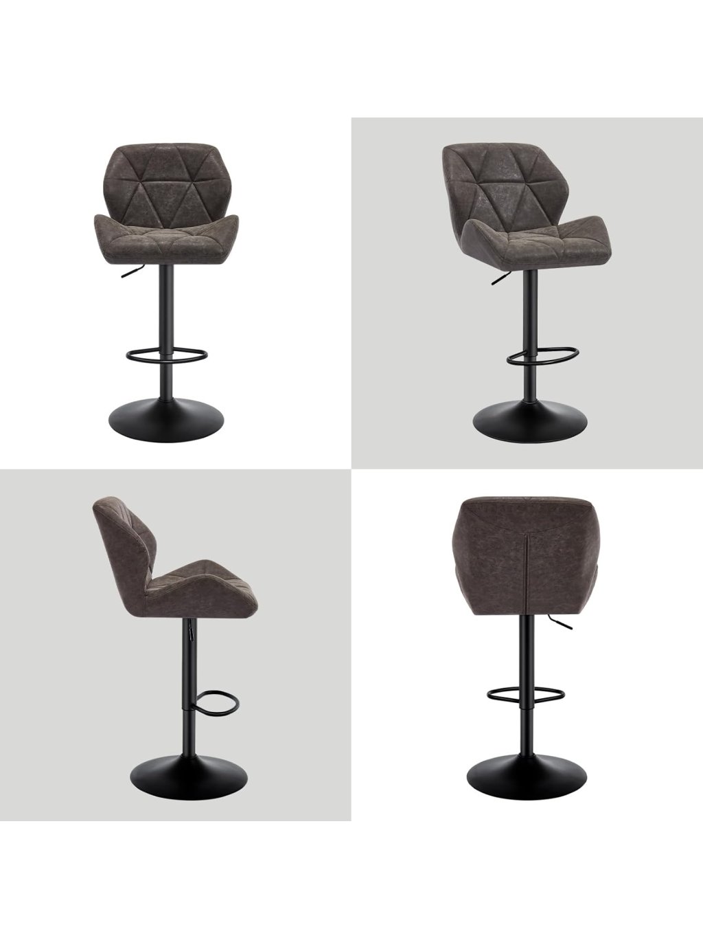 Barové židle WOLTU BH287 – sada 2 ks, šedá eko kůže, otočné, výškově nastavitelné