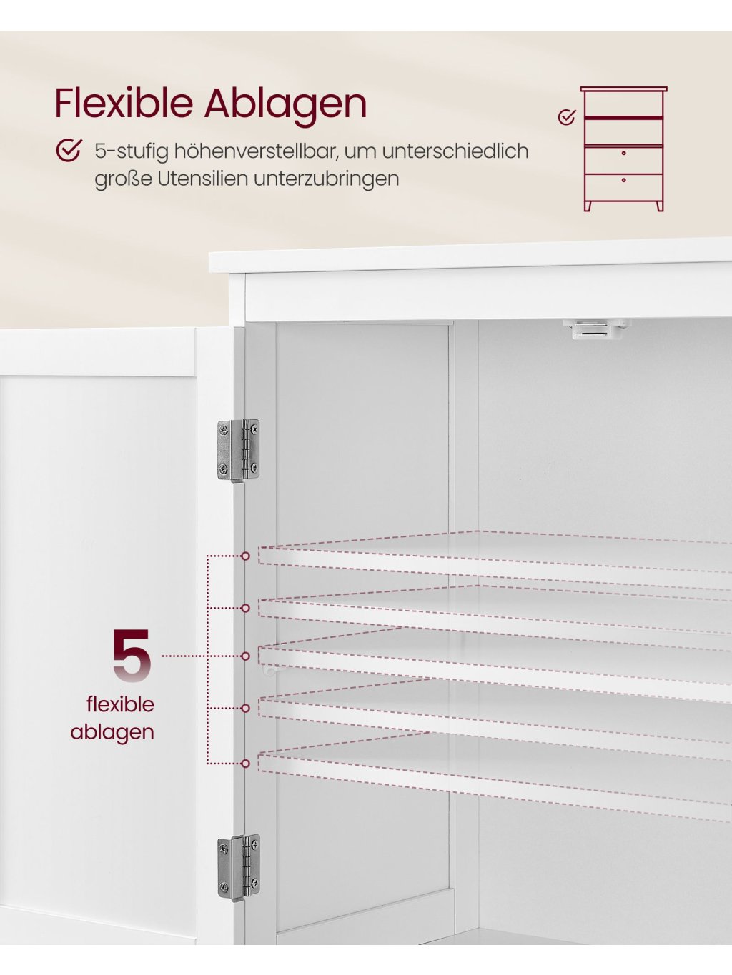 Spojení kvality a stylu: Skříňka je vyrobena z kvalitní MDF desky a vybavena bezpečnostní sadou proti převrácení. Elegantní ozdobné panely dodávají koupelně upravený vzhled.