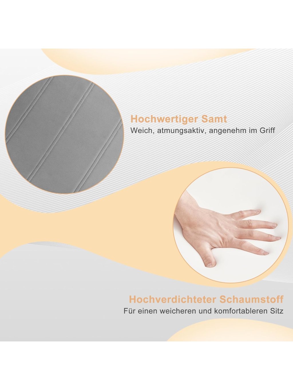 Pohodlné sezení: vysoké, ergonomicky zakřivené opěradlo a sedák se přizpůsobí tělu; sametový potah je měkký a příjemný na dotek, kvalitní pěnové polstrování drží tvar.