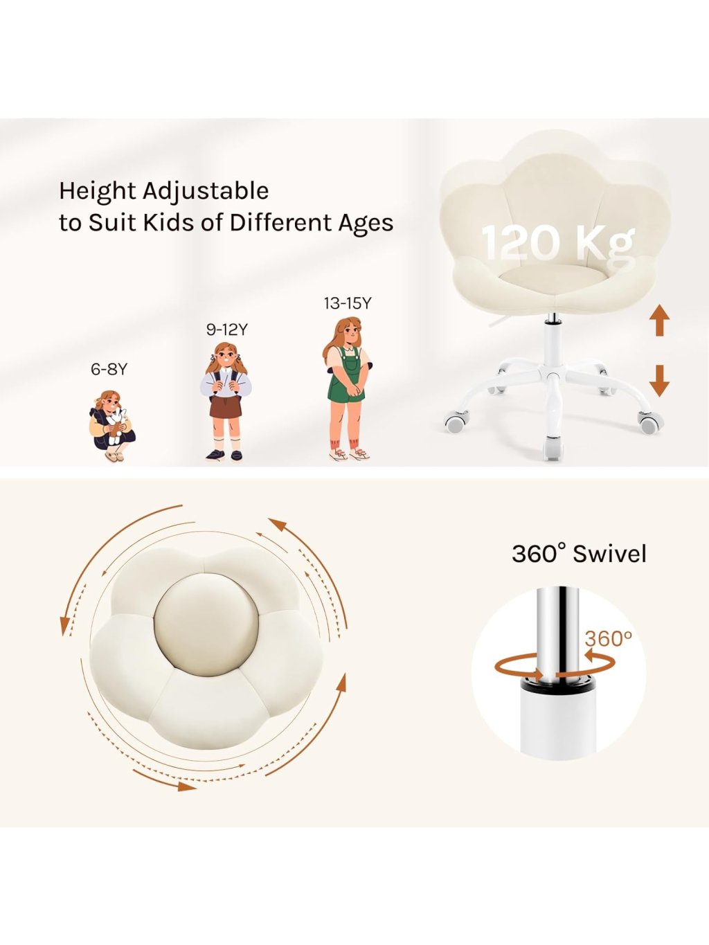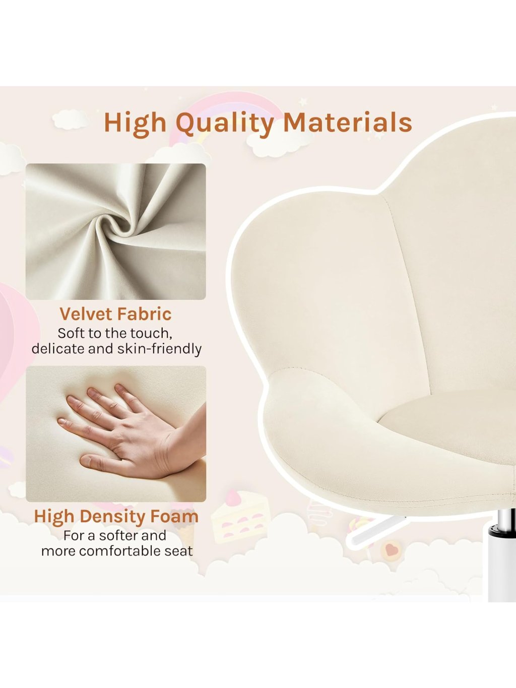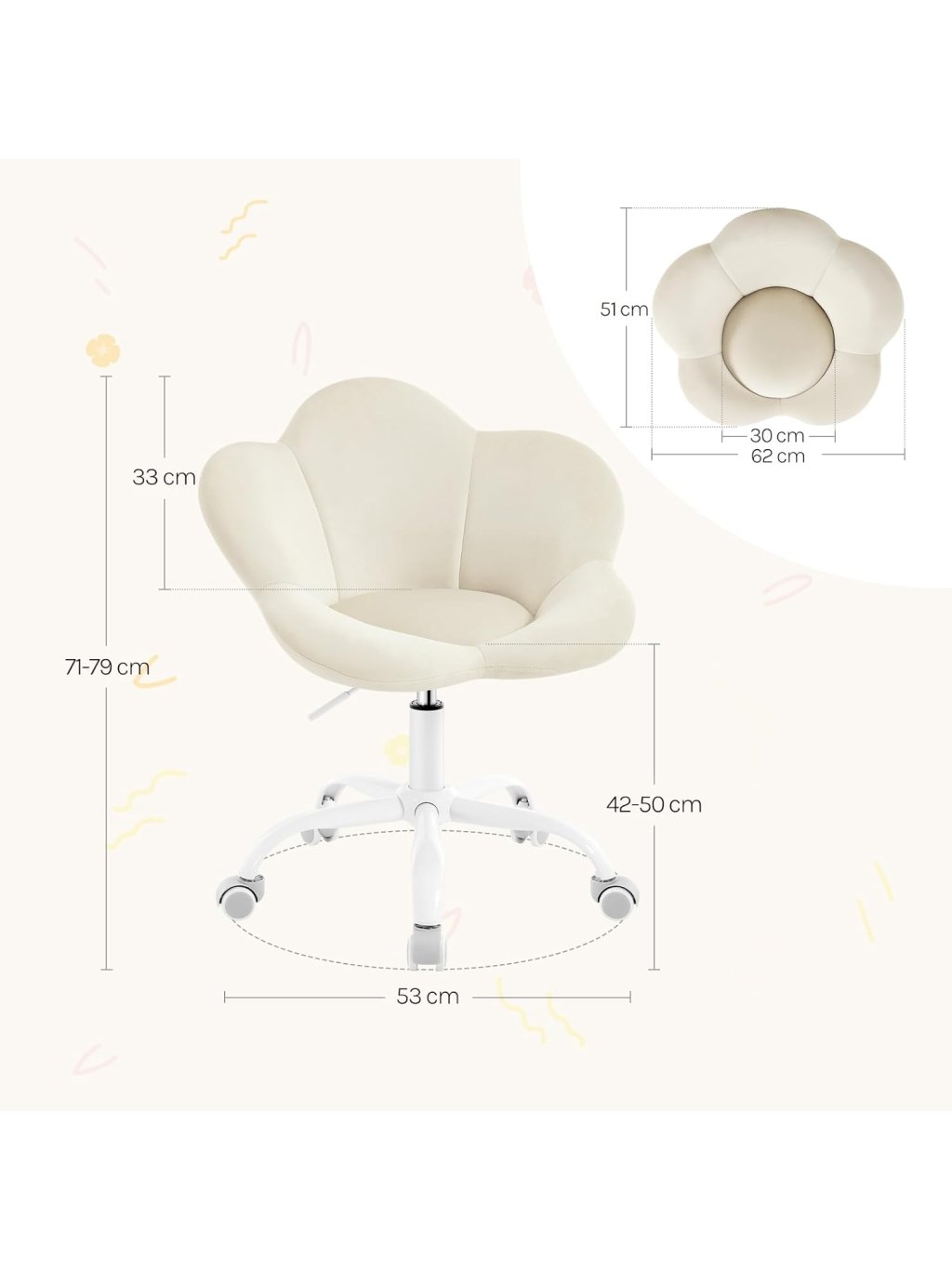 Dětská otočná židle ve tvaru květiny – sametová, výškově nastavitelná, na kolečkách, béžová