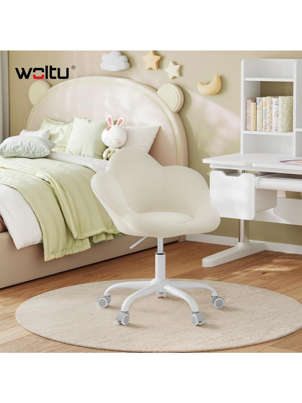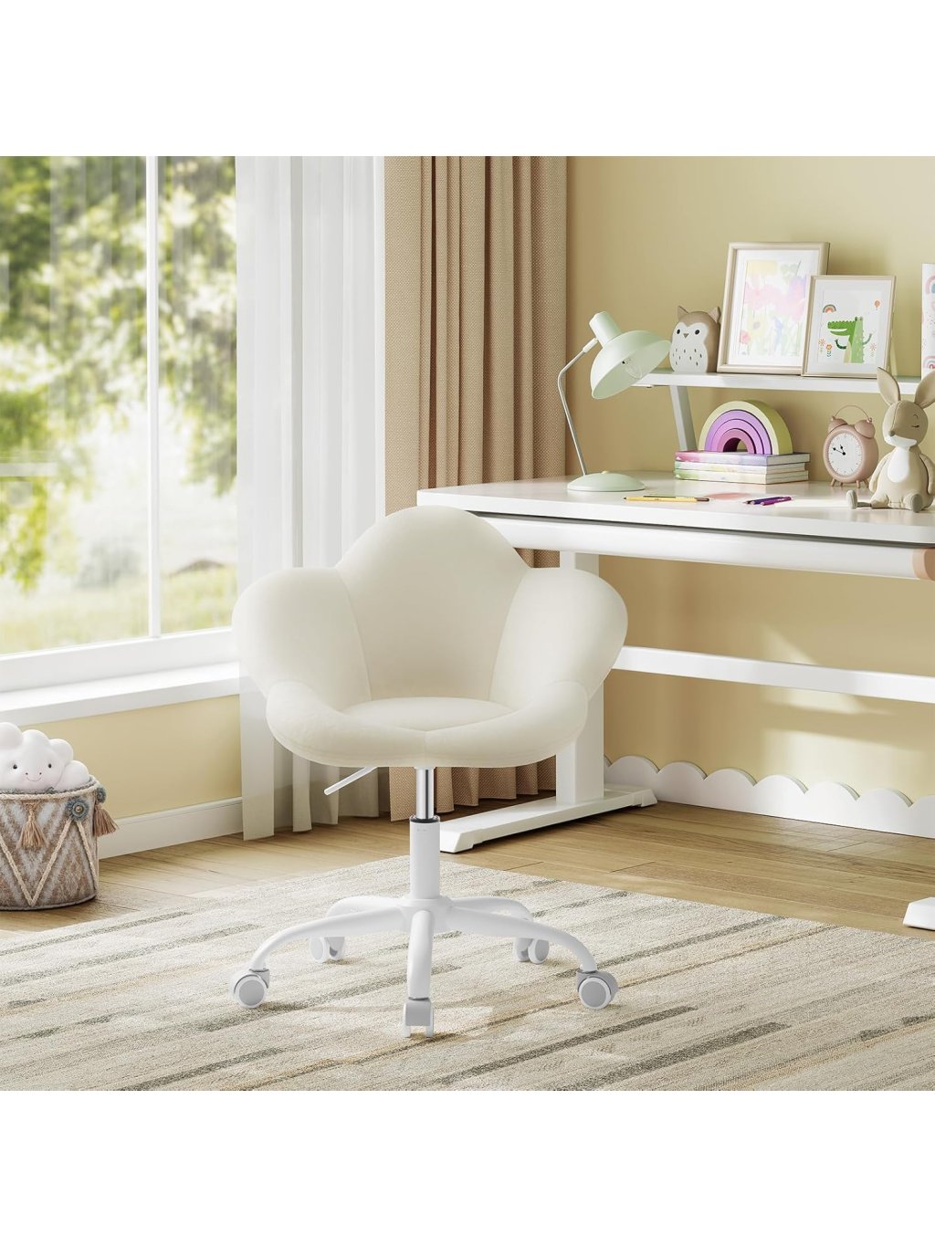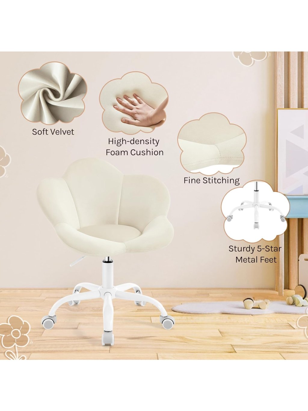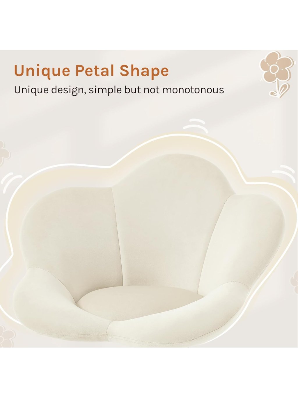 Dětská otočná židle ve tvaru květiny – sametová, výškově nastavitelná, na kolečkách, béžová