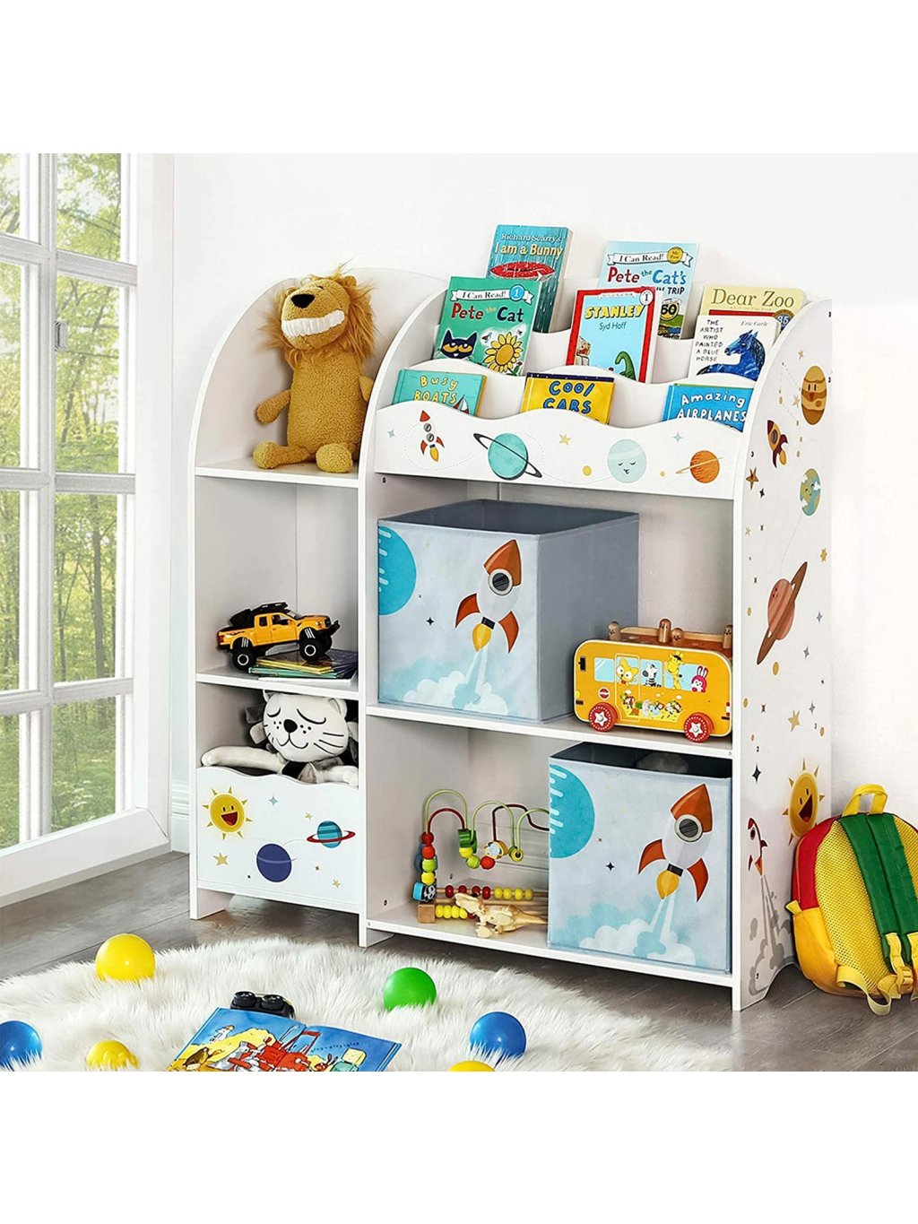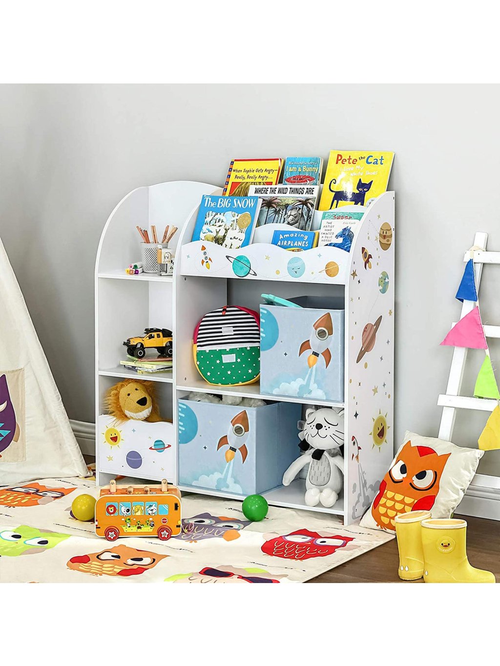 Dětský regál na knihy a hračky vesmírné motivy 93 x 100 x 30cm