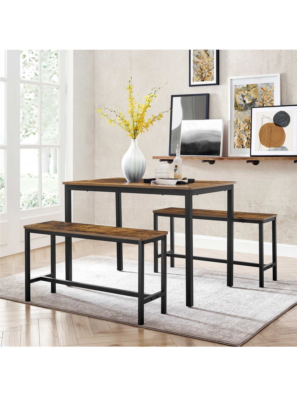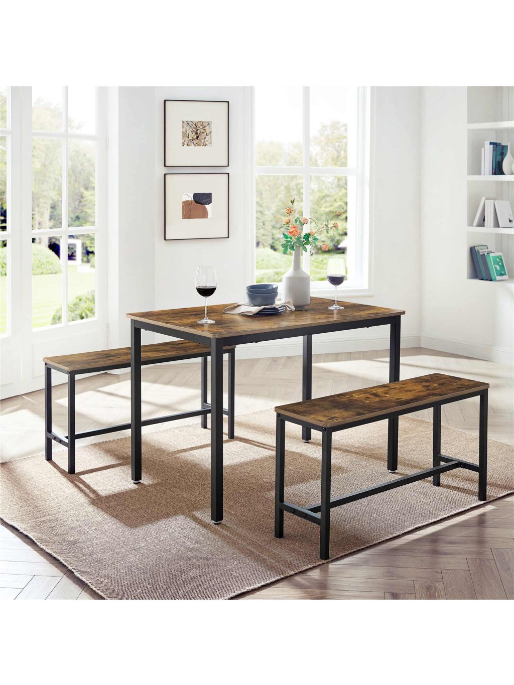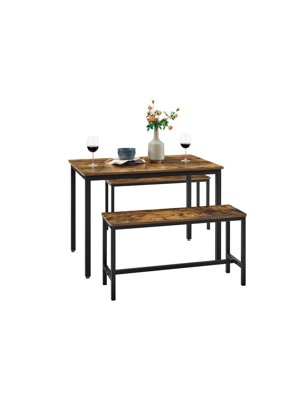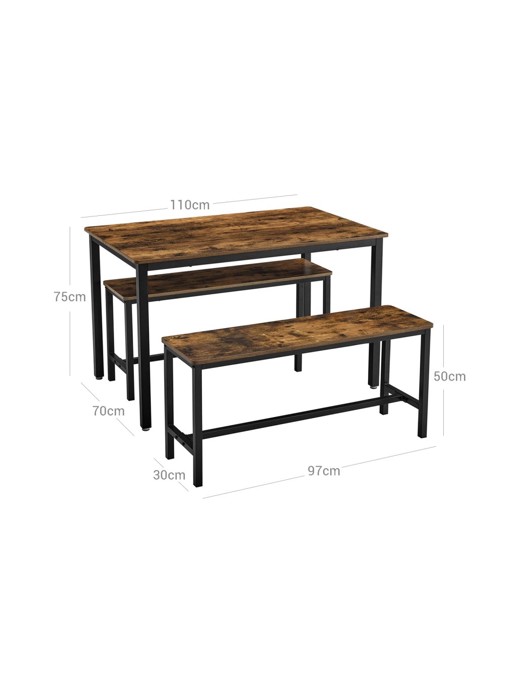 Jídelní set se stolem a 2 lavicemi – rustikální hnědá/černá, 3dílný set