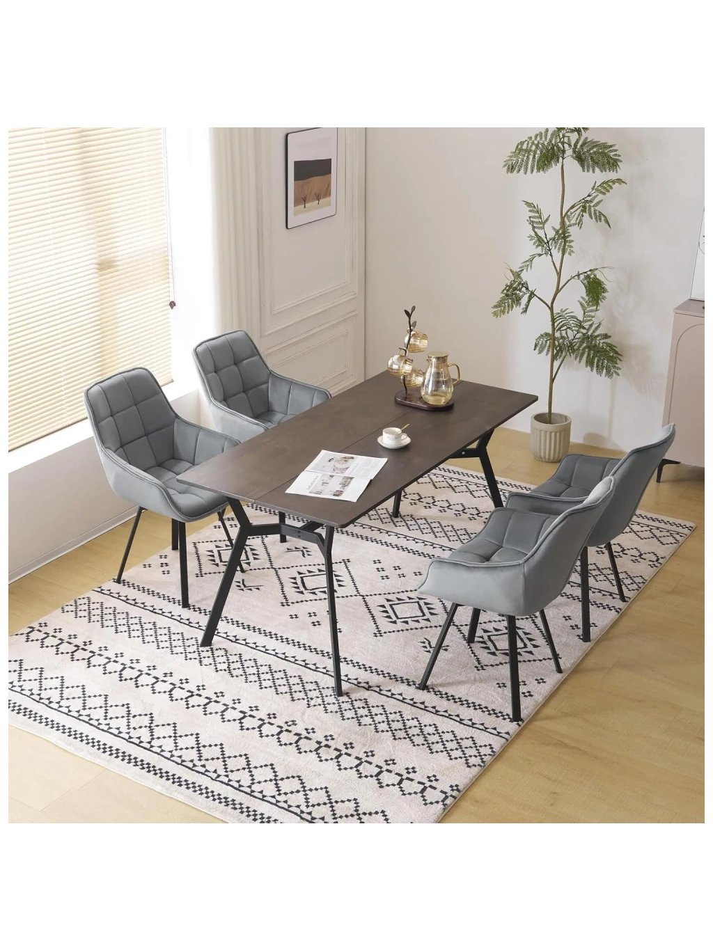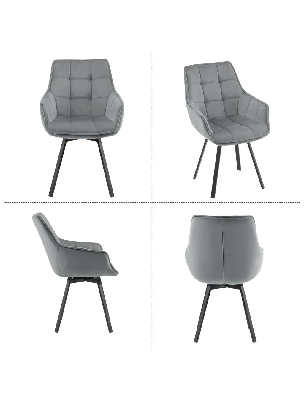 Stabilní konstrukce je zajištěna zesíleným otočným mechanismem a pevnými kovovými nohami, které zaručují vysokou odolnost a nosnost až 150 kg na jednu židli. Moderní, čisté linie v kombinaci s tmavě šedým provedením umožňují snadné začlenění do jídelny, obývacího pokoje i pracovního koutu.