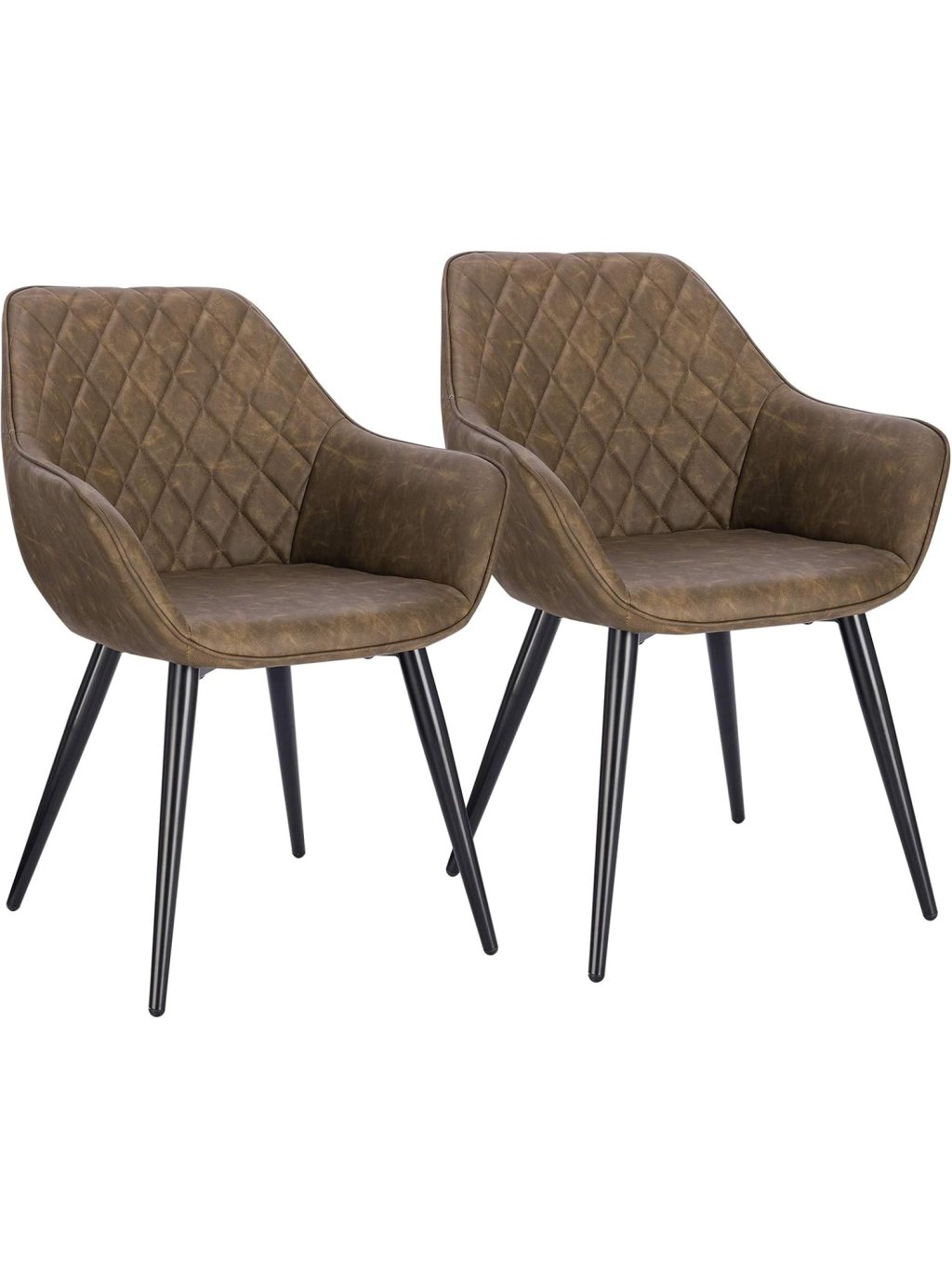 Jídelní židle s područkami z umělé kůže, tmavě hnědá – sada 2 ks