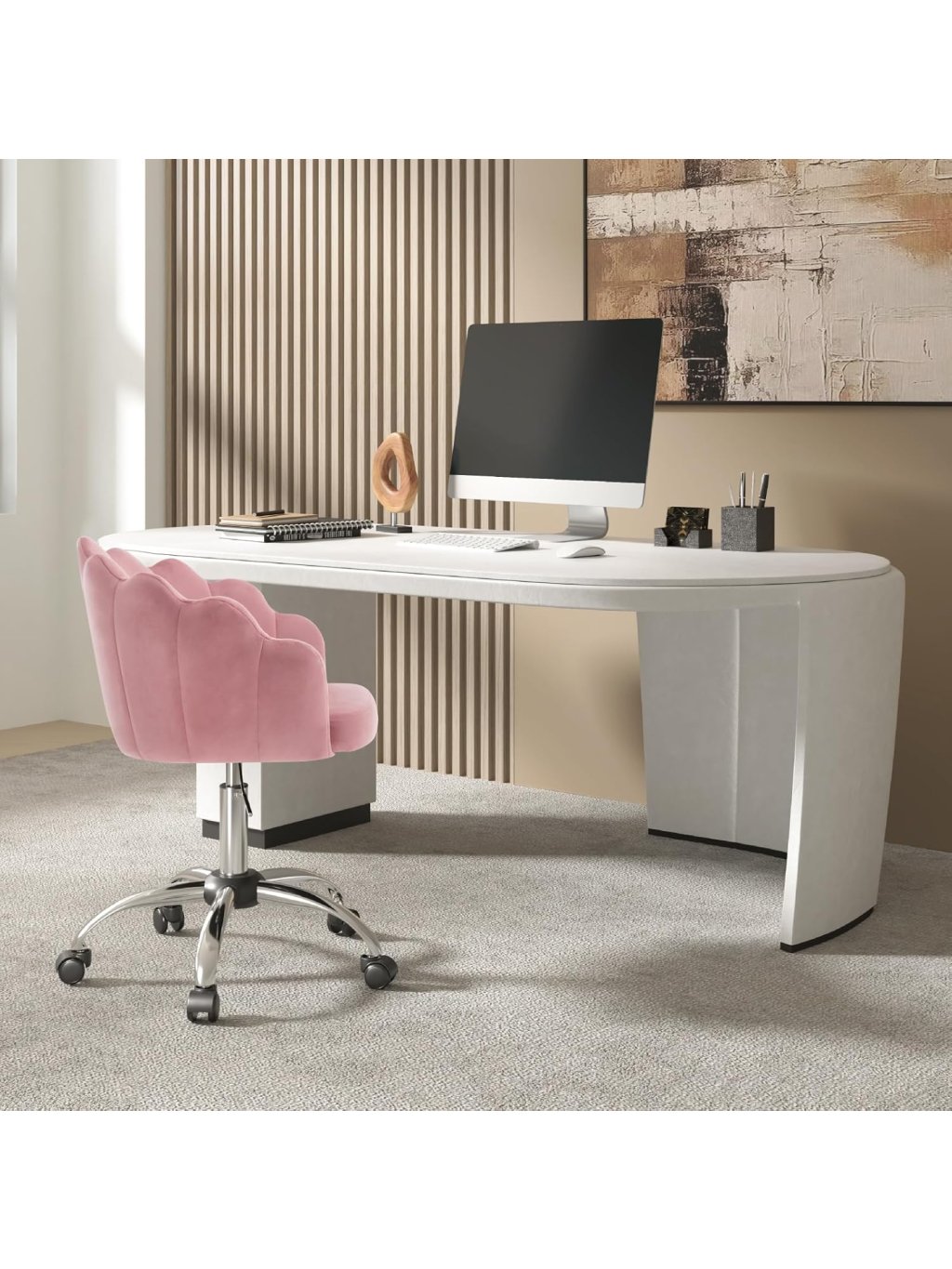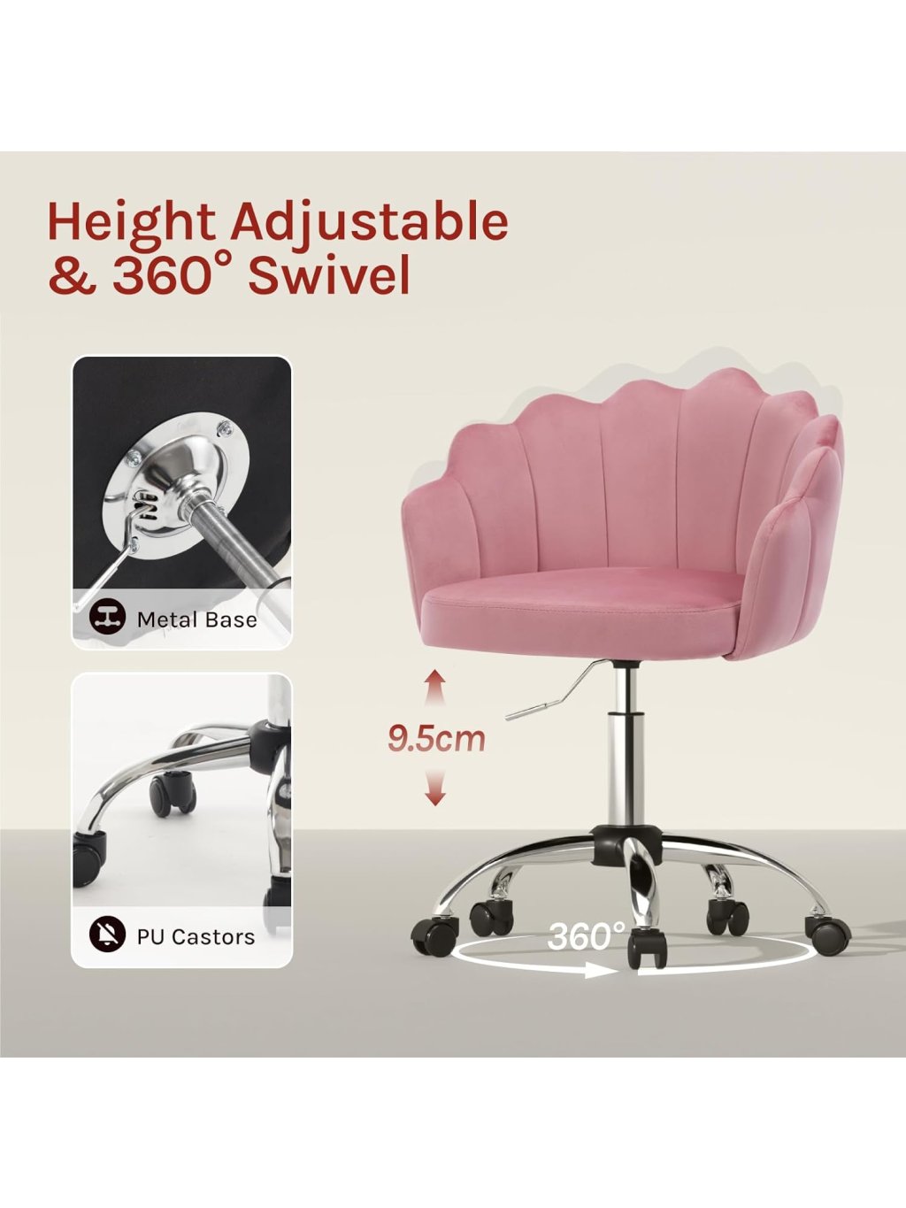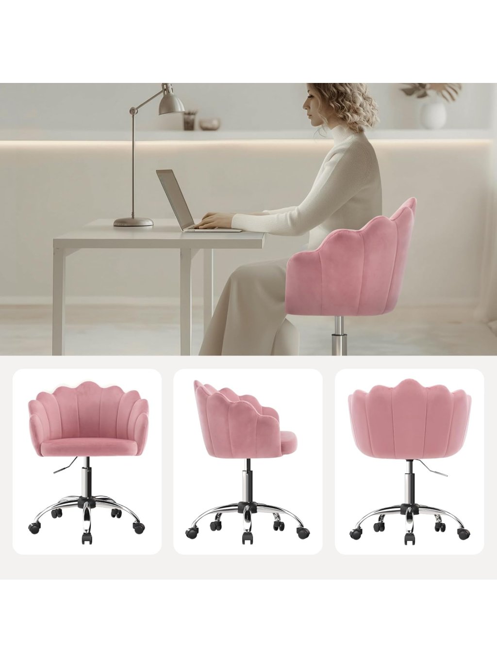 Toto elegantní kancelářské křeslo kombinuje maximální pohodlí křesla s funkčností pracovní židle. Díky svému luxusnímu vzhledu se sametovým čalouněním a dekorativním kosočtvercovým prošíváním na vnější straně se stane stylovým středobodem vaší domácí pracovny, studentského pokoje nebo koutku s toaletním stolkem.