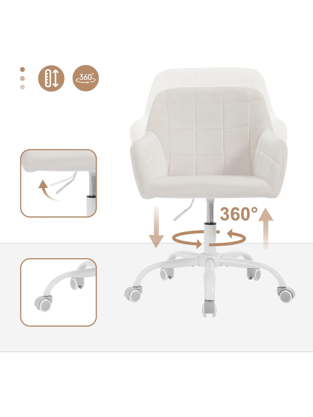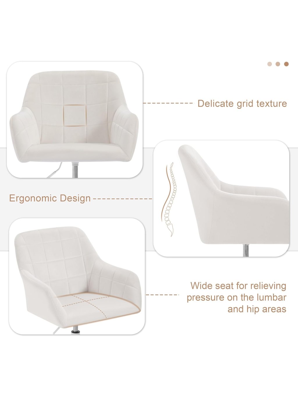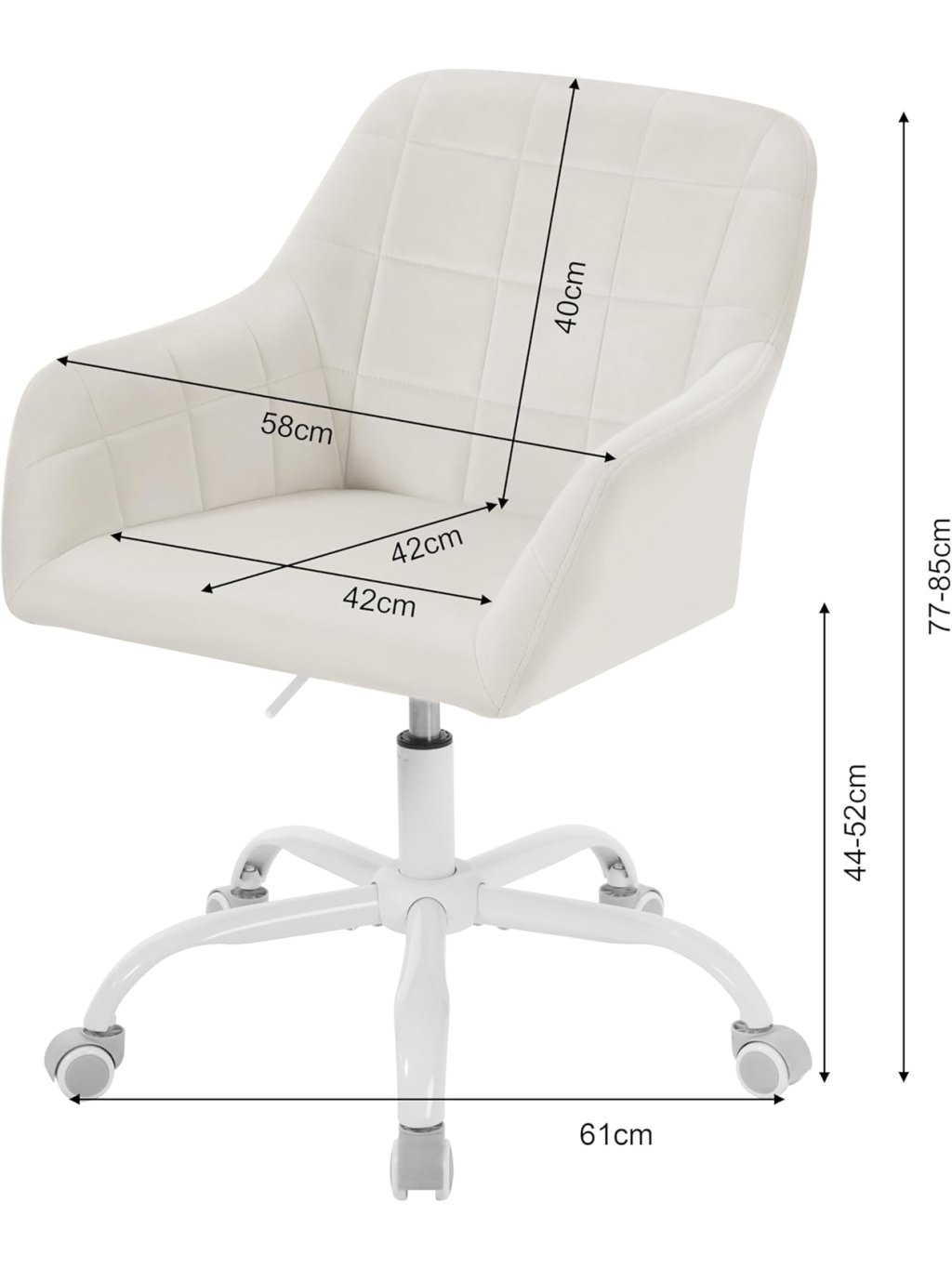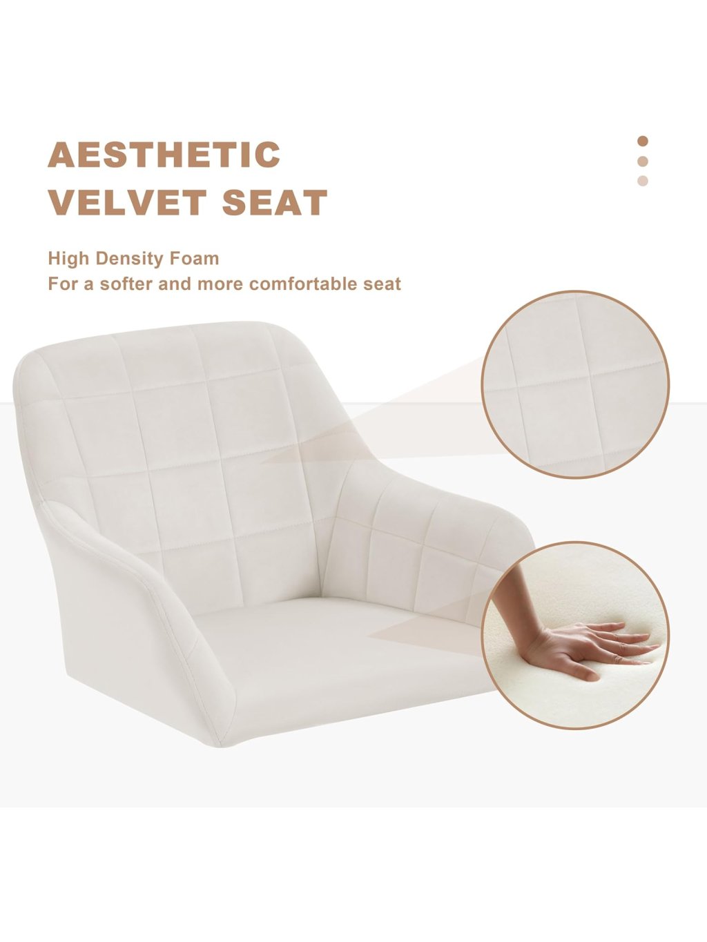 Elegantní design a prémiový komfort Křeslo je potaženo jemným sametem v barvě "Cream White", který je mimořádně příjemný na dotek, prodyšný a odolný. Ergonomicky tvarovaná skořepina s integrovanými područkami a bohatým polstrováním z husté pěny poskytuje vynikající oporu a pohodlí i při delším sezení u počítače nebo při ranní péči o pleť.