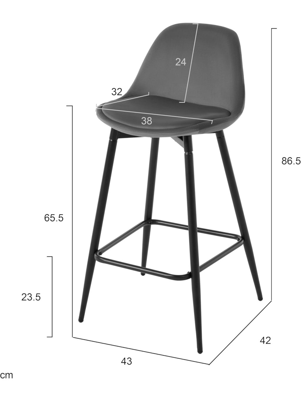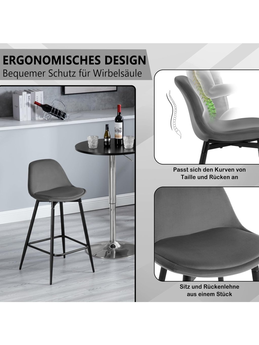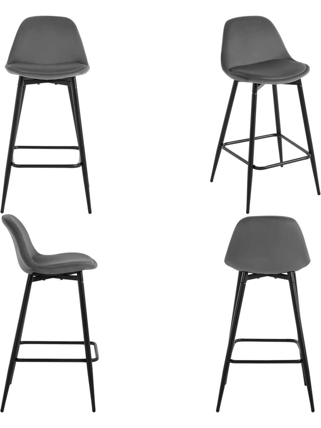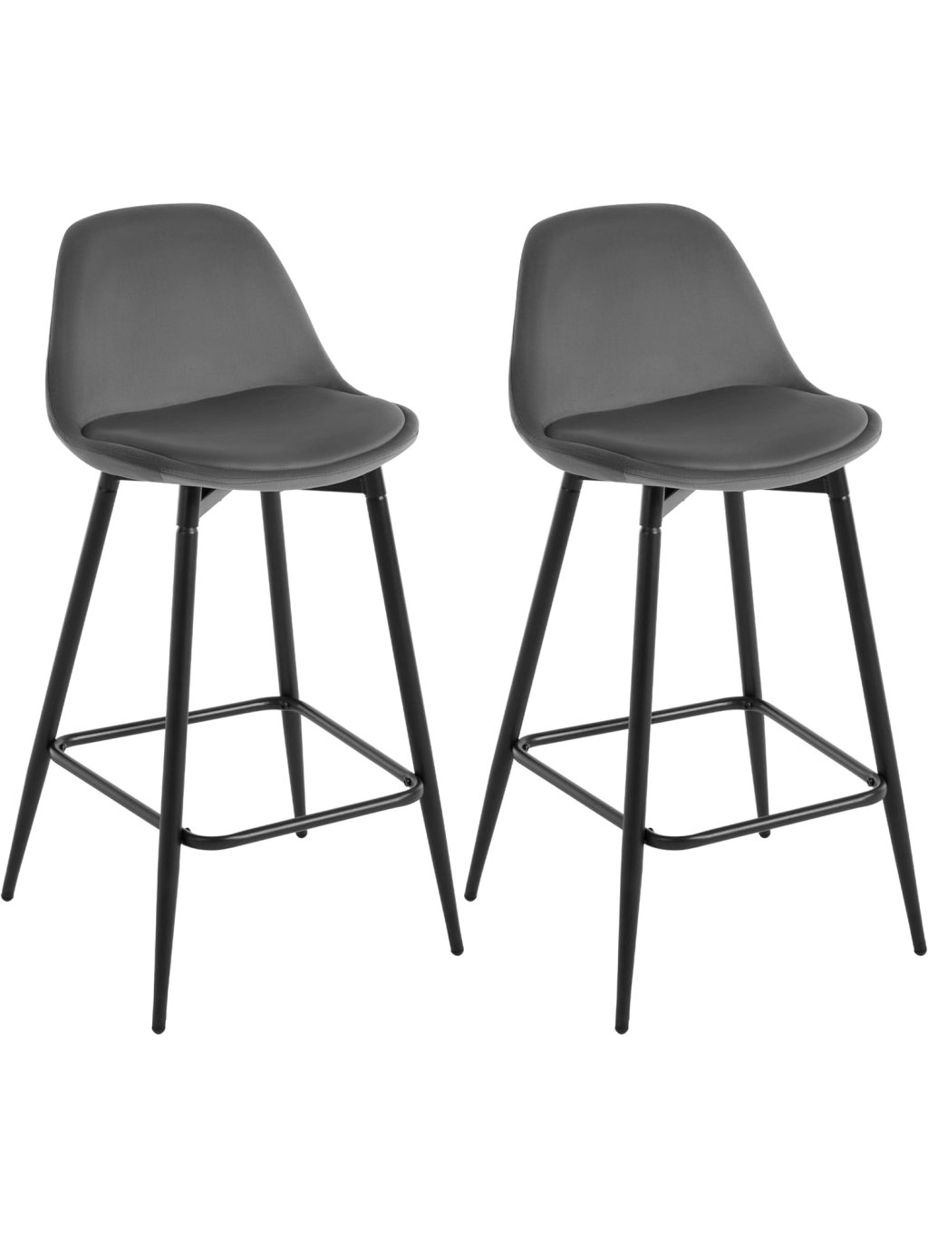 Klihome 2× barová židle K0005BH, samet, kov, opěrka, tmavě šedá