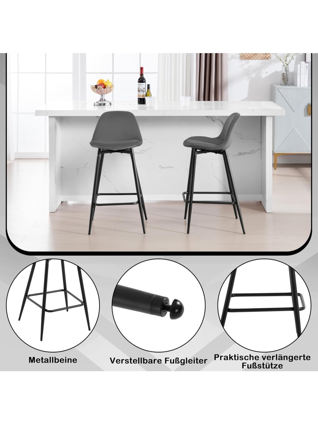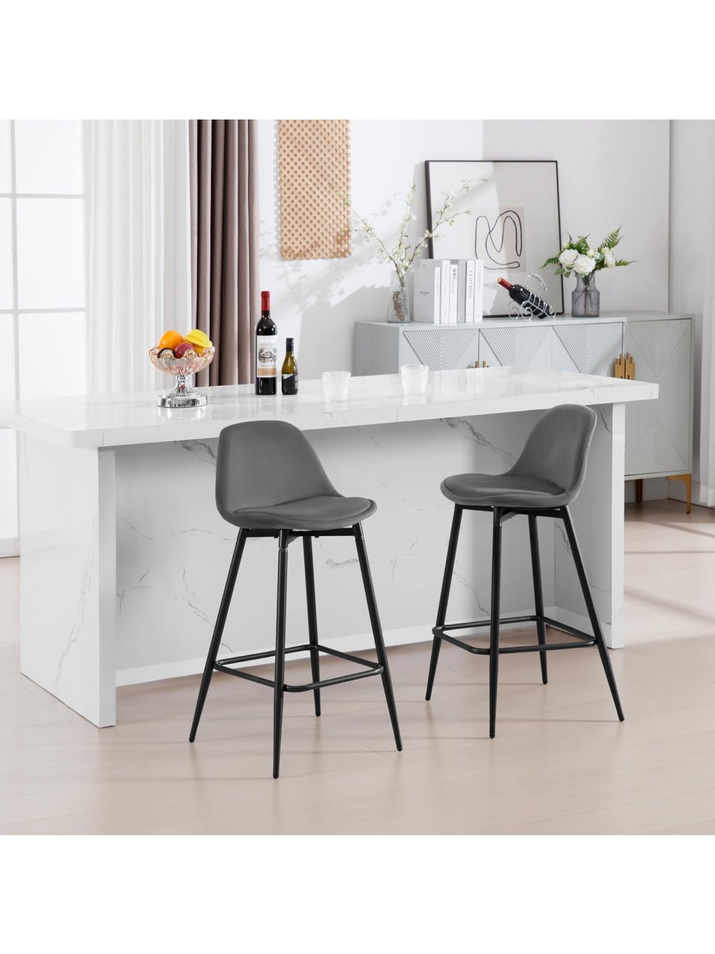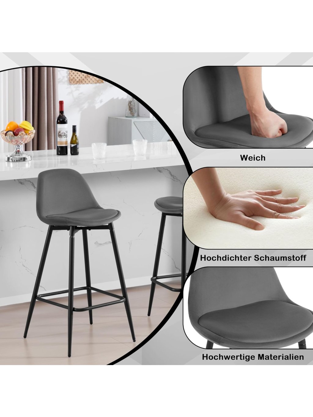 Stylové a pohodlné barové židle Klihome s elegantním sametovým čalouněním, ergonomickým tvarem a pevnou kovovou konstrukcí dodají vaší kuchyni, baru či jídelně moderní a útulný nádech. Skvěle se hodí nejen k ostrůvkům, ale i do restaurací, bister a obývacích prostor.