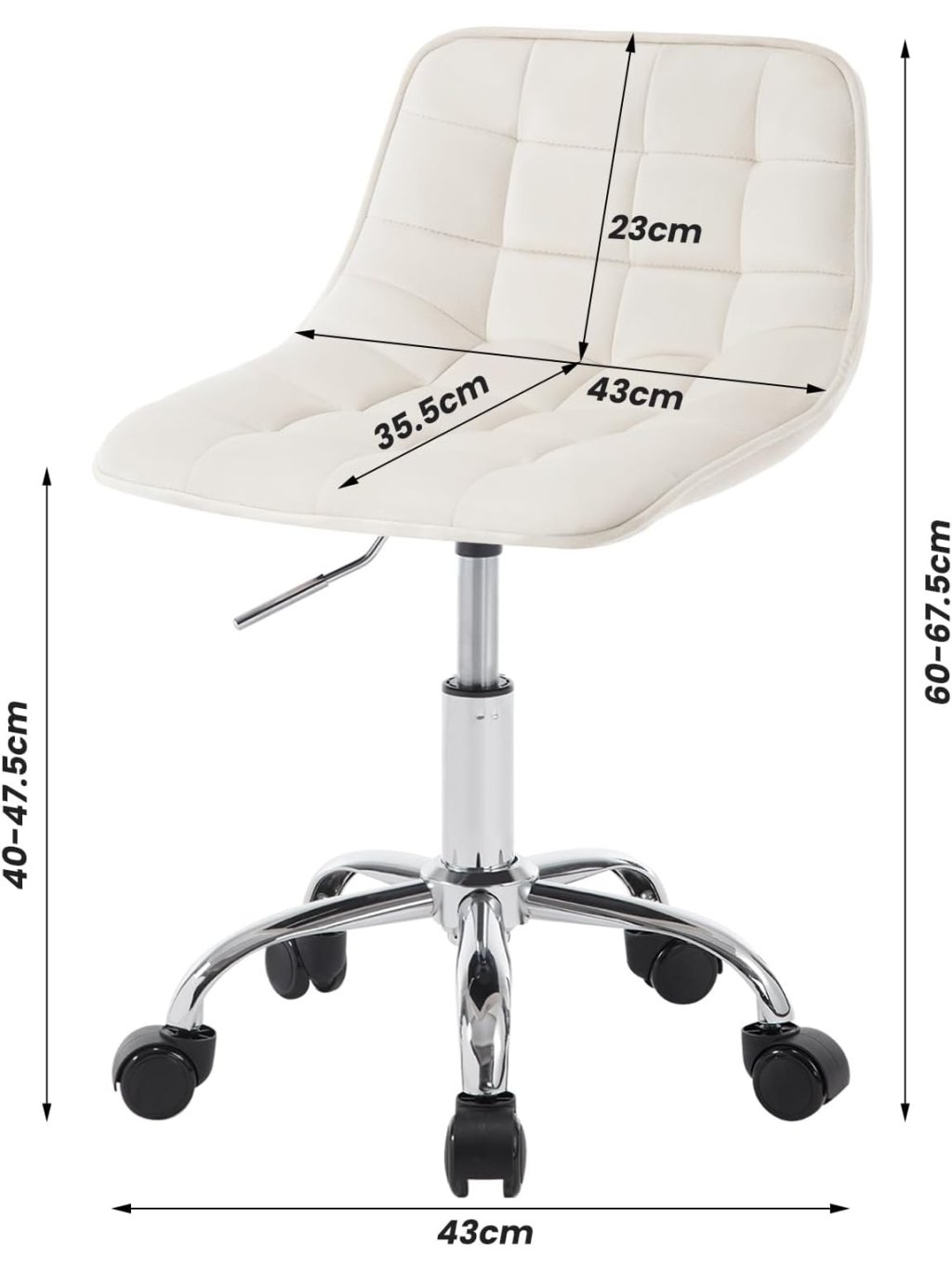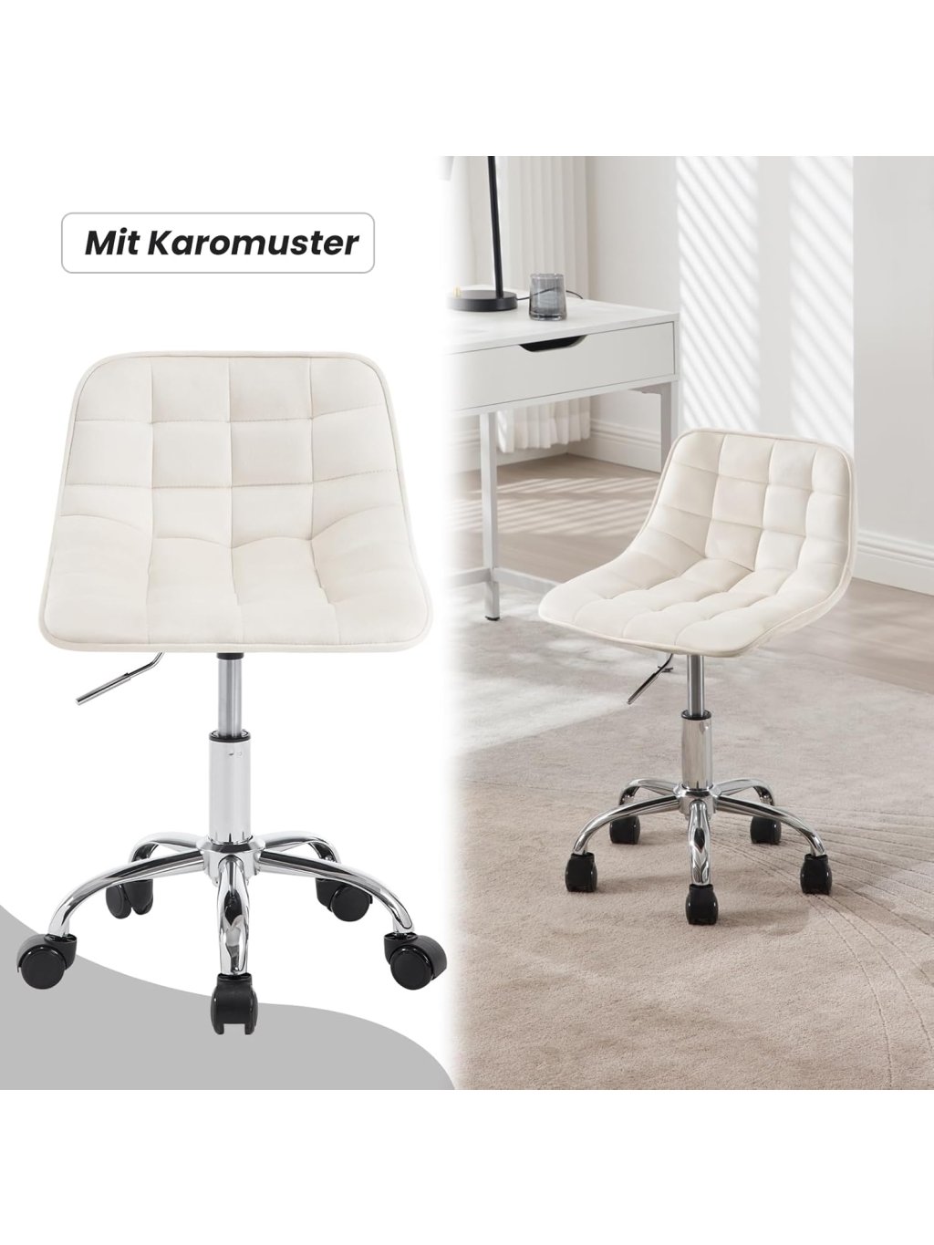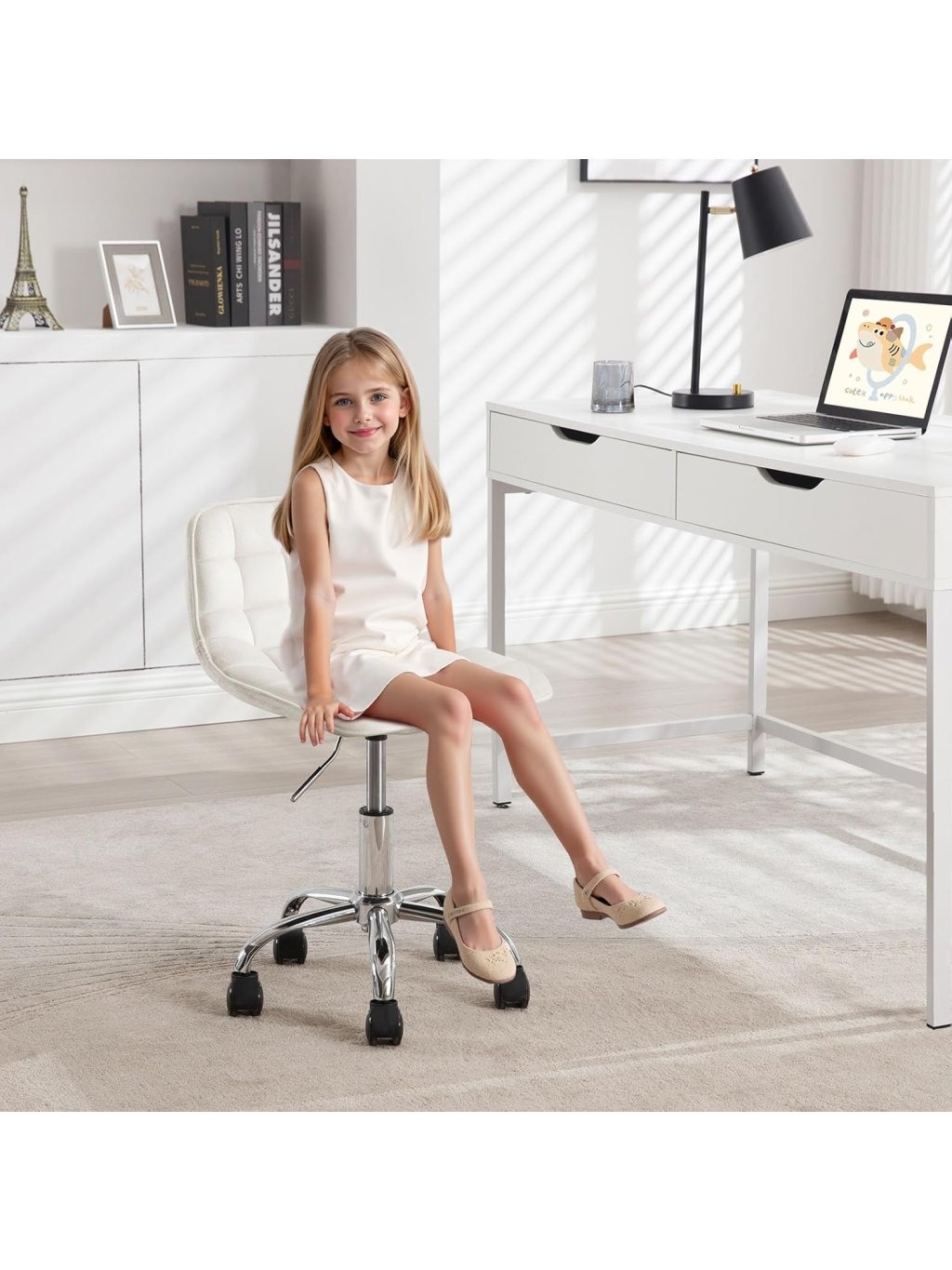 Praktické a multifunkční využití: Kompaktní rozměry a moderní vzhled umožňují použití jako dětská židle k psacímu stolu, kosmetická židle, otočná kancelářská židle, pracovní stolička apod. Hodí se do dětského pokoje, ložnice, pracovny, k toaletnímu stolku nebo i do salonu.
