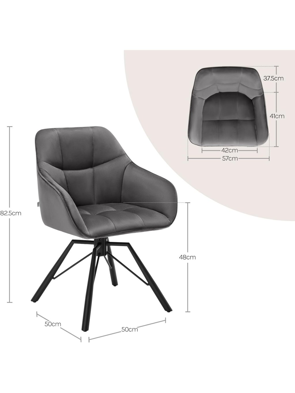 Otočná sametová jídelní židle s područkami – tmavě šedá, 1 ks