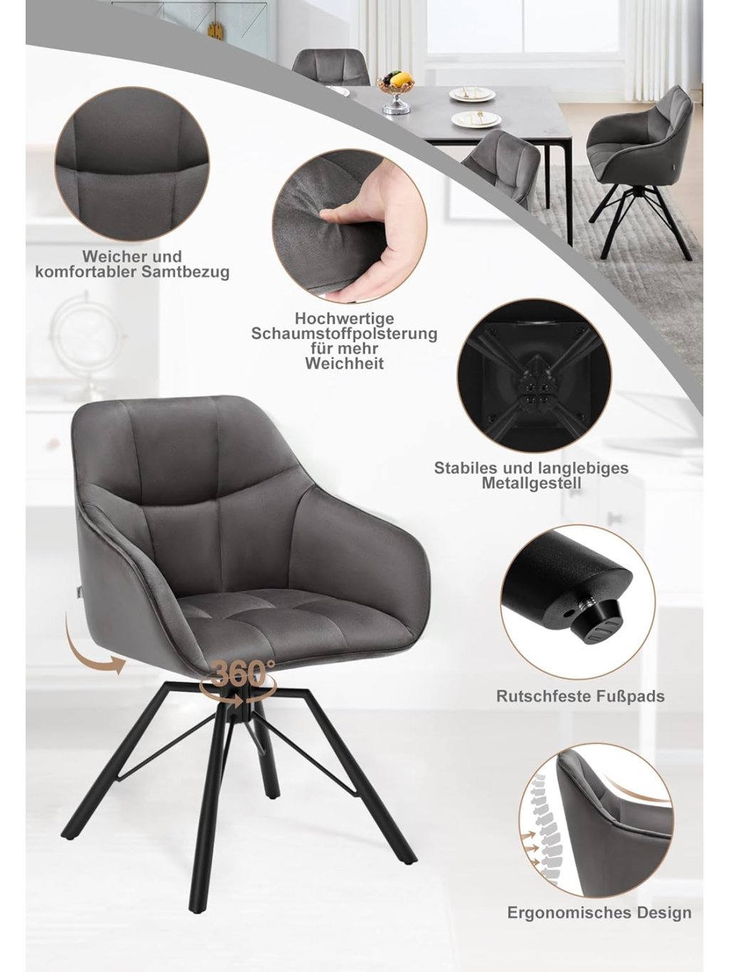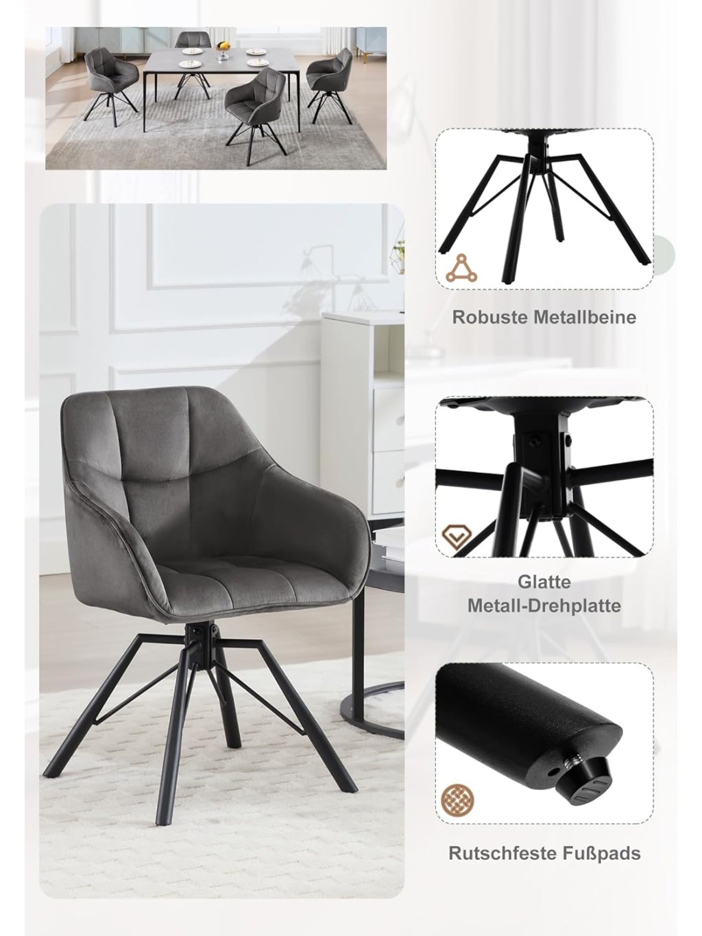 Hledáte pohodlnou, elegantní a stabilní židli do jídelny, kuchyně nebo domácí kanceláře? Tato otočná židle s hebkým sametem a ergonomickým designem je ideální volbou pro stylové a pohodlné sezení.