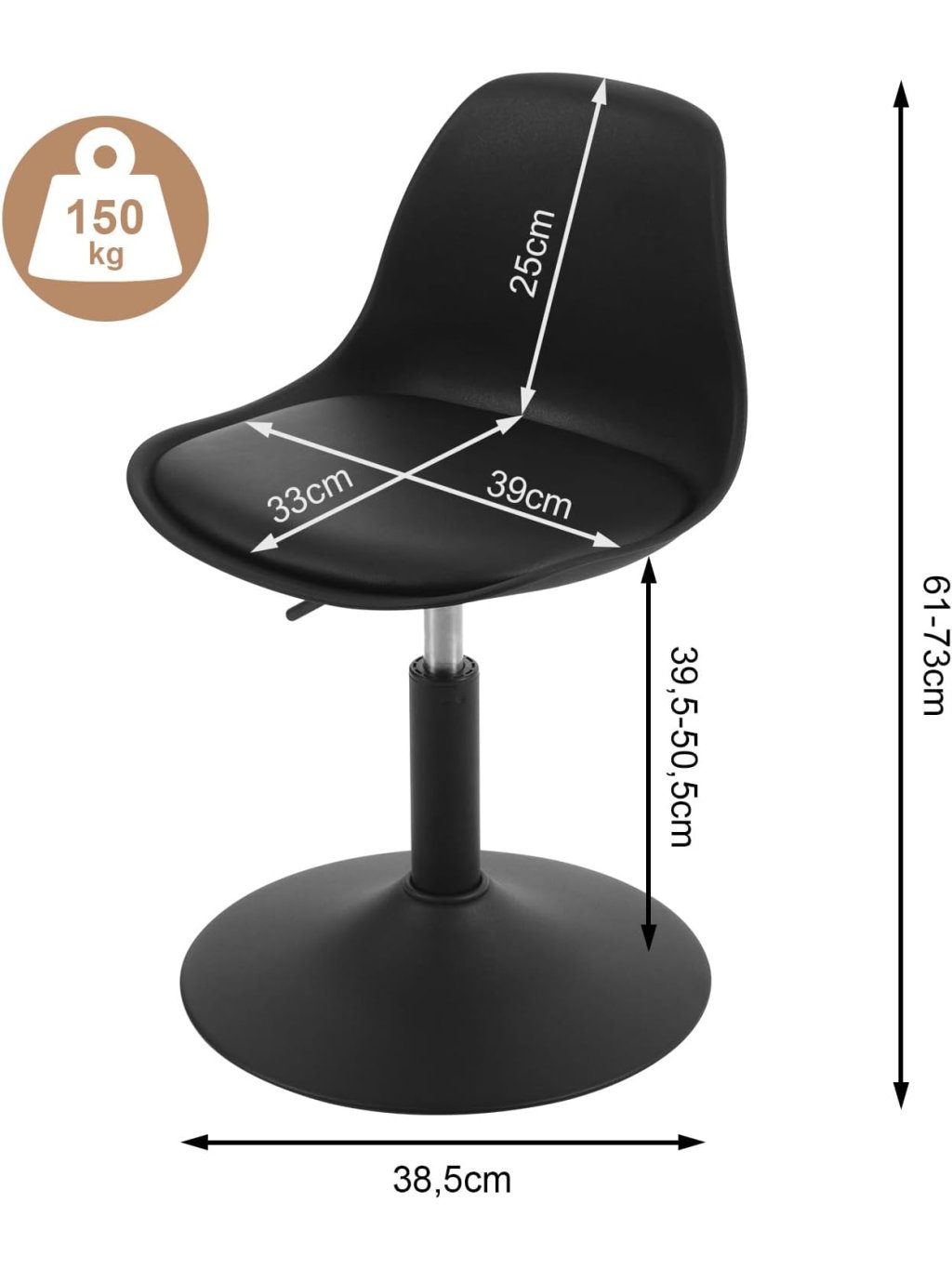 Výška sedu: 39,5–50,5 cm