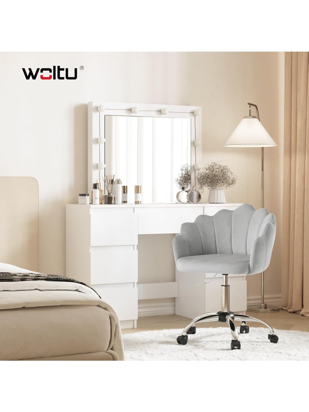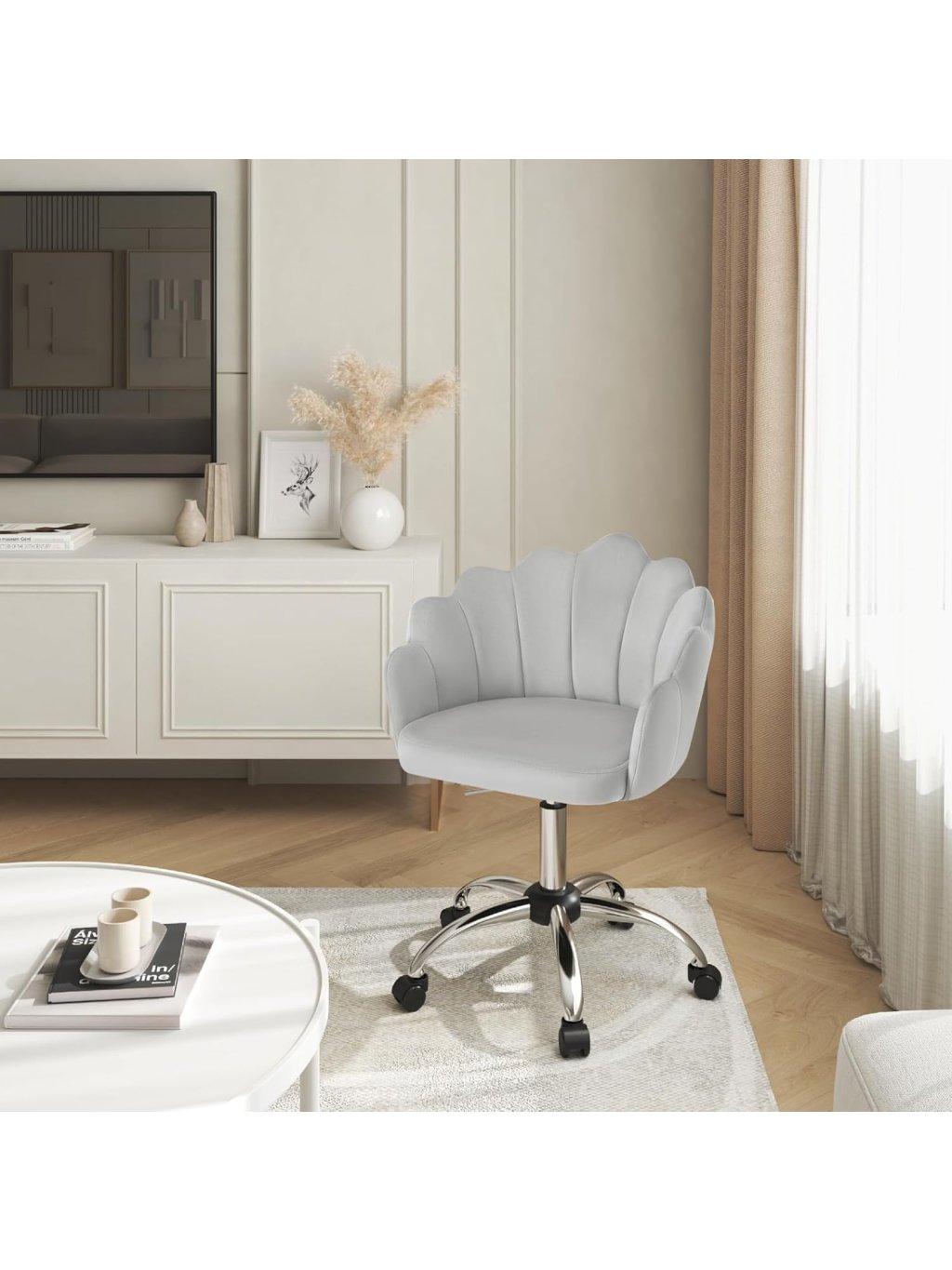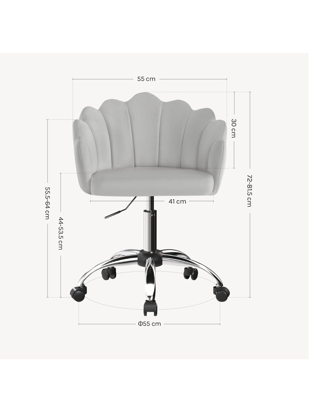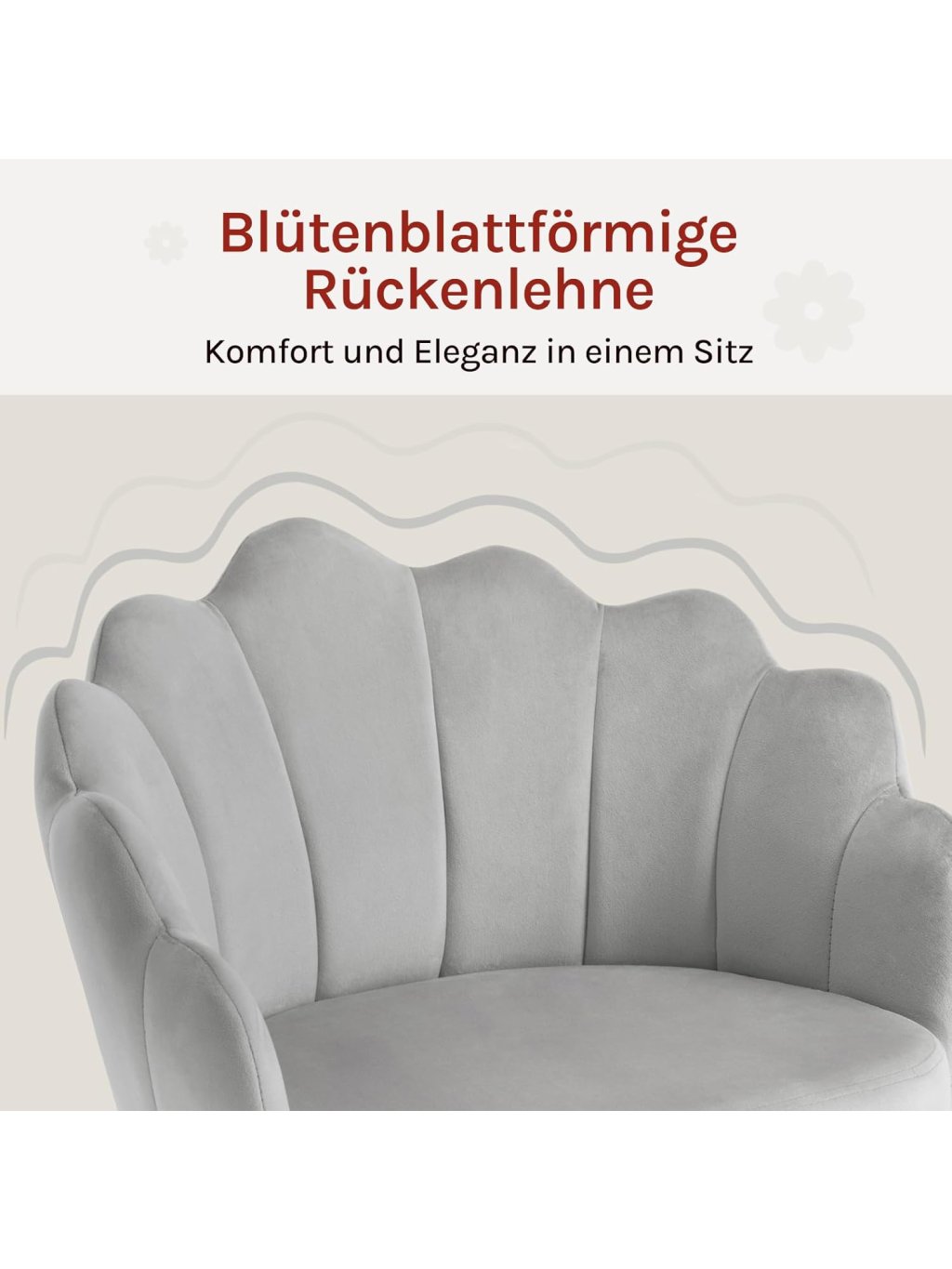 WOLTU BS152hgr Otočná židle ve tvaru květu – světle šedá sametová kancelářská židle s kolečky