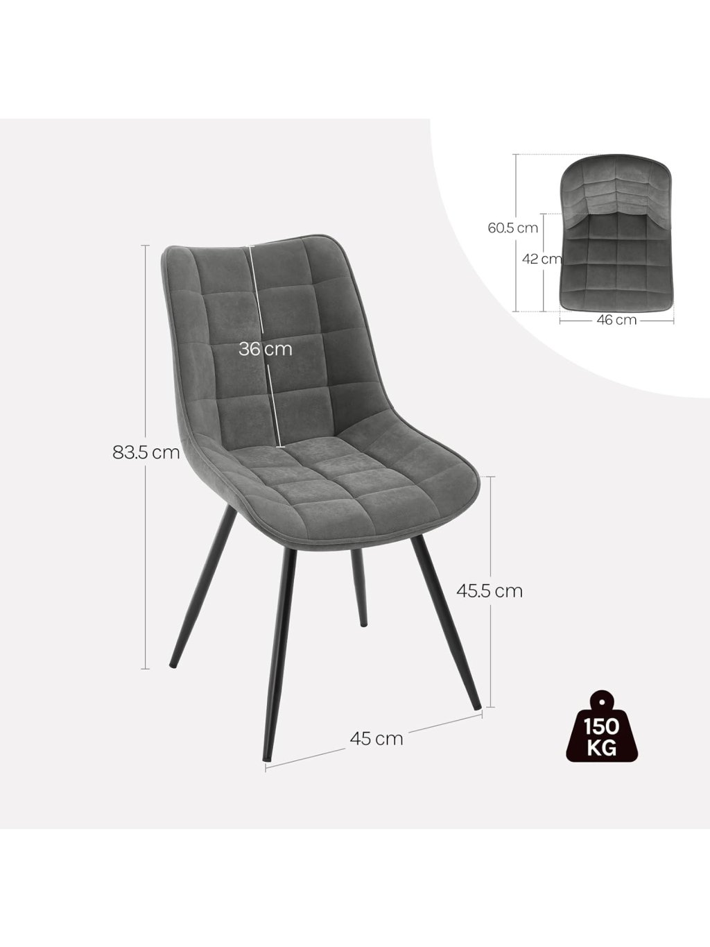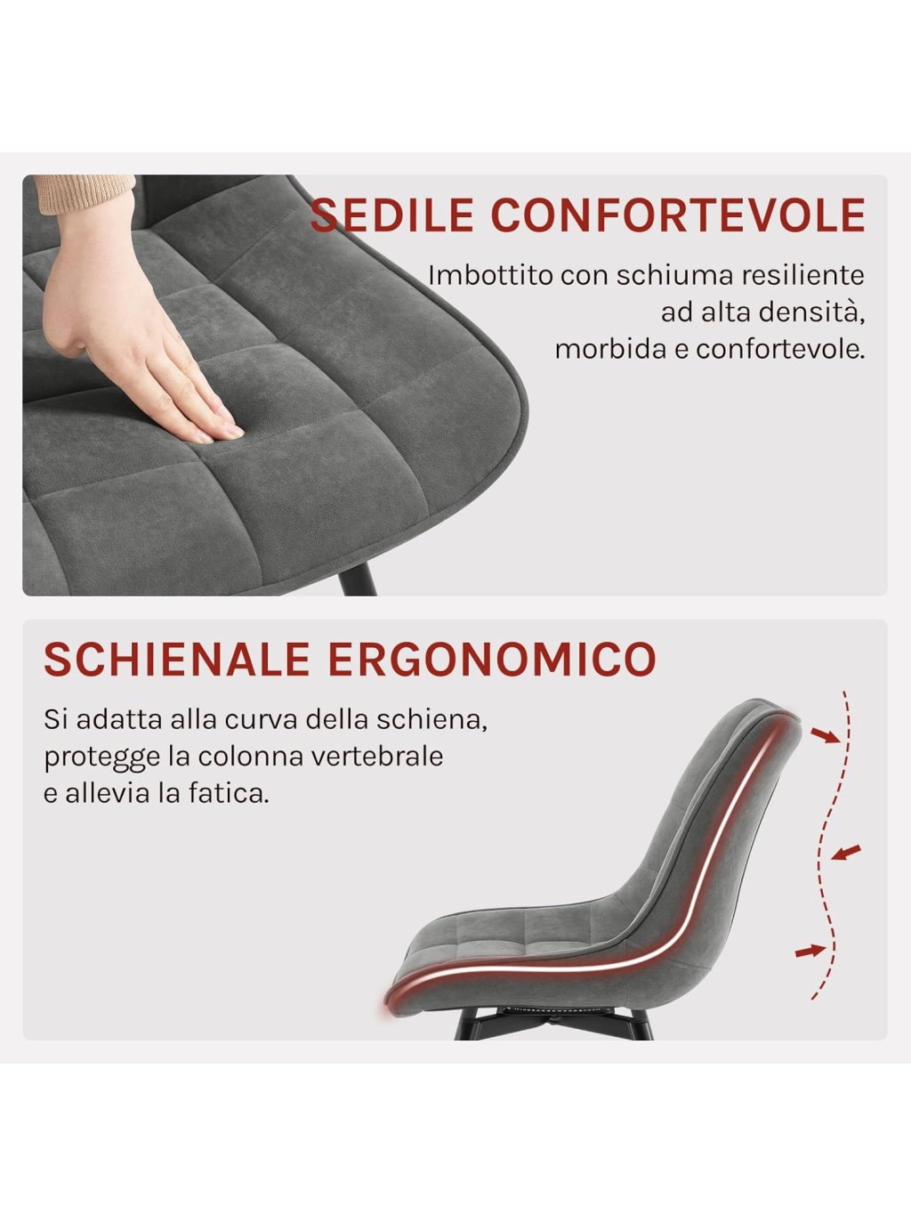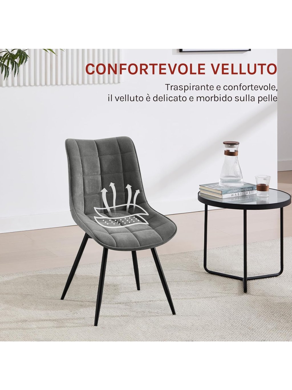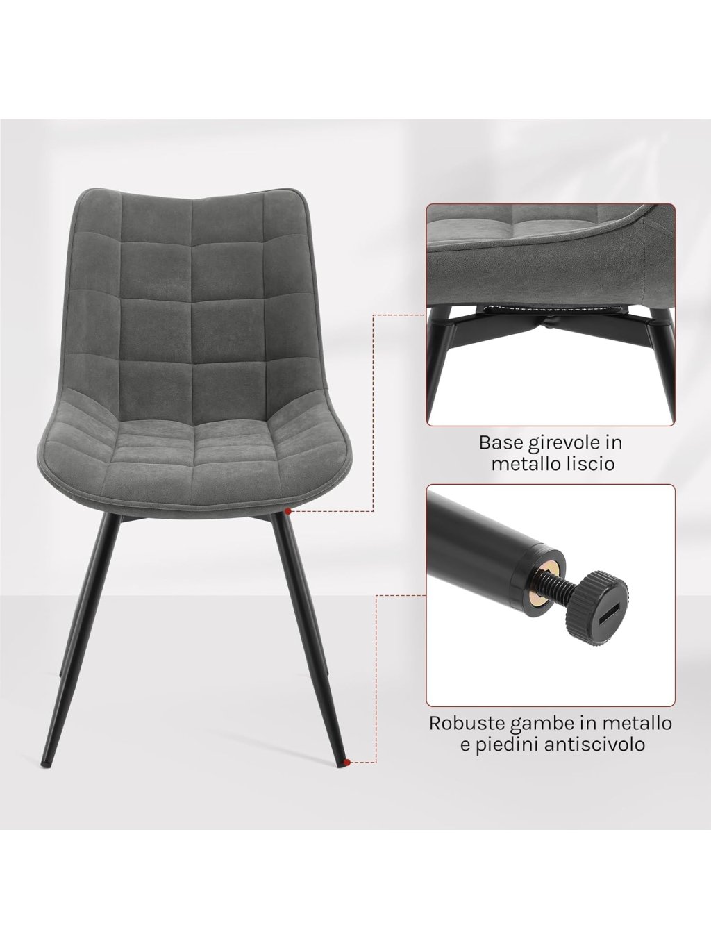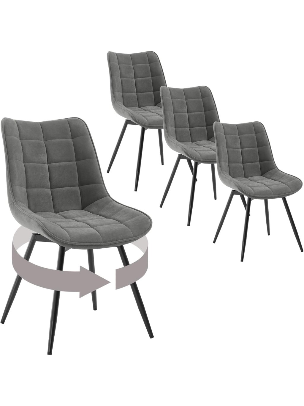 Otočné jídelní židle WOLTU EZS87 – sada 4 ks, samet, tmavě šedá