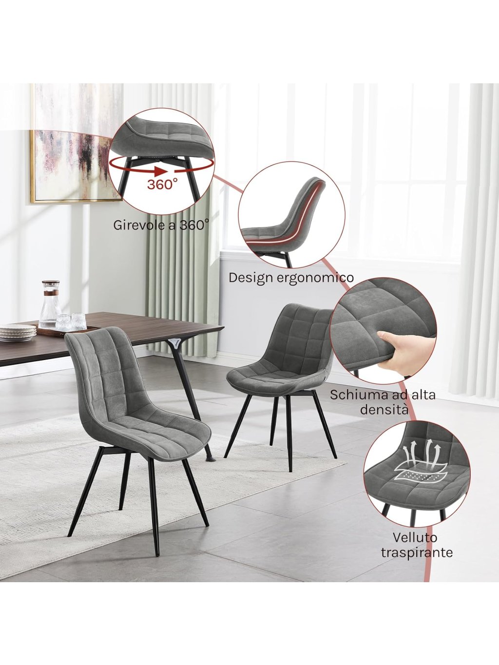 Elegantní jídelní židle WOLTU kombinují pohodlí, moderní design a funkčnost. Díky otočné základně se sedák volně otáčí o 360°, což zajišťuje maximální flexibilitu při stolování i práci.