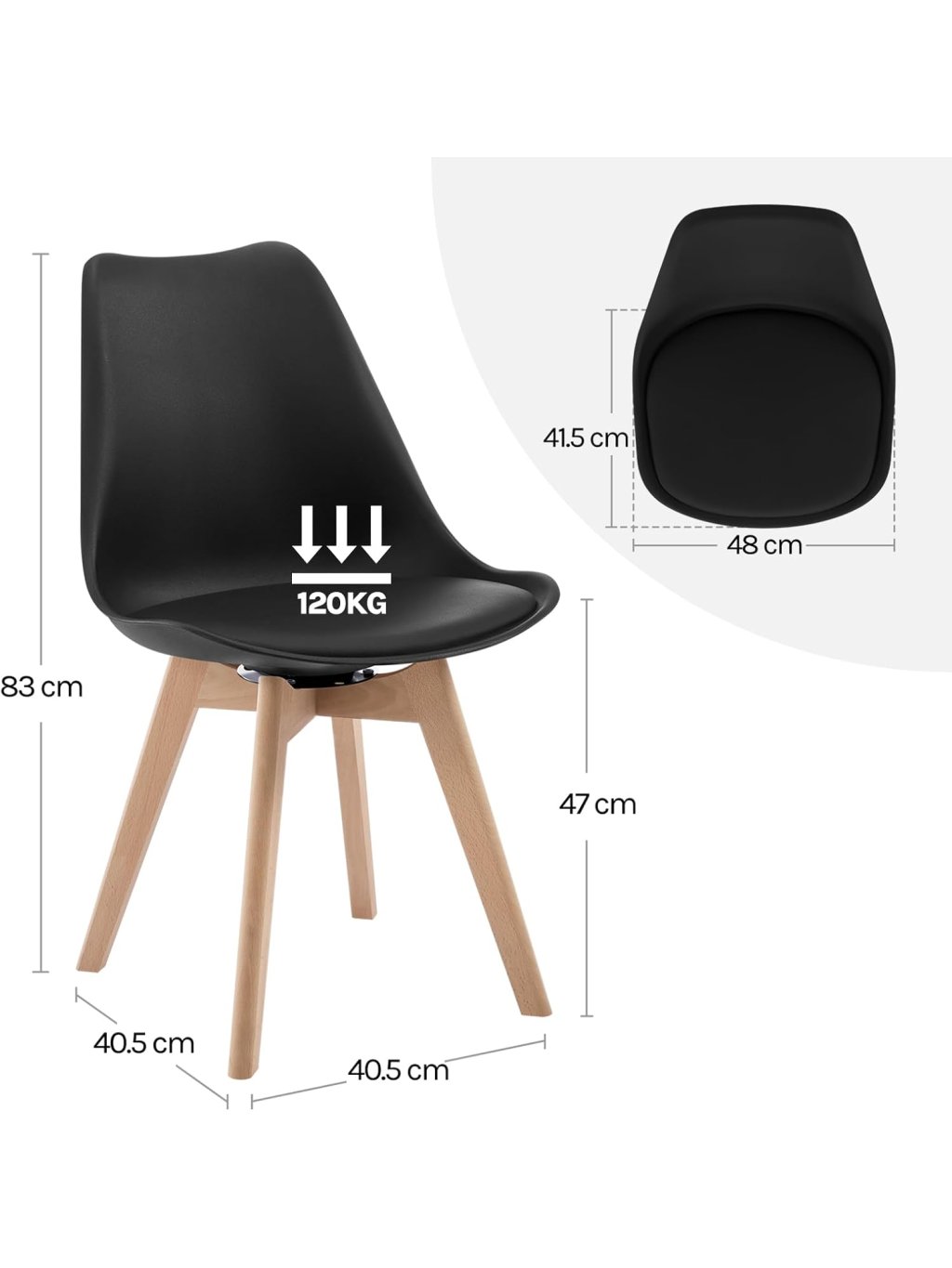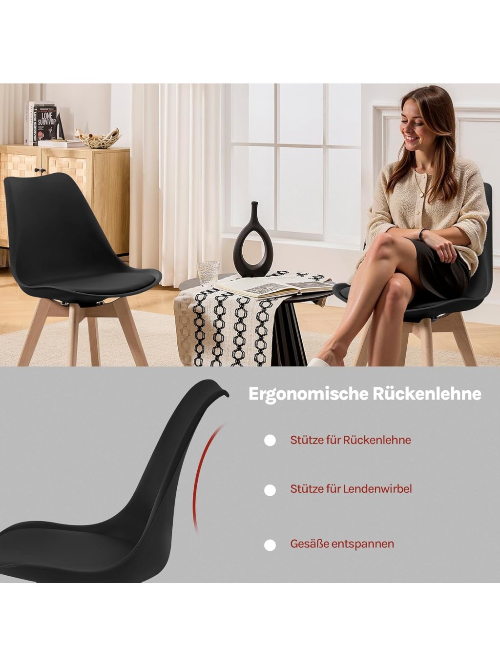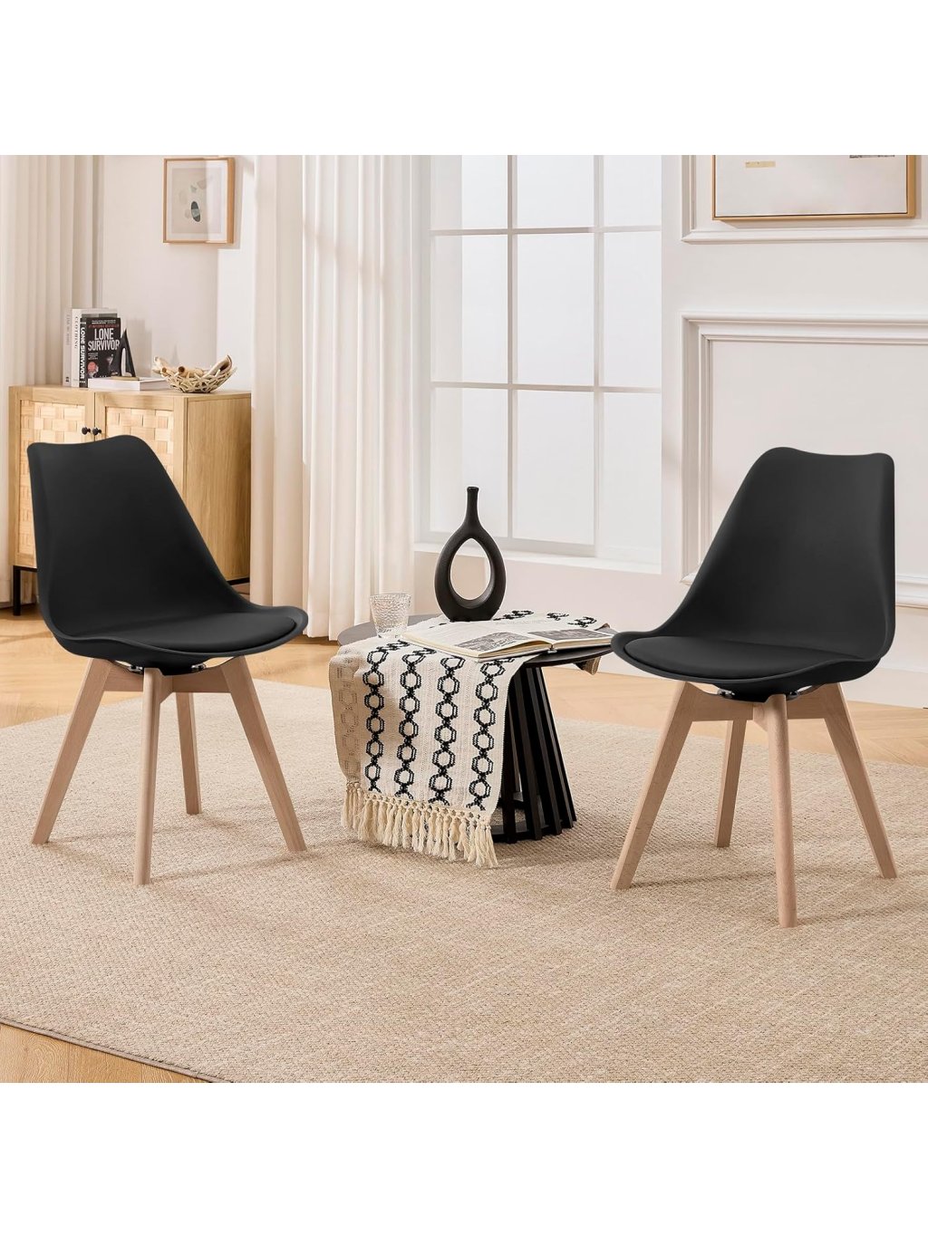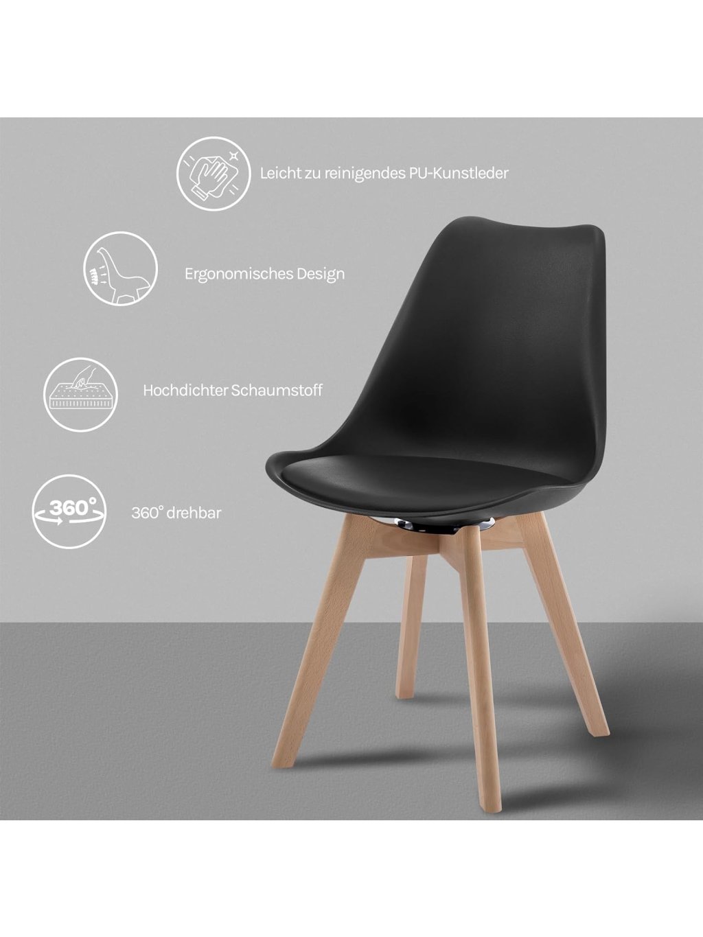 WOLTU sada 2 otočných jídelních židlí, černé, moderní židle z umělé kůže, masivní dřevo, nosnost 120 kg