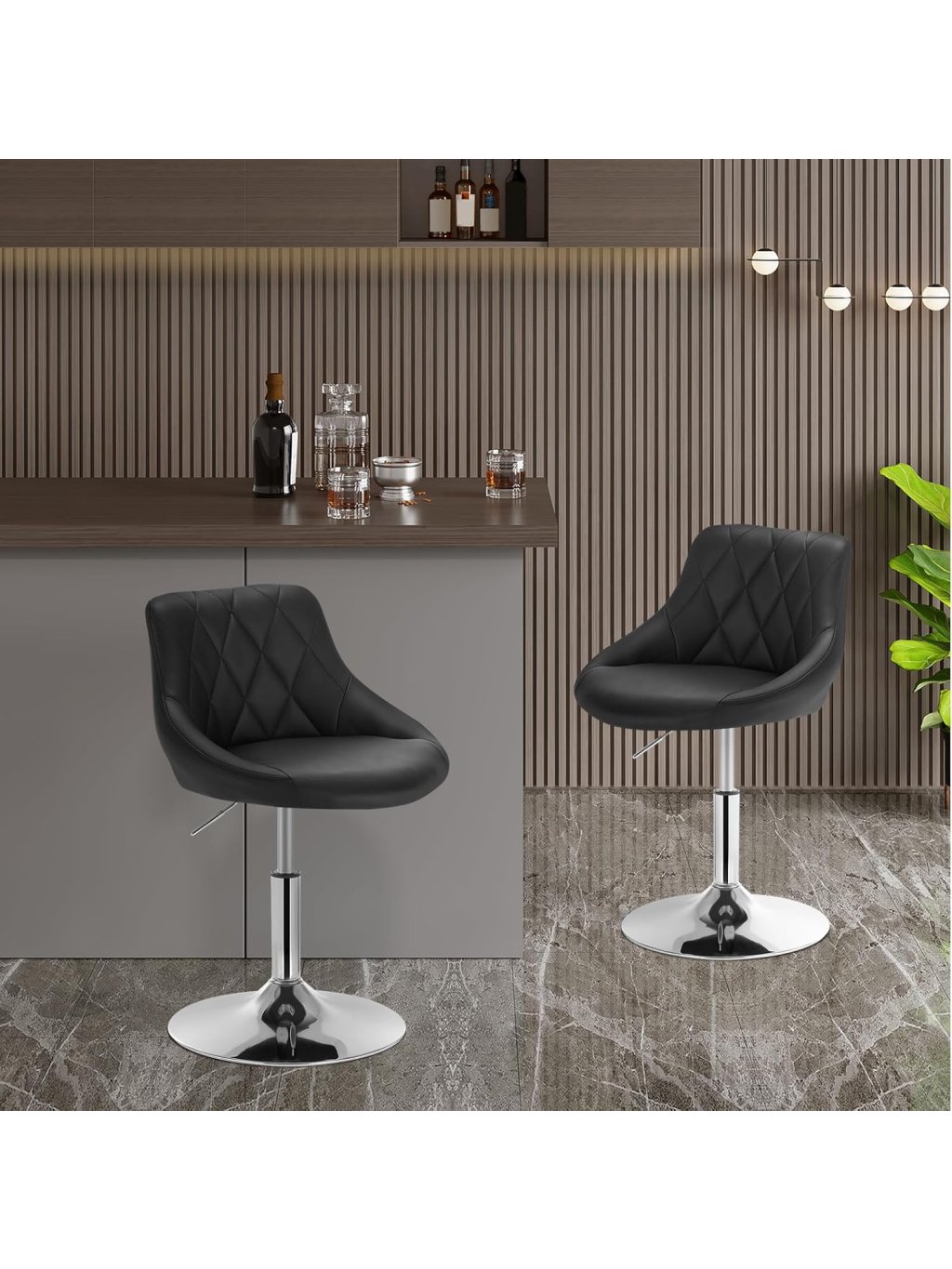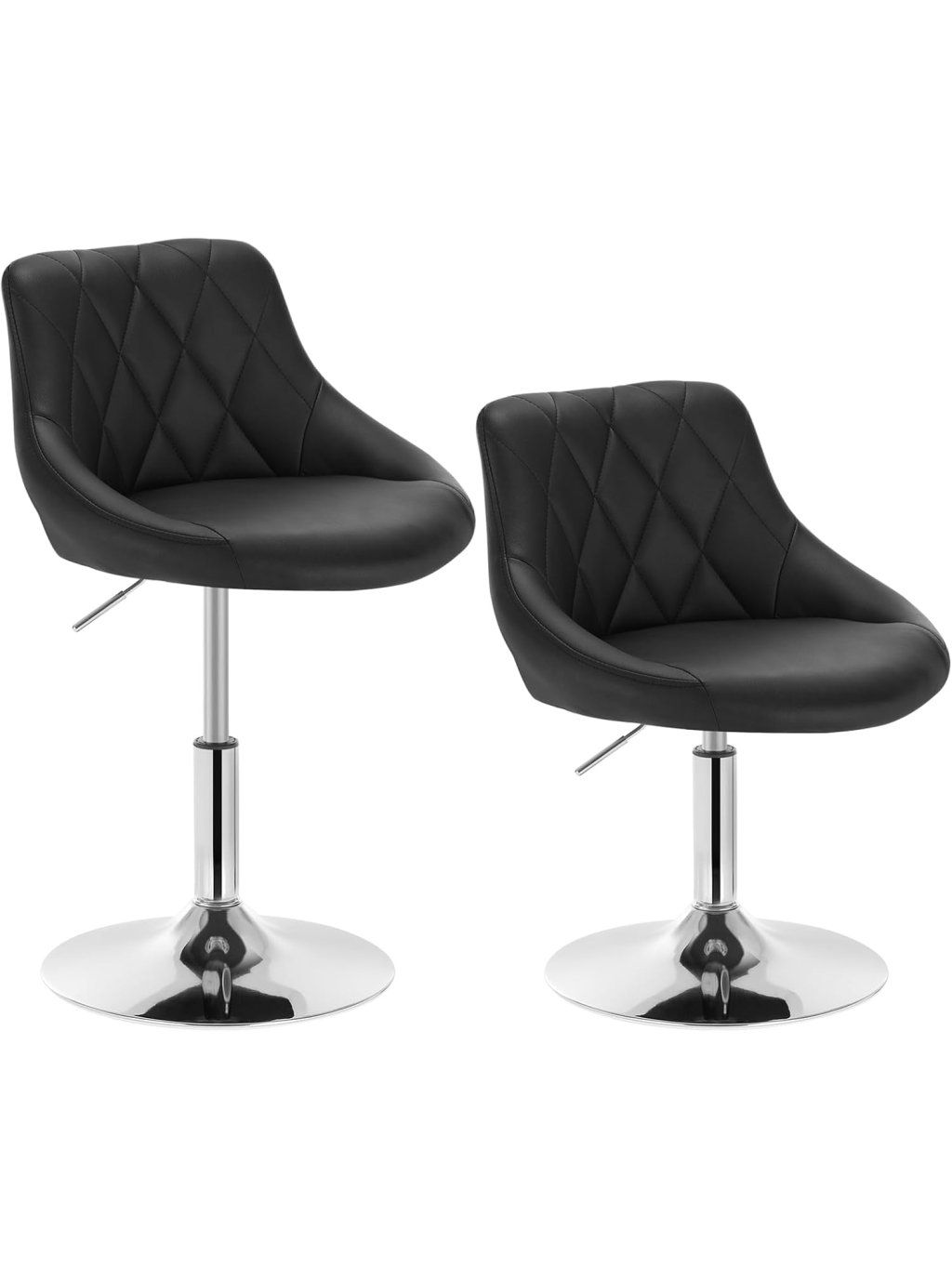 Otočné výškově nastavitelné barové stoličky s opěrkou, z ekokůže – sada 2 ks, černé