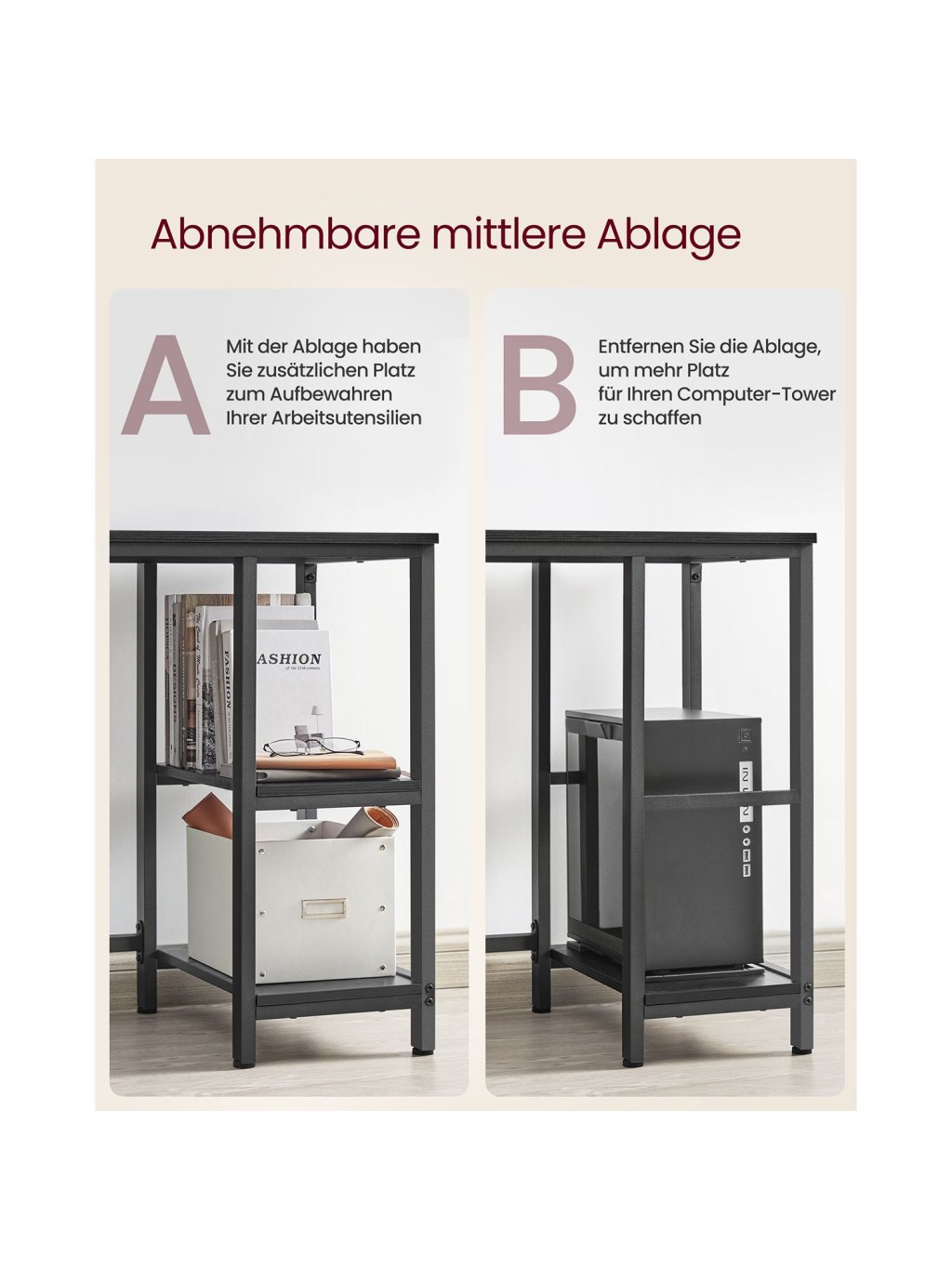 Horní z dvou otevřených polic je odnímatelná. Můžete ji odstranit a vytvořit prostor pro PC skříň nebo ji využít pro uložení knih, dokumentů a dalších často používaných věcí.