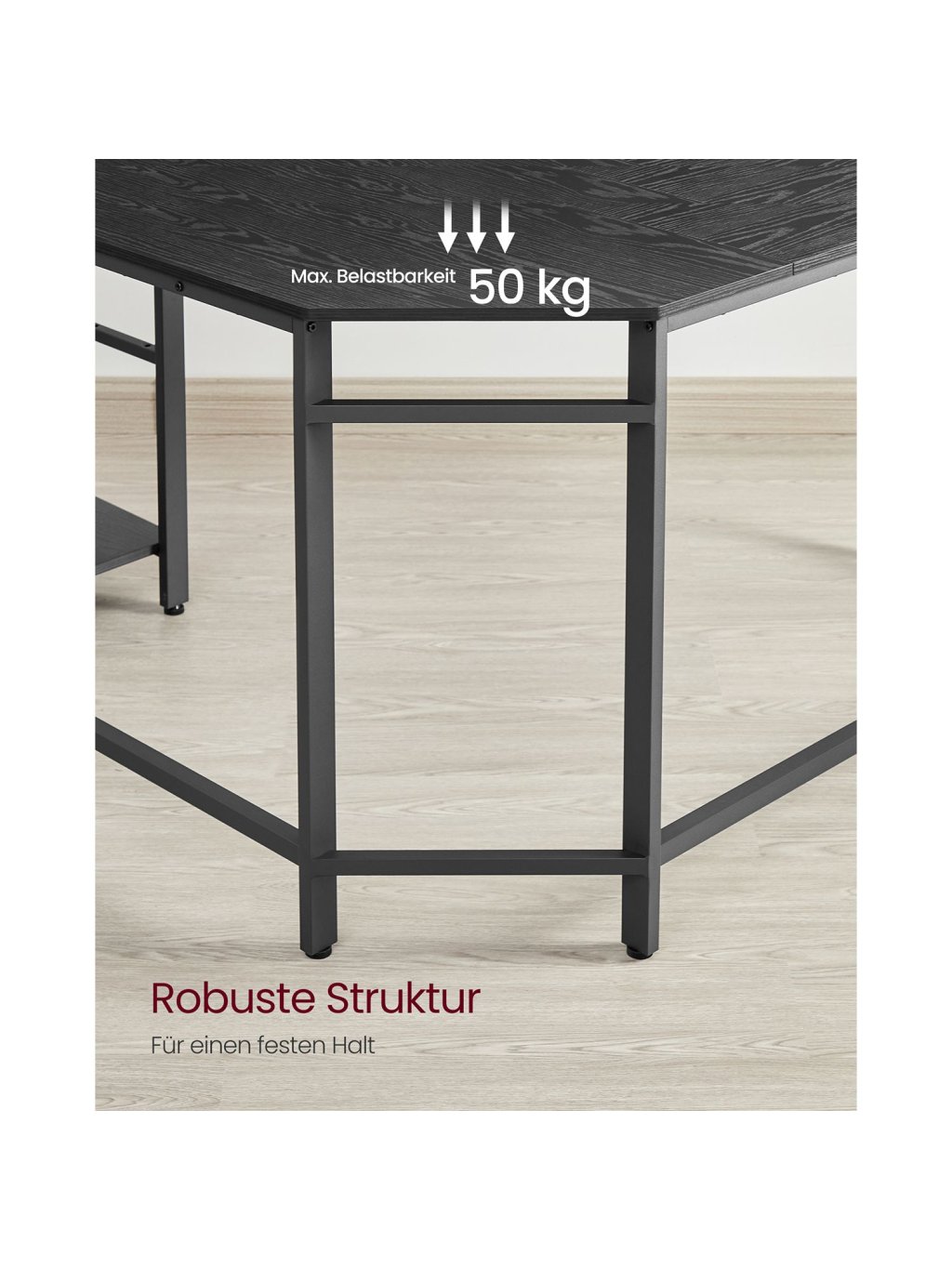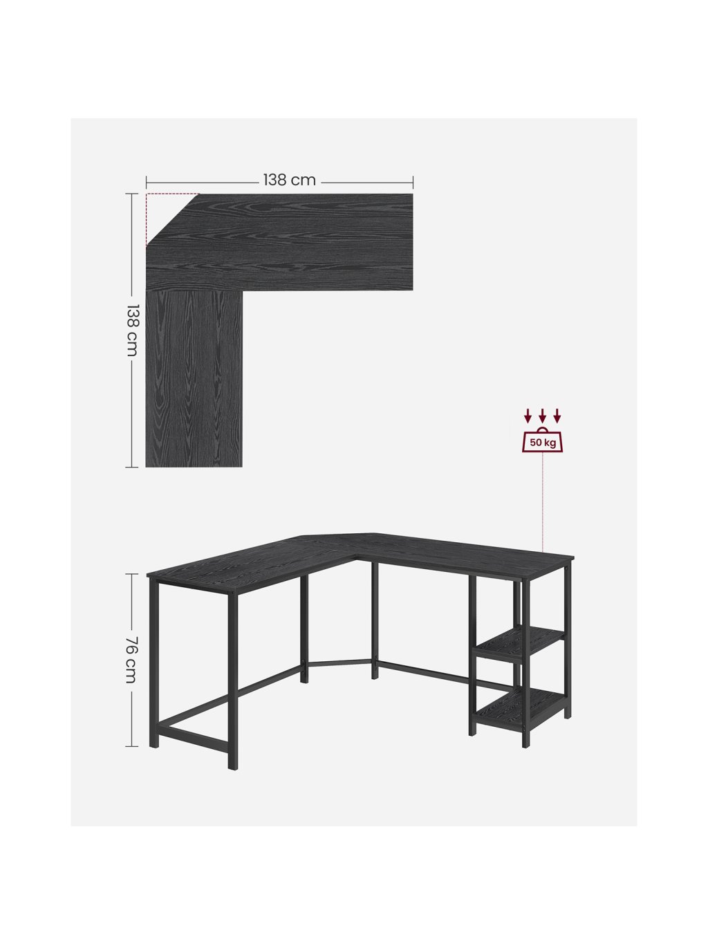 Rohový psací stůl do L, 138 × 138 × 76 cm, černý s dekorem dřeva