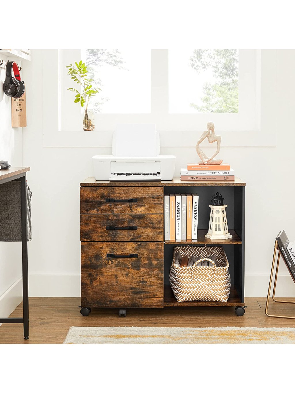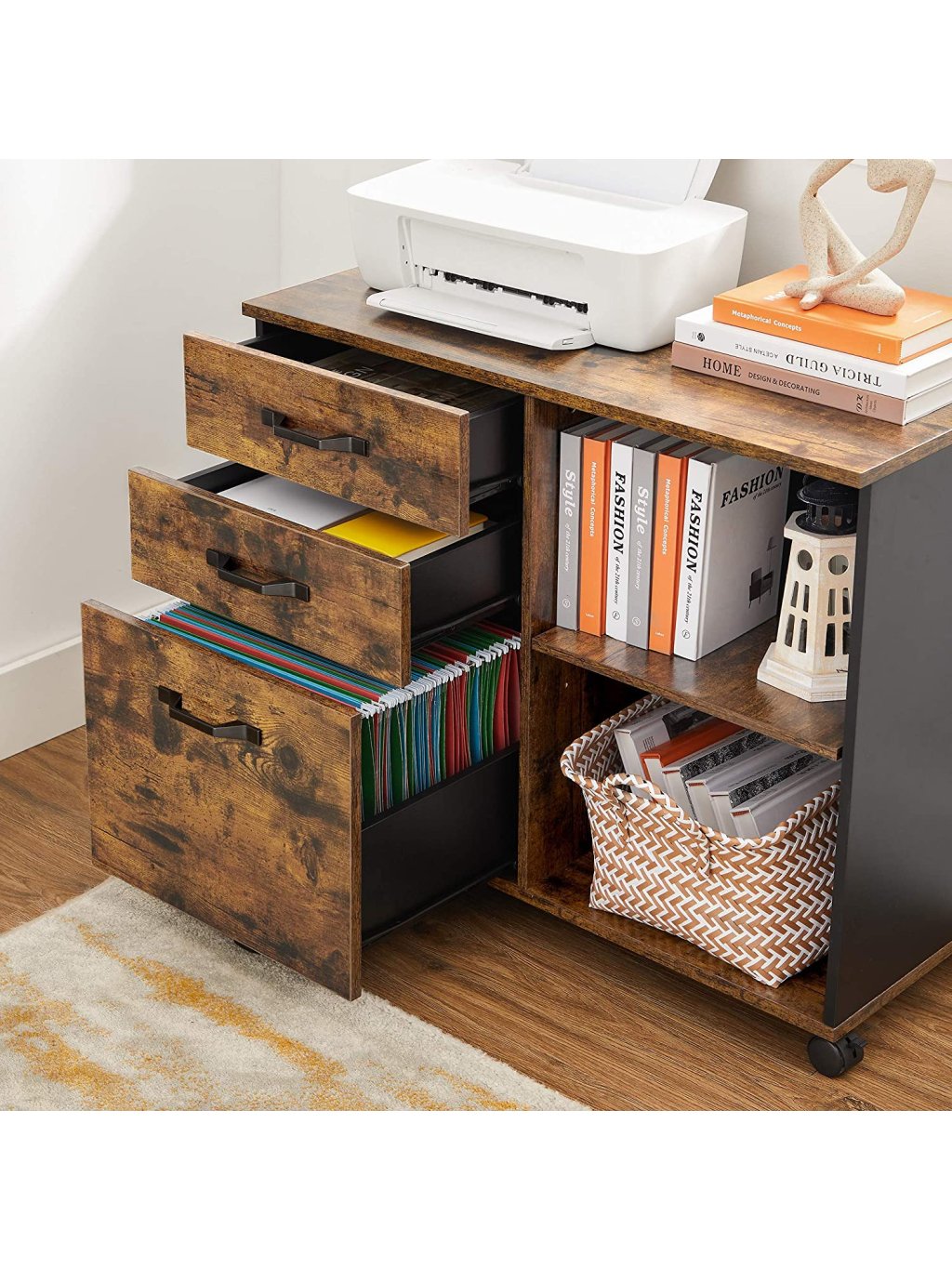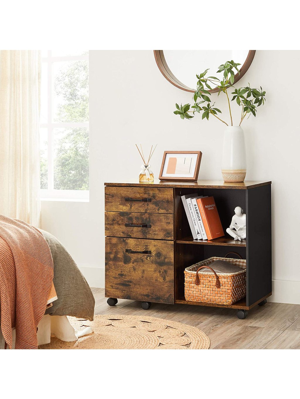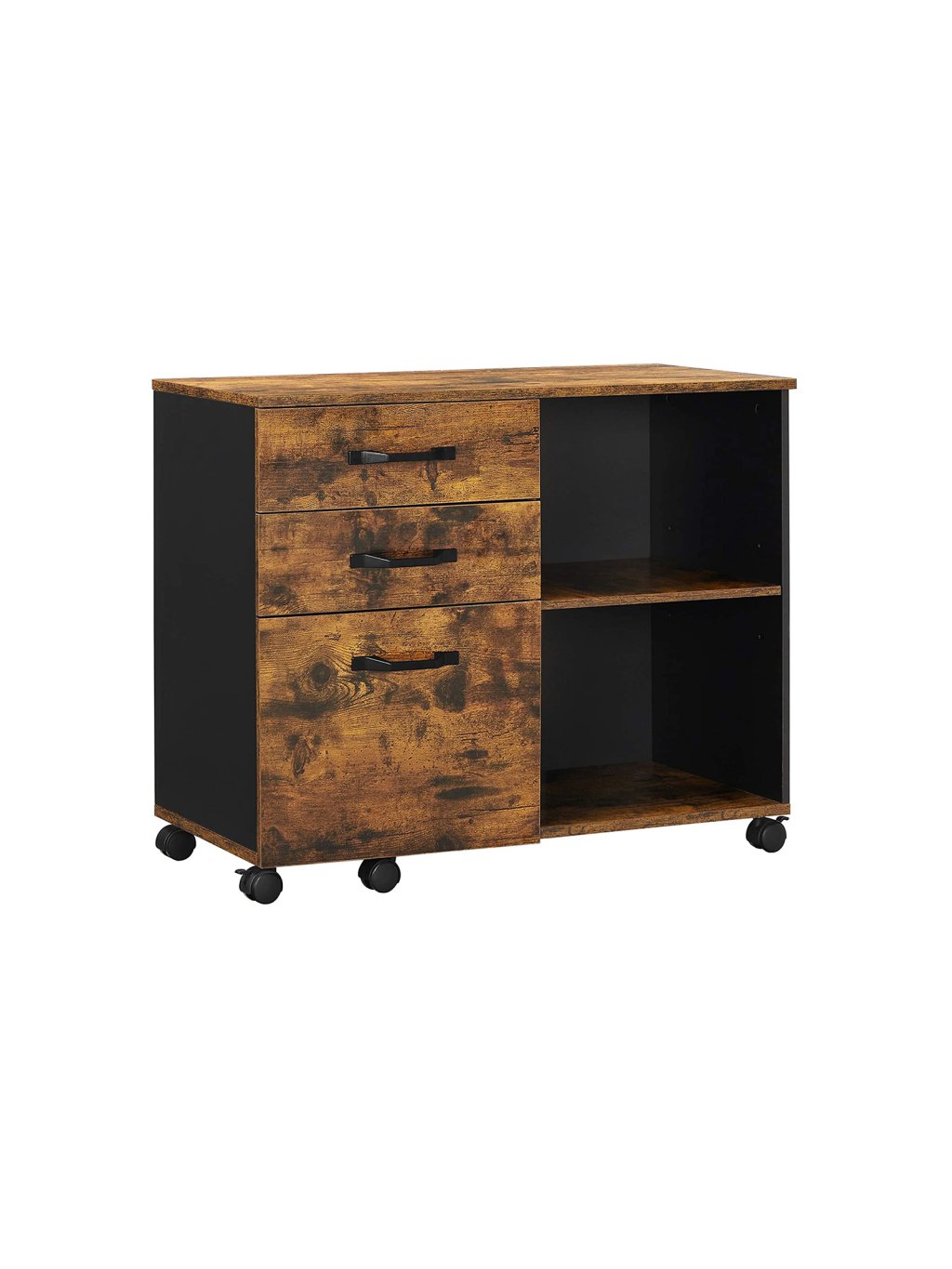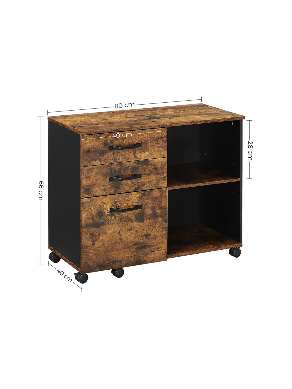 Kancelářský pojízdný kontejner se 3 zásuvkami a 2 přihrádkami – rustikální hnědá / černá, 80 × 40 × 66 cm