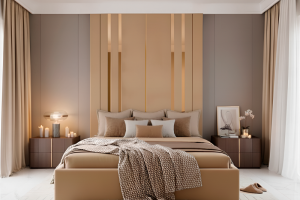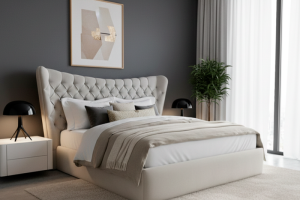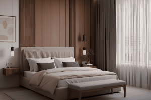 Asymetrické linie čela vytvářejí pocit hloubky, dynamiky a elegantní geometrie, která dodá ložnici unikátní charakter.