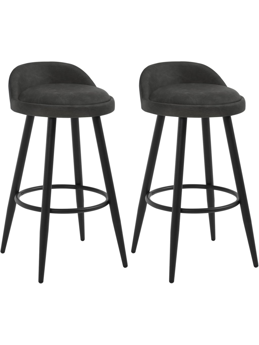Sada 2 barových židlí s opěradlem a opěrkou nohou, samet – antracitová