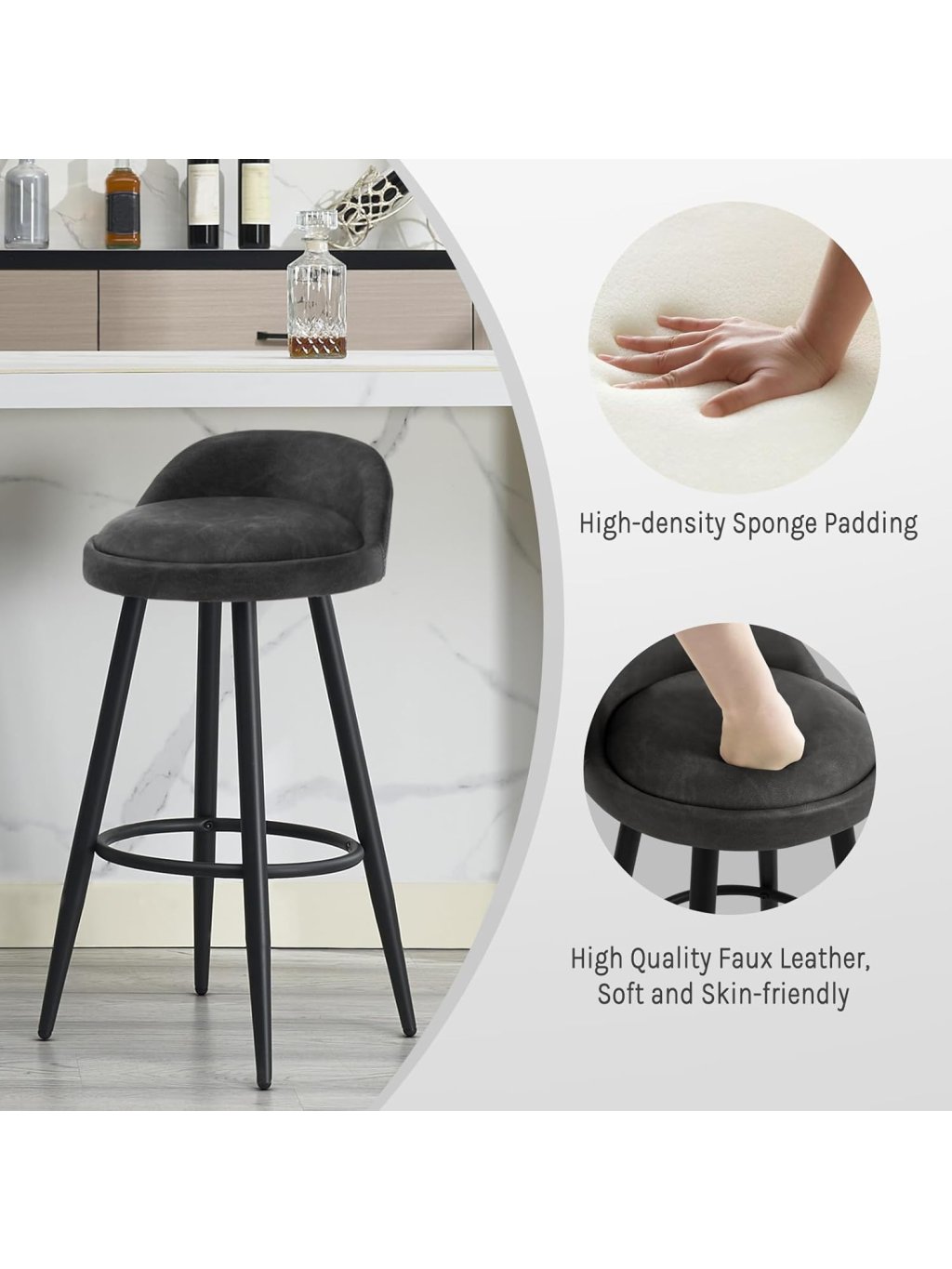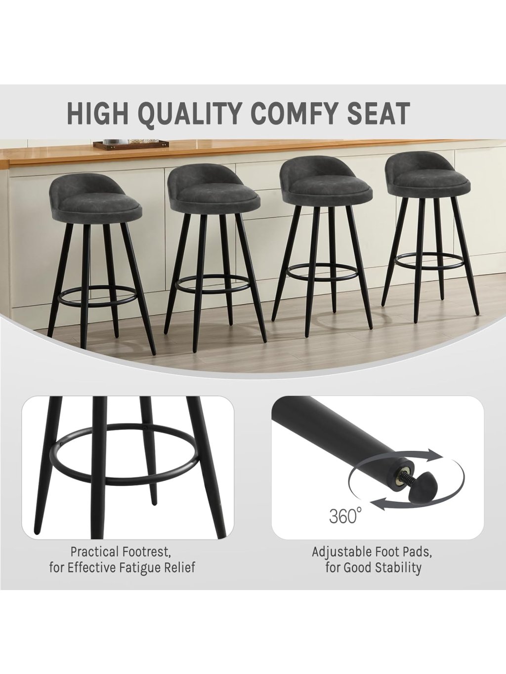 Individuální nastavení a flexibilita Díky integrovanému plynovému pístu lze výšku sedadla plynule nastavit tak, aby židle dokonale pasovaly k vašemu barovému pultu nebo kuchyňskému ostrůvku. Funkce otáčení o 360 stupňů umožňuje naprostou volnost pohybu. Pro větší stabilitu a relaxaci při sezení je židle vybavena kovovou opěrkou pro nohy.